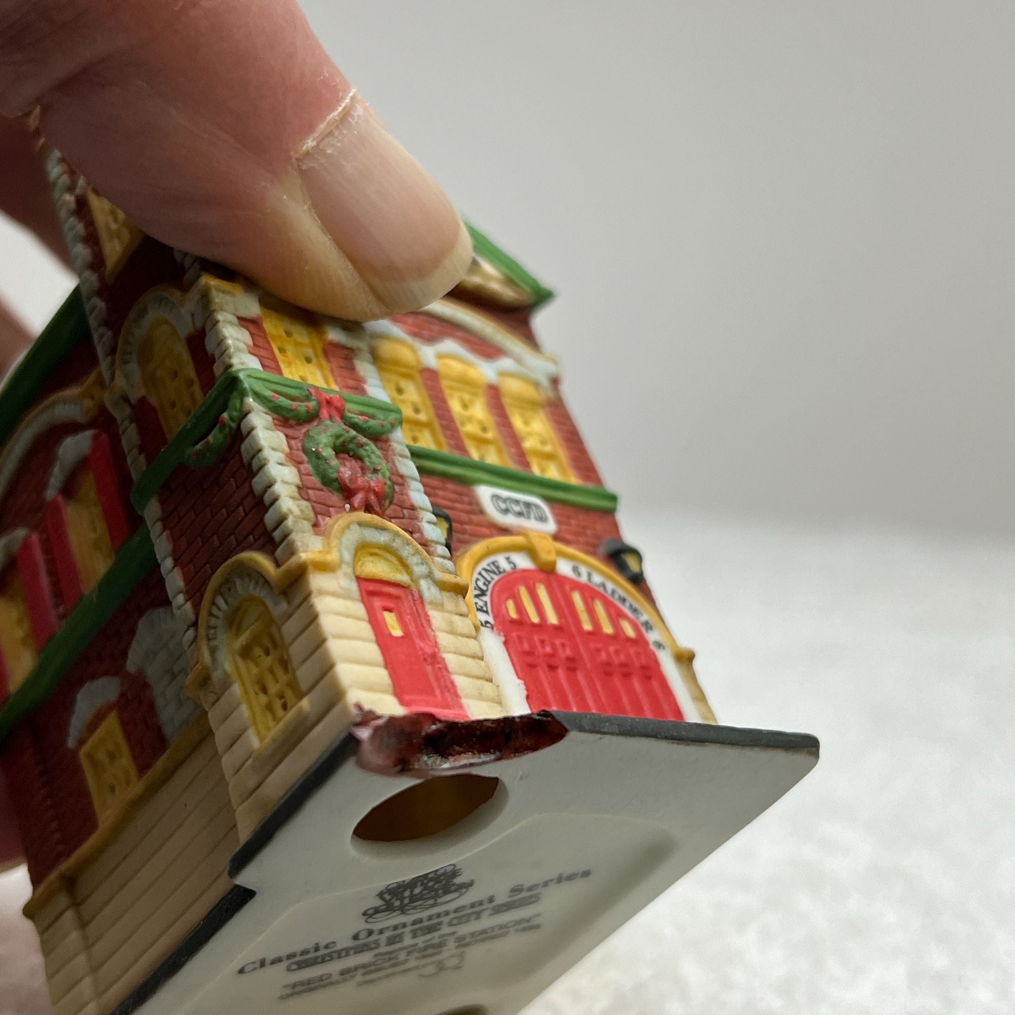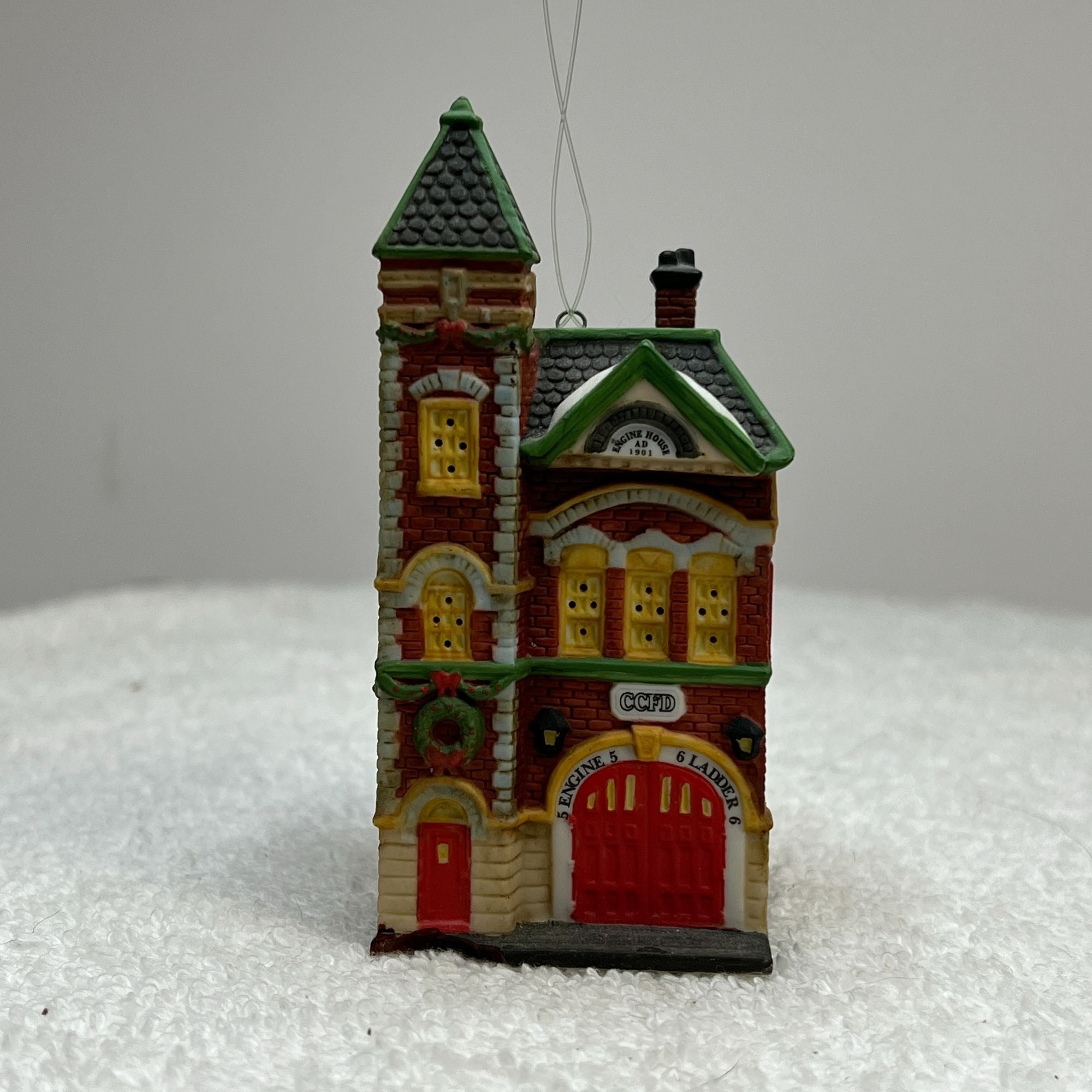 Dept 56 Christmas in the City Red Brick Fire Station Ornament ( No Box-Chipped)