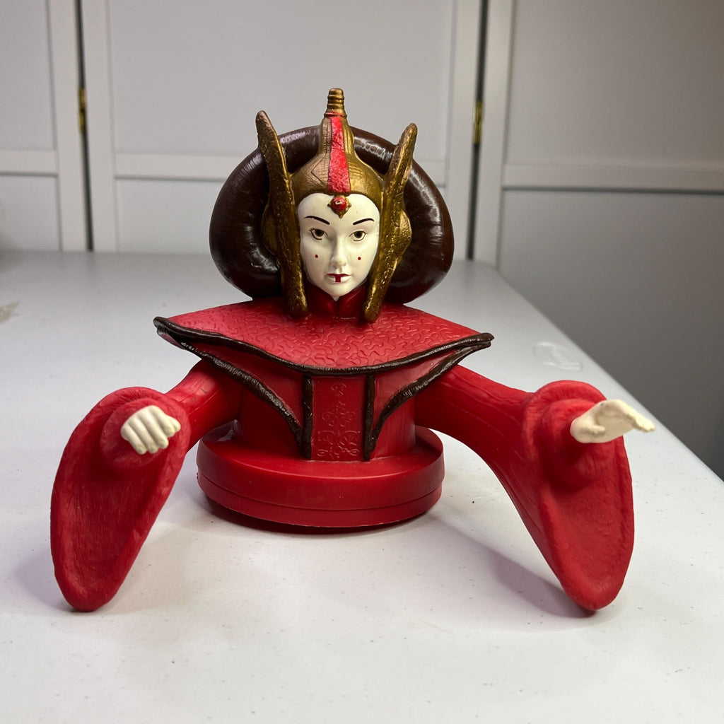 This collectible Queen Amidala cup topper, part of a 1999 Star Wars promotion by Taco Bell, KFC, and Pizza Hut, is an excellent addition to curated collections. This is the lid only - no cup or straw is included.