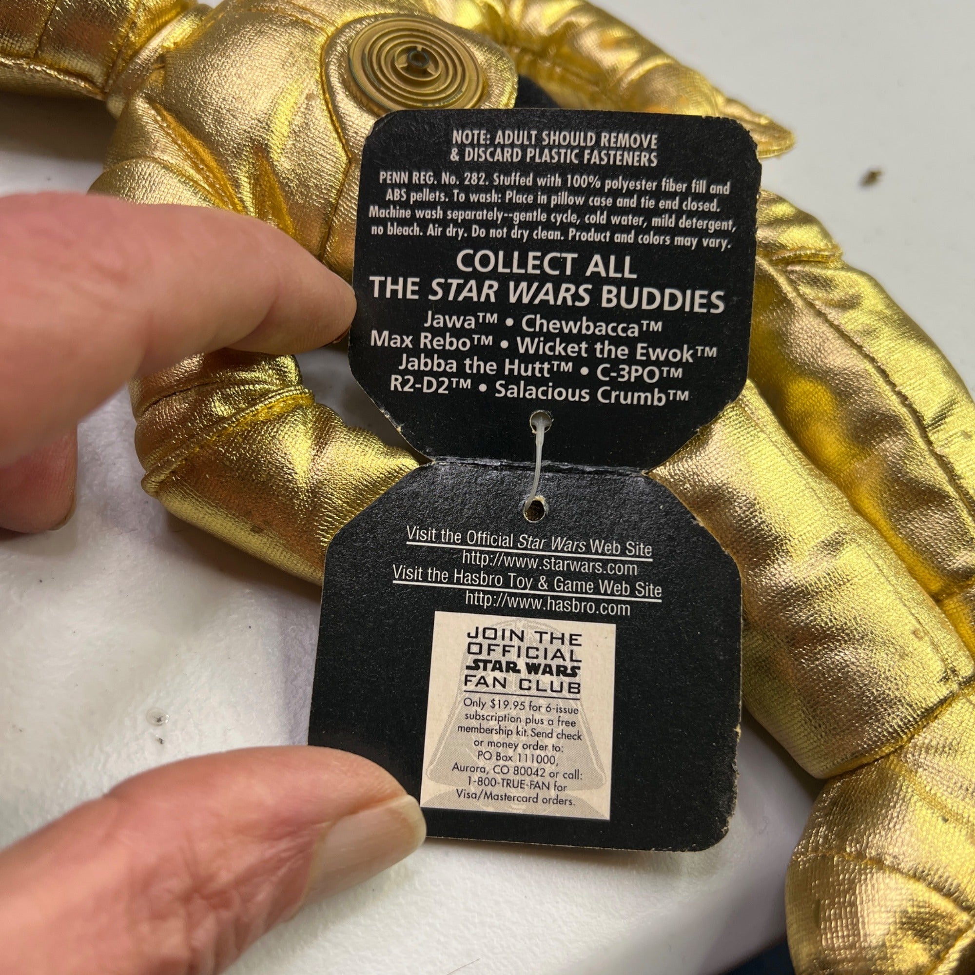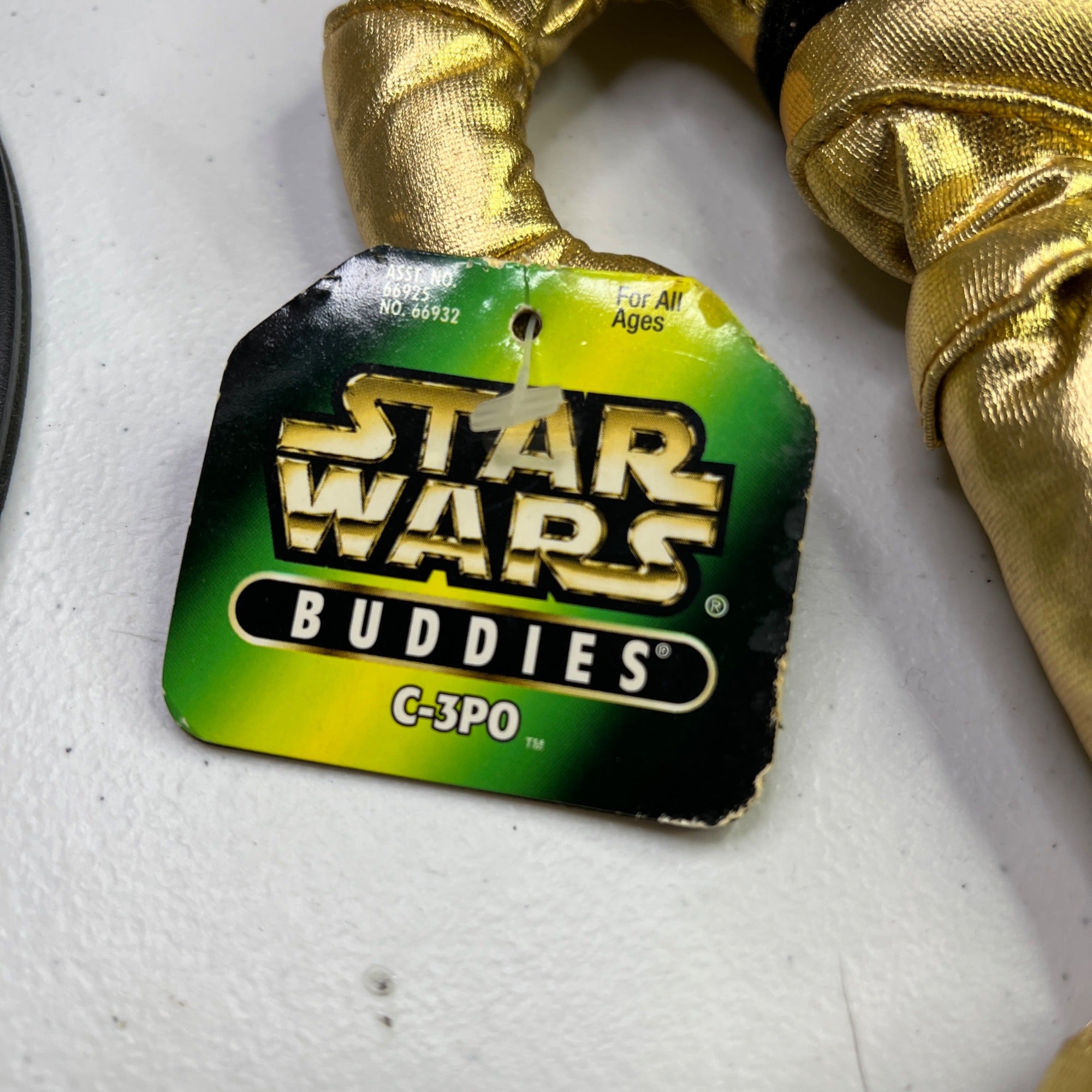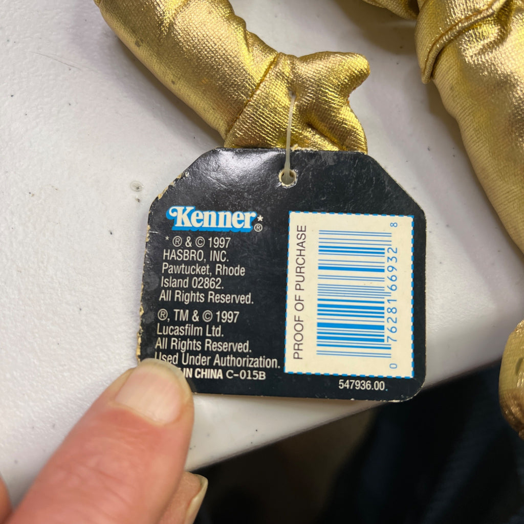 This 1997 Kenner Star Wars Buddies C-3PO plush is a collector's item. Made with shiny gold fabric, it's an iconic piece for enthusiasts.