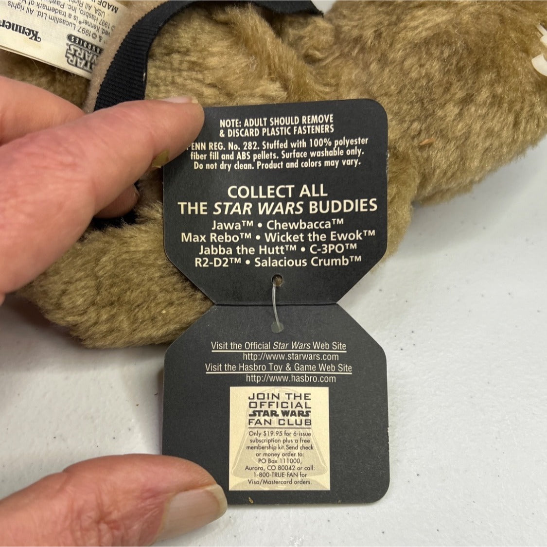 This collectible plush Chewbacca from 1997 is part of the Star Wars Buddies collection by Kenner. A must-have for Star Wars fans and collectors.
