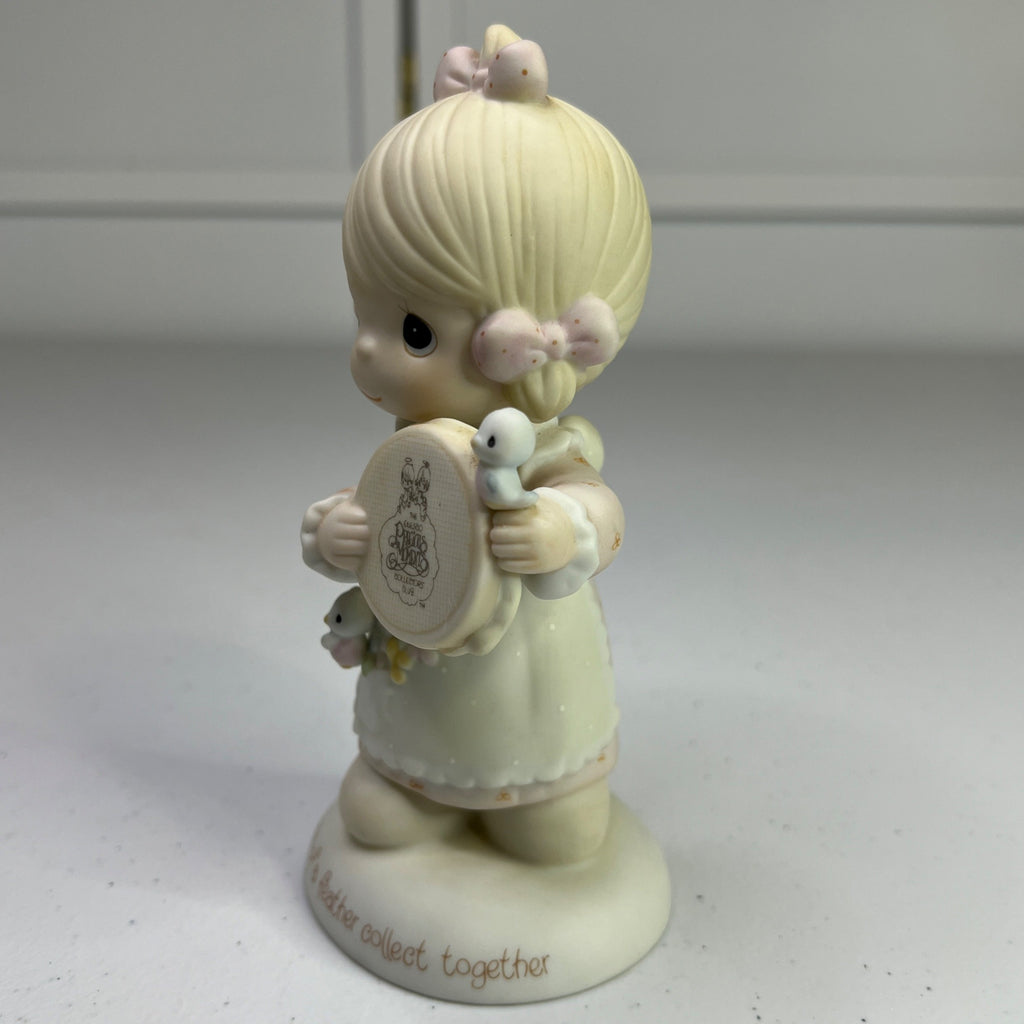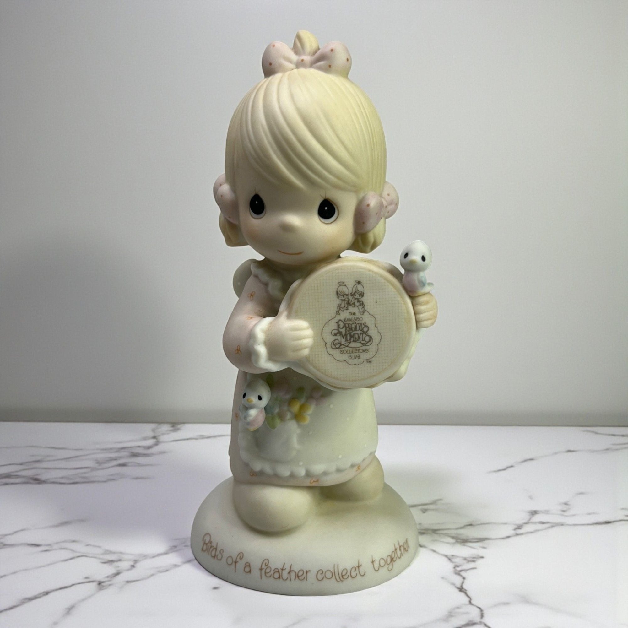 The "Birds Of A Feather Collect Together" figurine, a 1986 Precious Moments piece, is a cherished collectible. Crafted by Enesco Imports, it highlights the brand's signature charming design, featuring delicate detailing and soft pastel hues. This piece is not only a symbol of membership but also an enduring emblem of friendship.