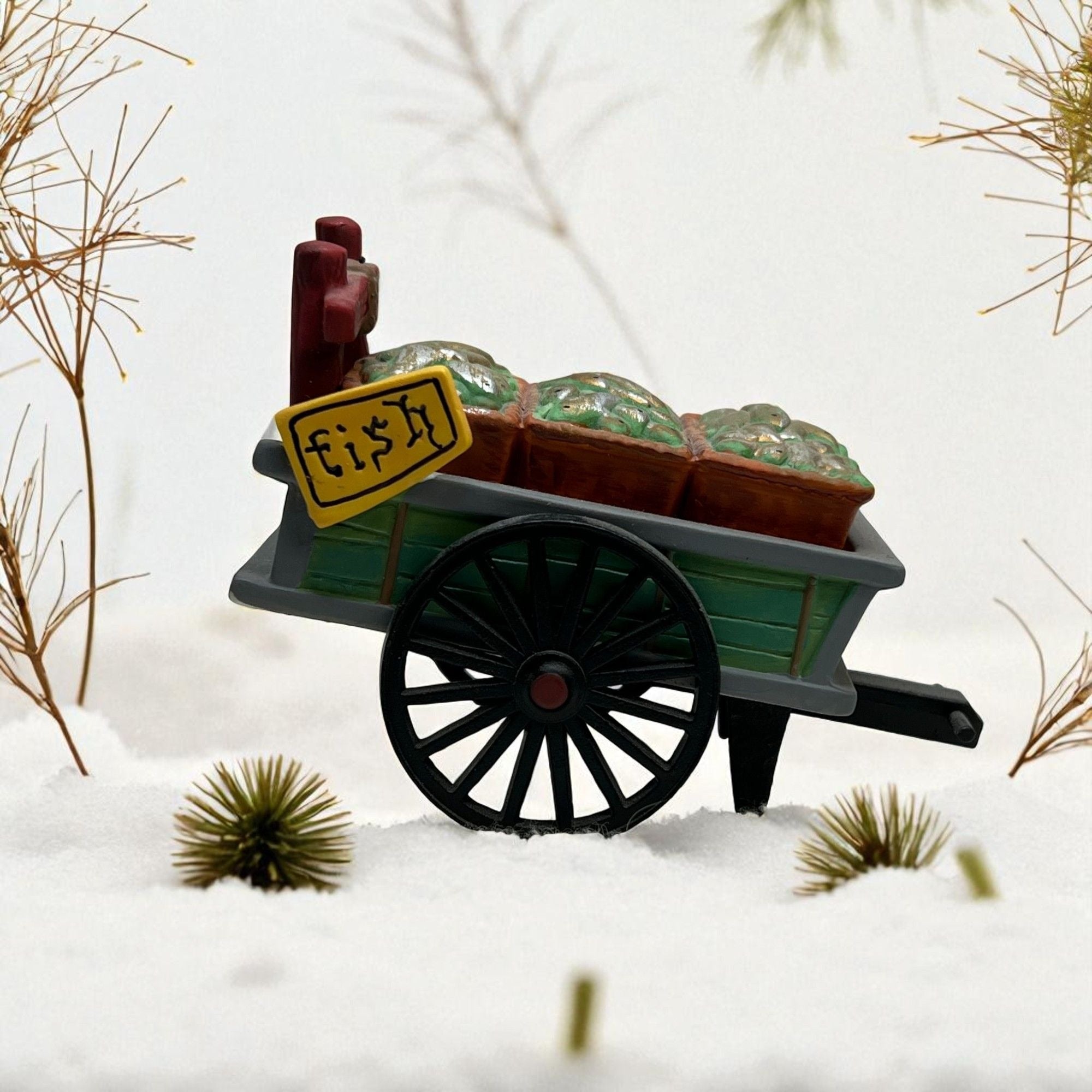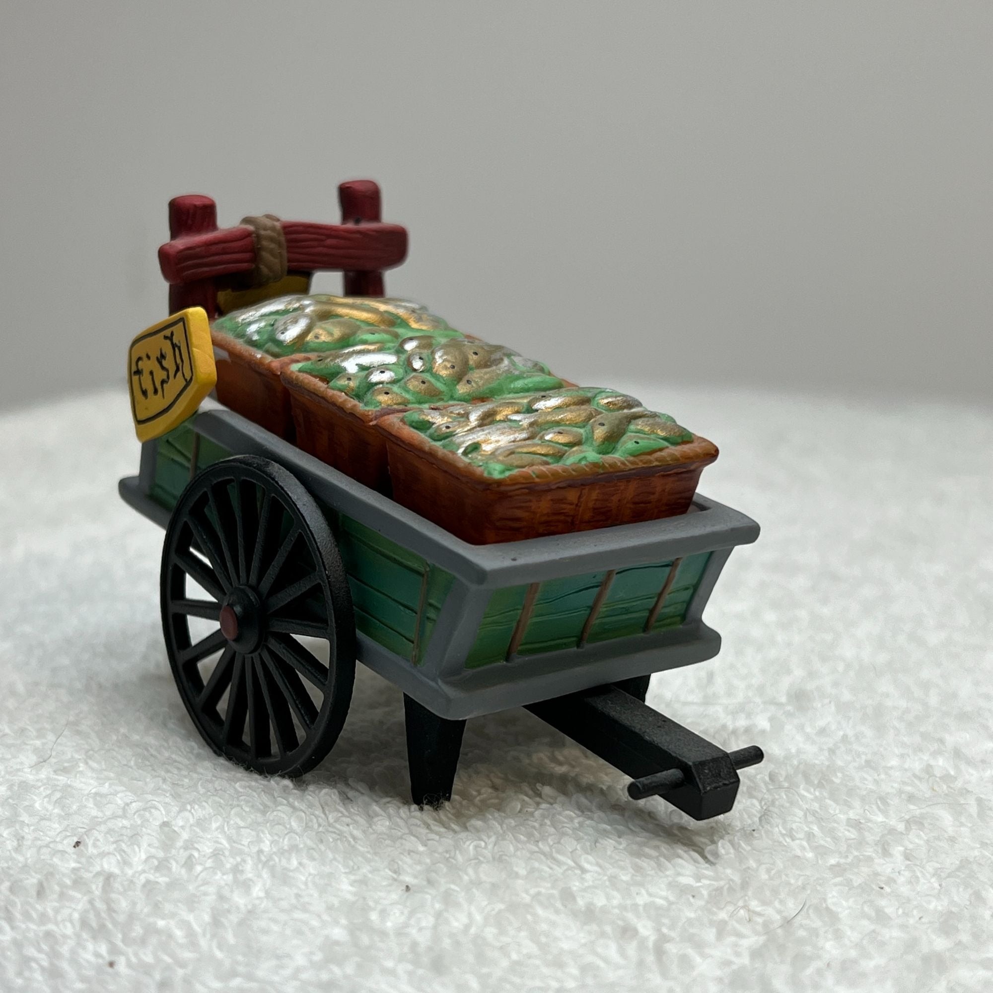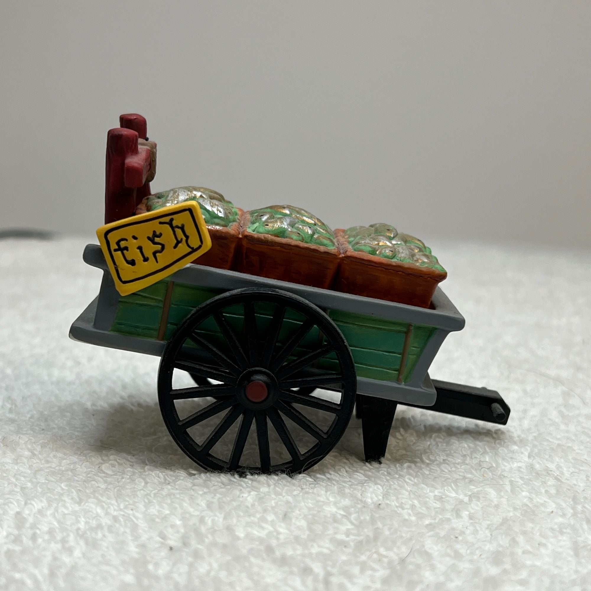 Department 56 Chelsea Market Fish Monger, Dickens Village loose figurine from 1993. Very beautiful hand-painted porcelain figurine. Cart only - no hanging lantern is included. Loose figurine only - This is not the complete set and includes only 1 figurine from the set. No box is included, only the figurine.