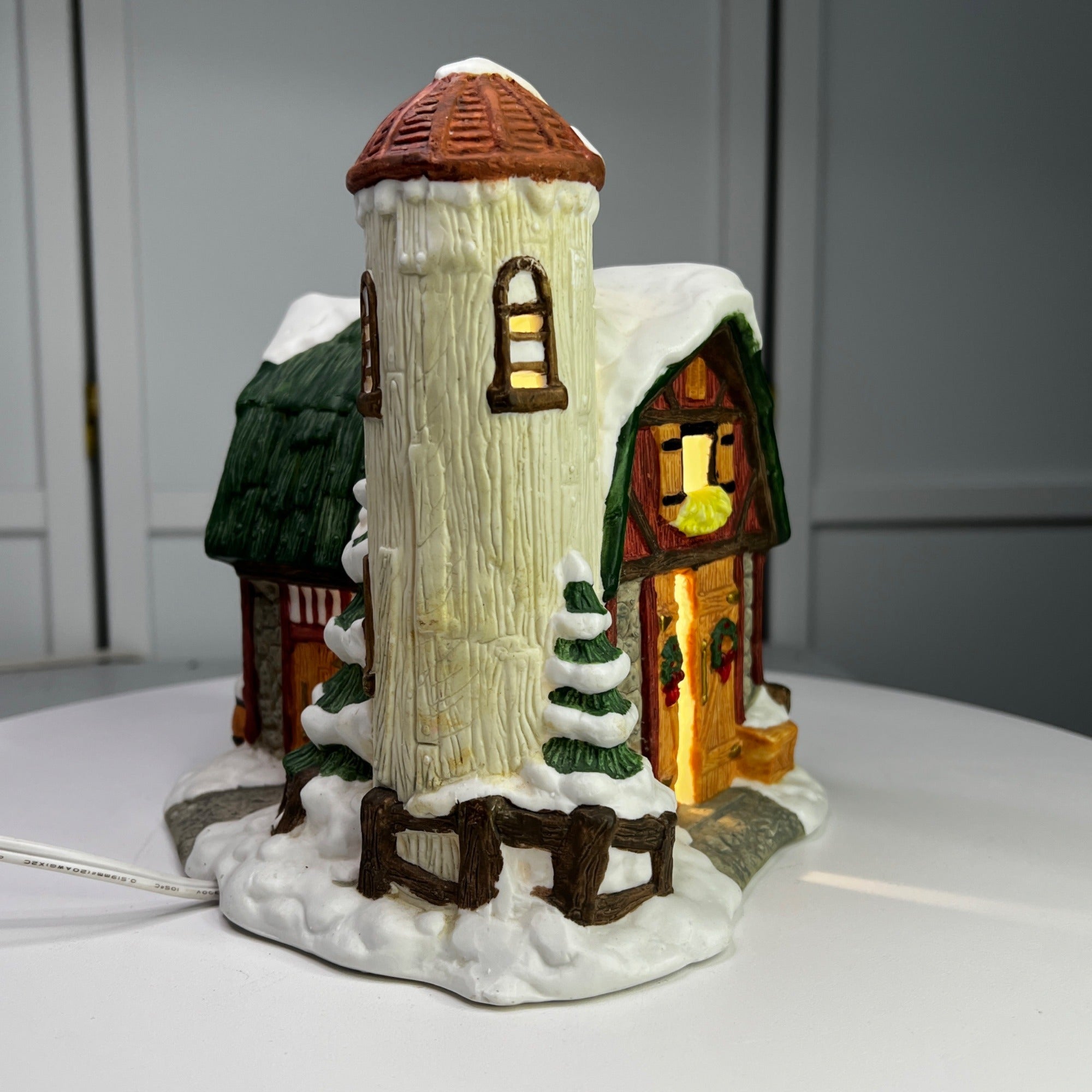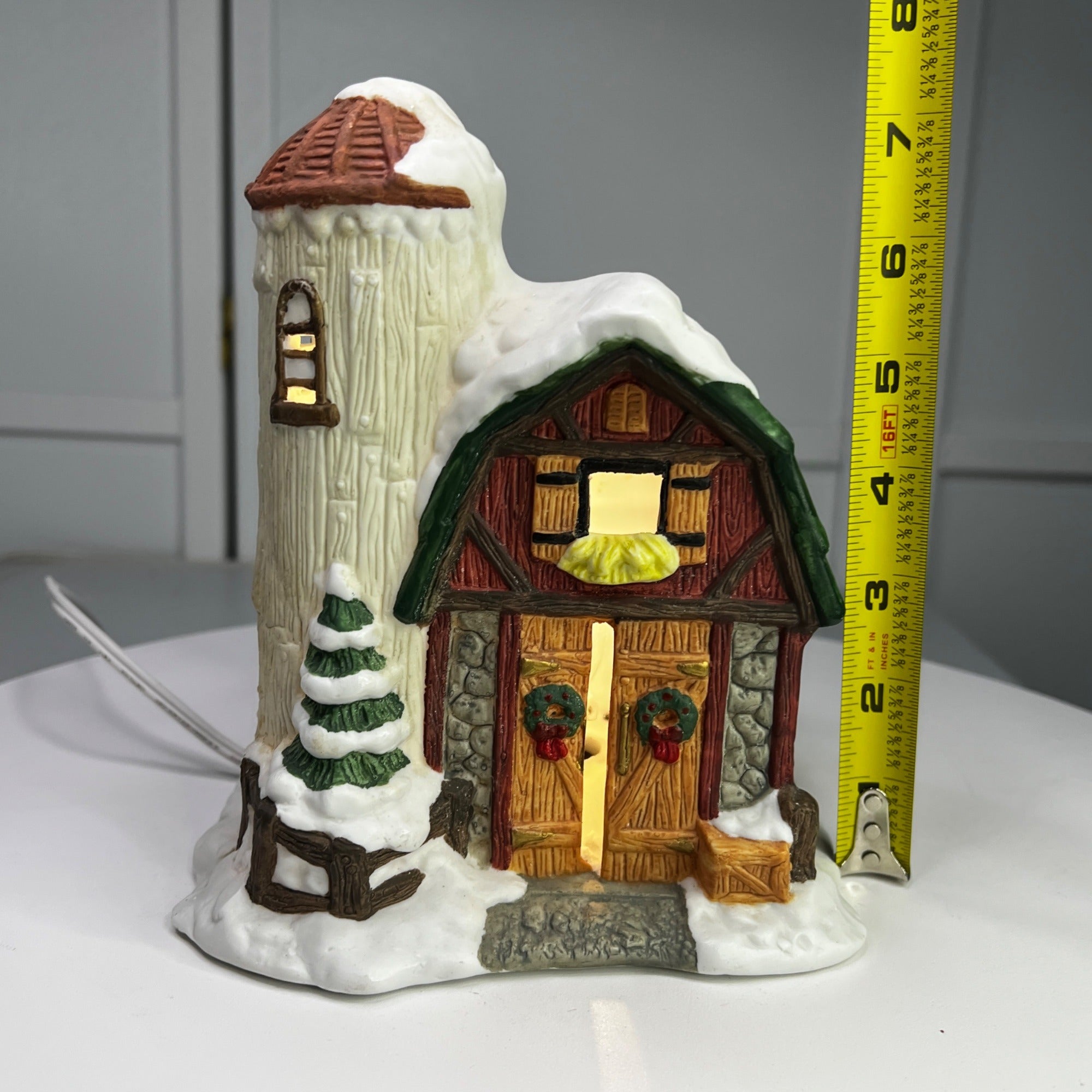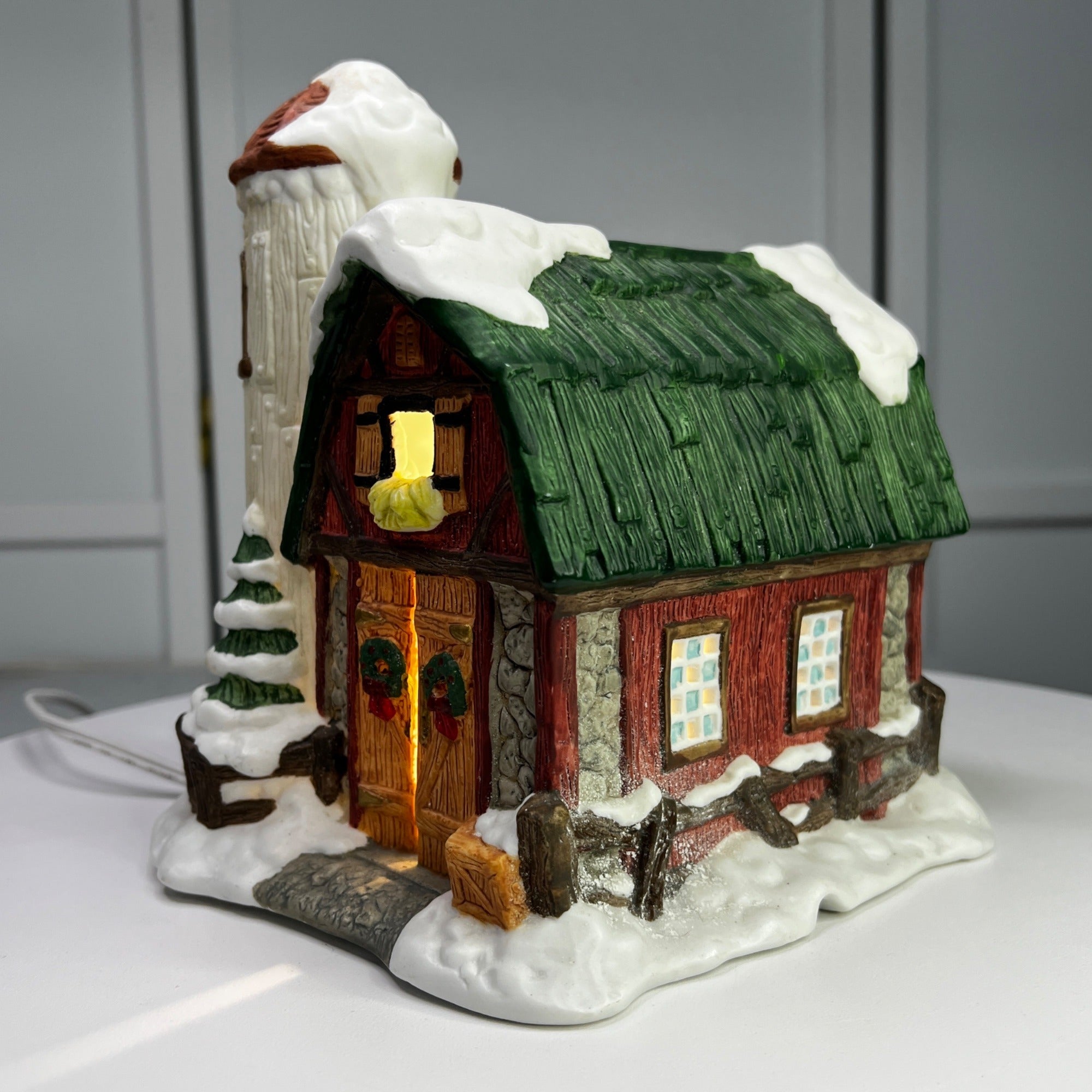 This beautiful Christmas collectible makes a classy addition to any village collection. The Barn with Silo is in good condition for being over 30 years old and has beautiful artwork, color and design, each piece is properly marked on the bottom of the piece. Comes with light cord.
