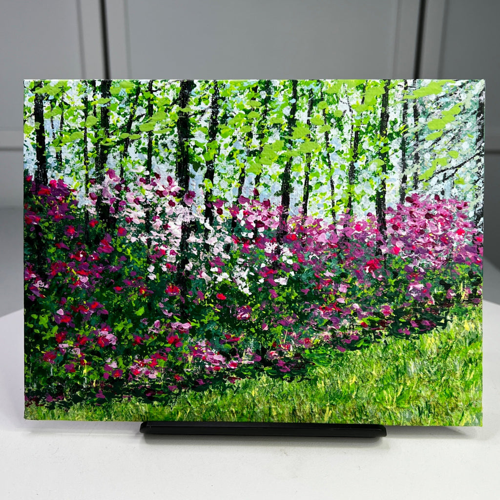 Flower Falls Vibrant Forest & Floral Design Acrylic Painting Unframed 6" x 8"