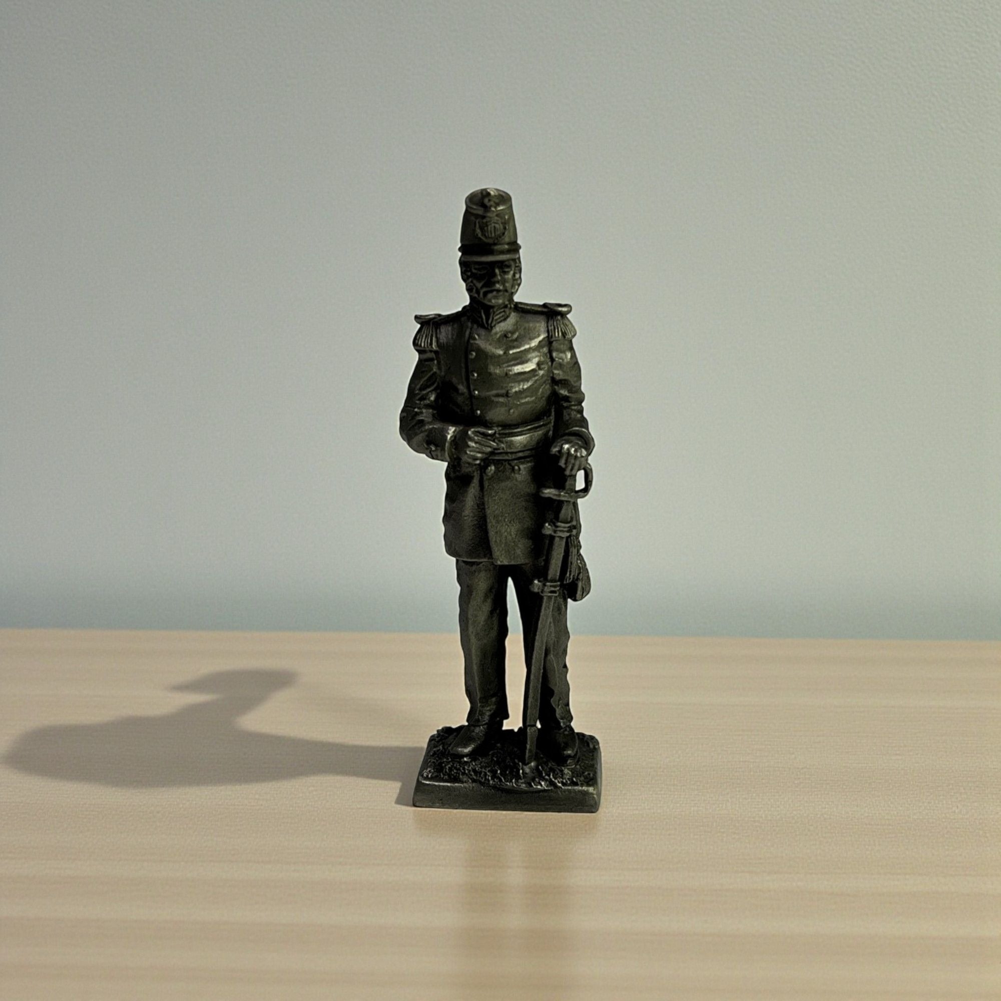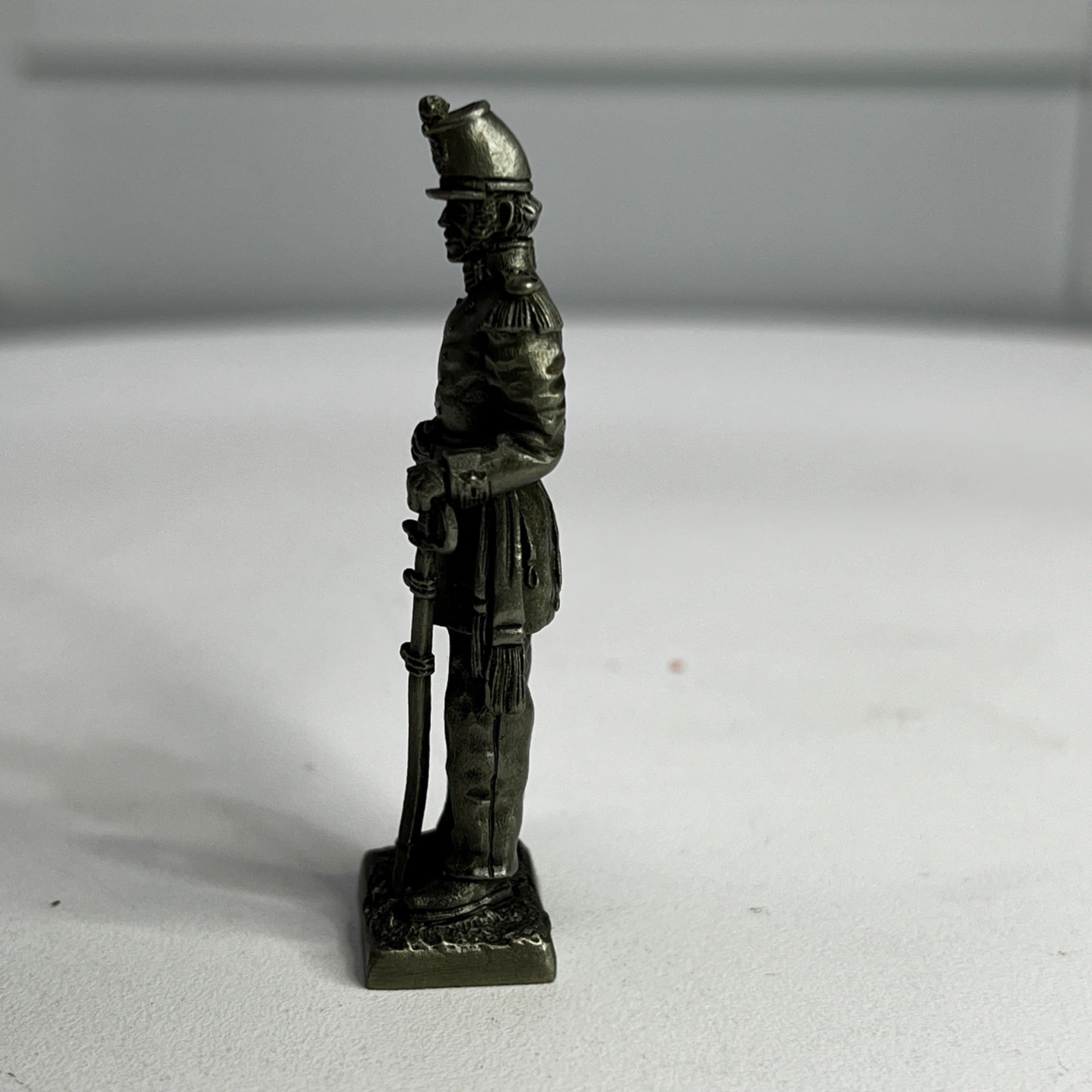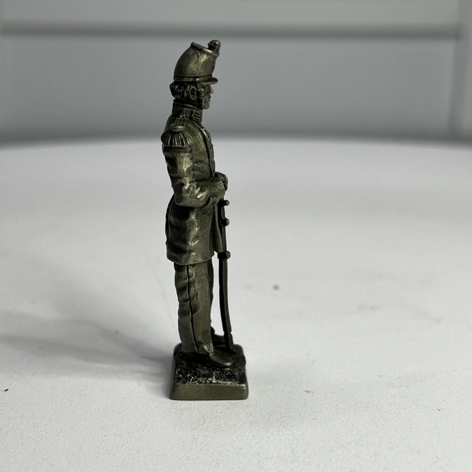 This Franklin Mint pewter figurine, crafted in 1981 and part of the American Military Sculpture collection features a Marine Colonel from 1863. Its vintage design showcases the cultural significance of the United States military during that time. A collector's item, An exquisite piece for collectors of historical memorabilia or admirers of finely crafted metalwork.