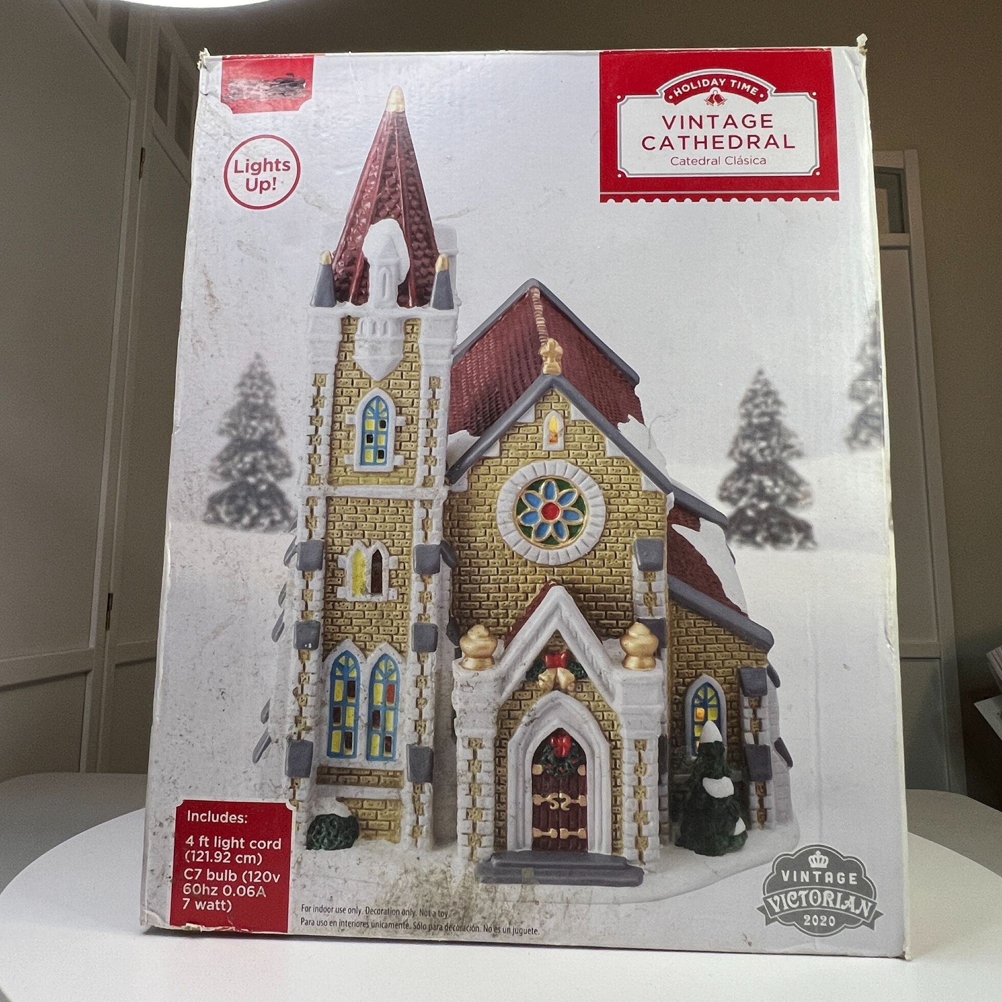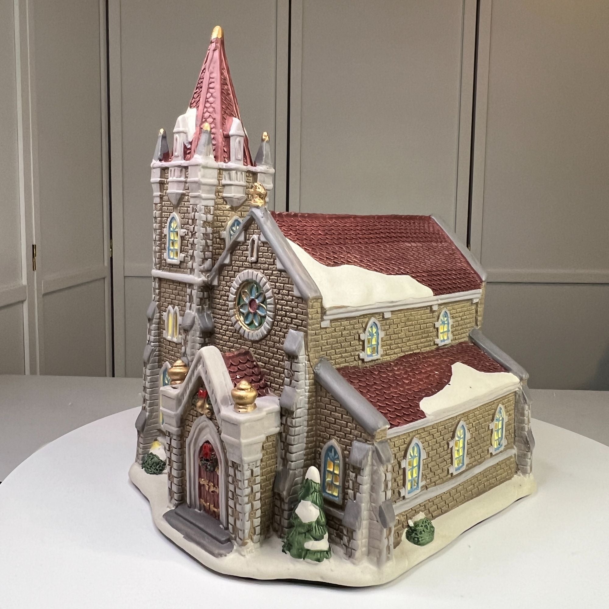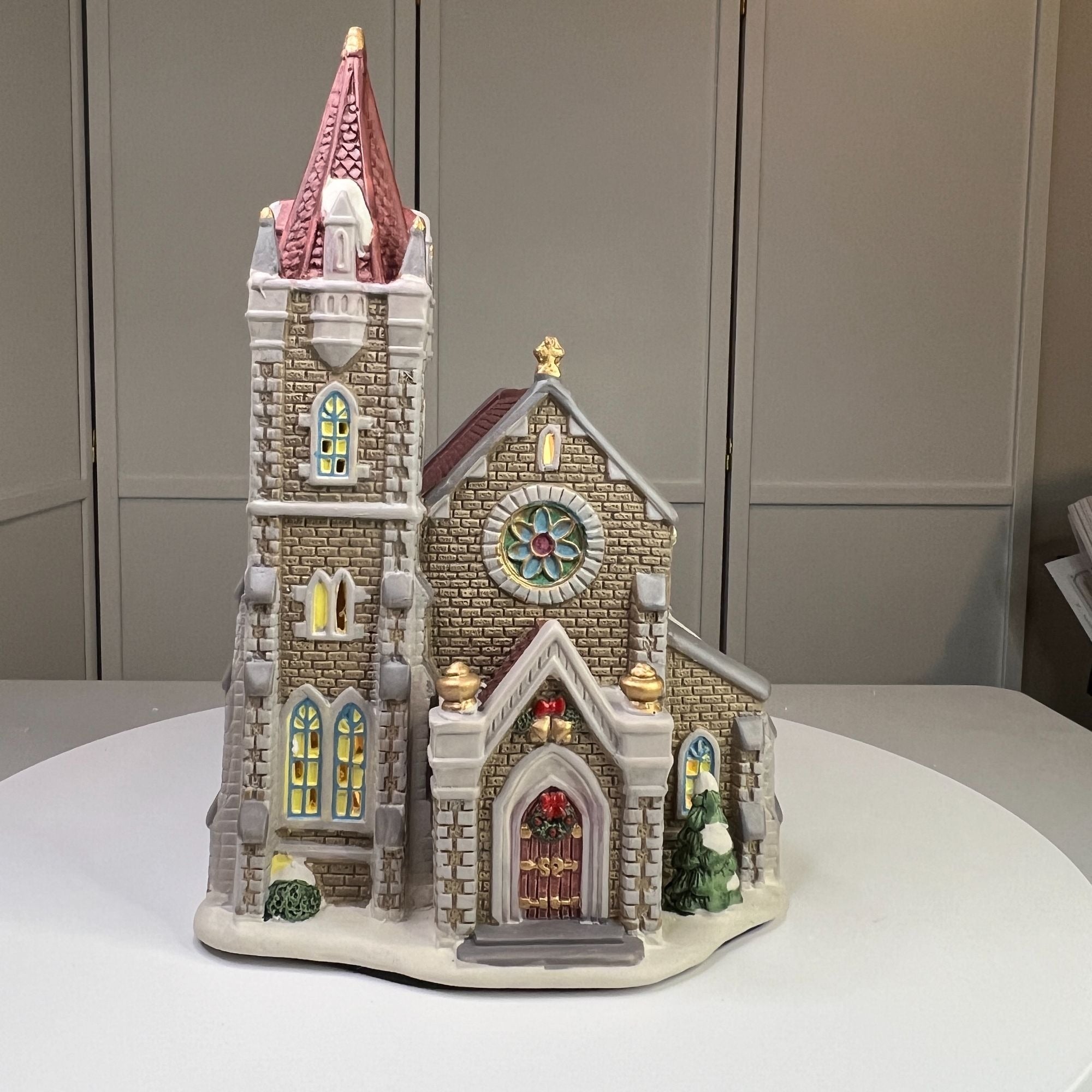 This beautiful Christmas collectible makes a classy addition to any village collection. The Cathedral is in good condition and has beautiful artwork, color and design. Includes original box (box has wear) and light cord.