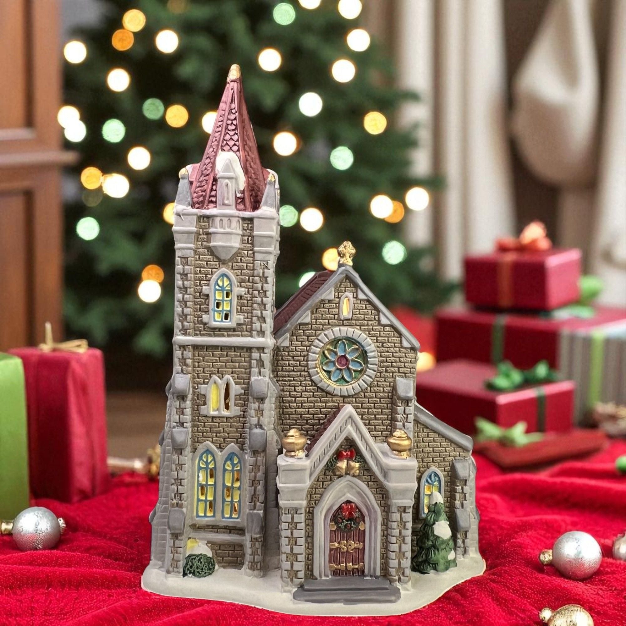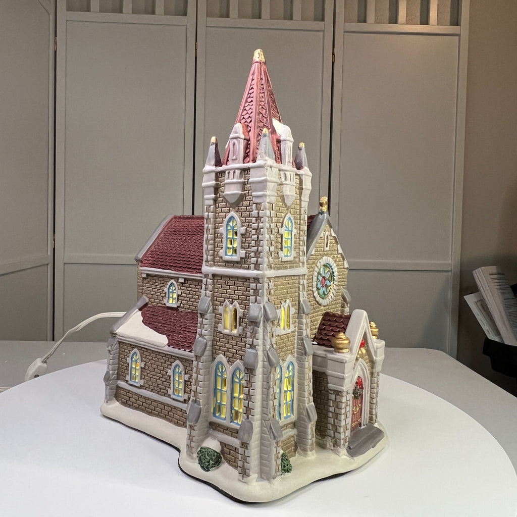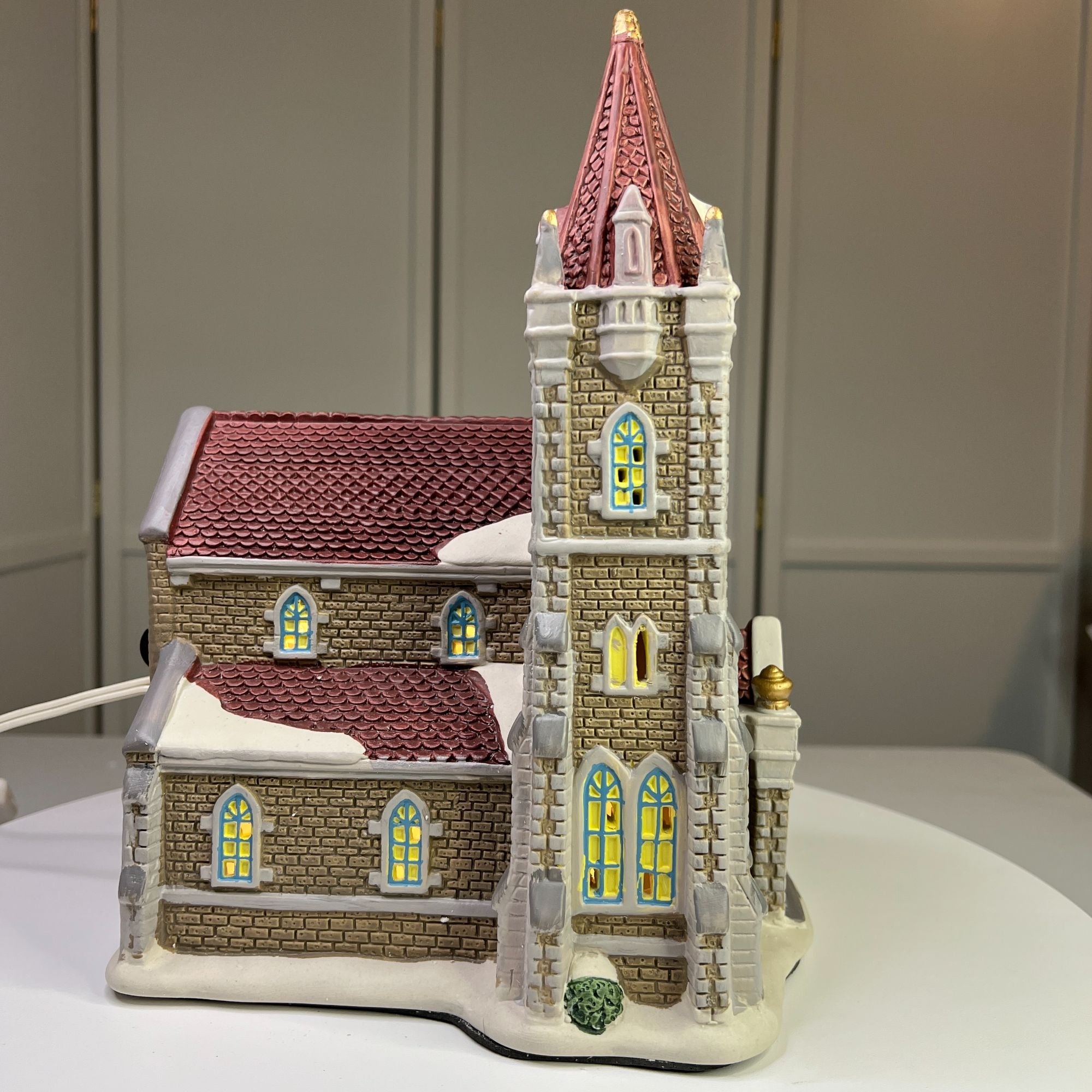 This beautiful Christmas collectible makes a classy addition to any village collection. The Cathedral is in good condition and has beautiful artwork, color and design. Includes original box (box has wear) and light cord.