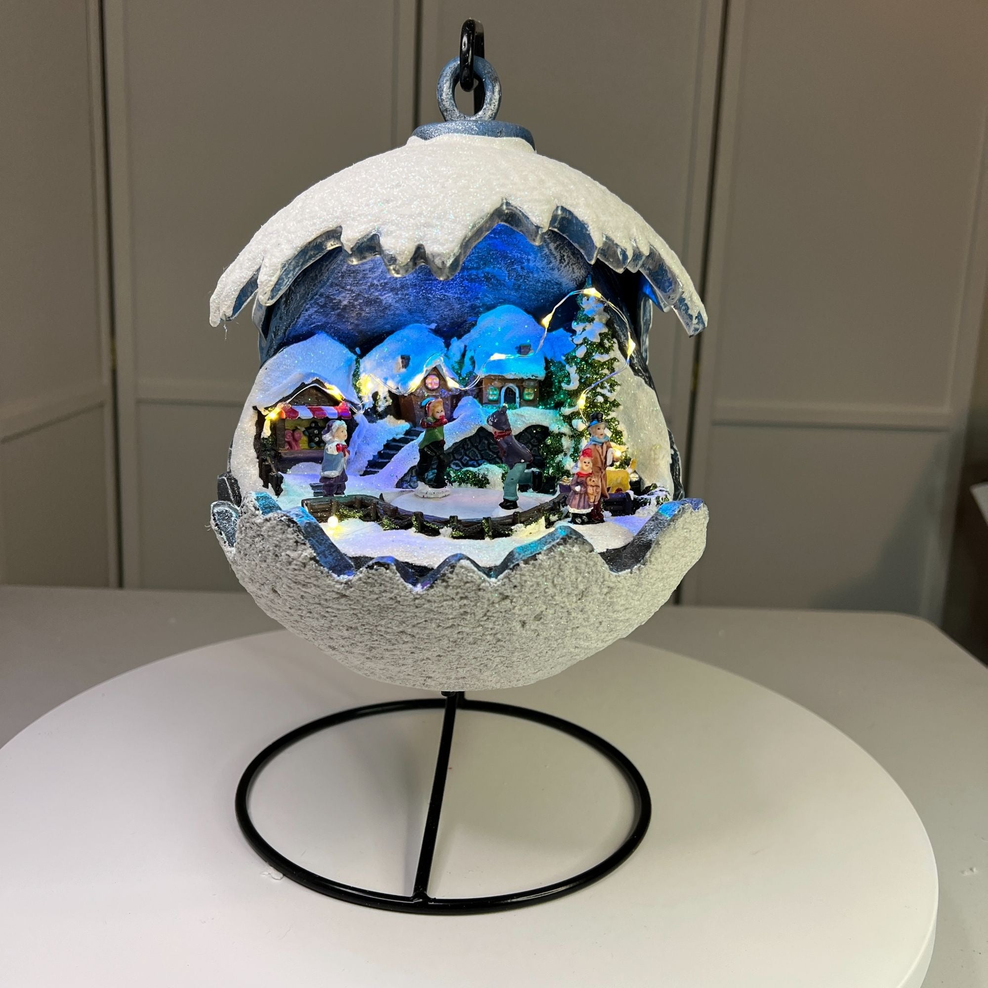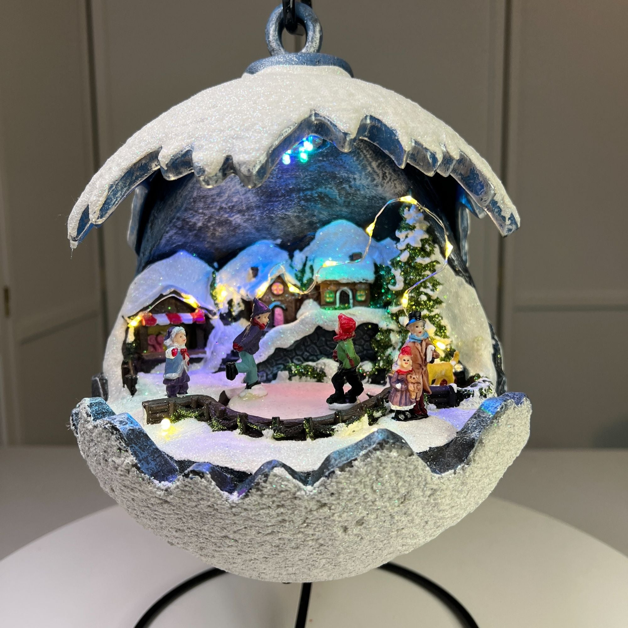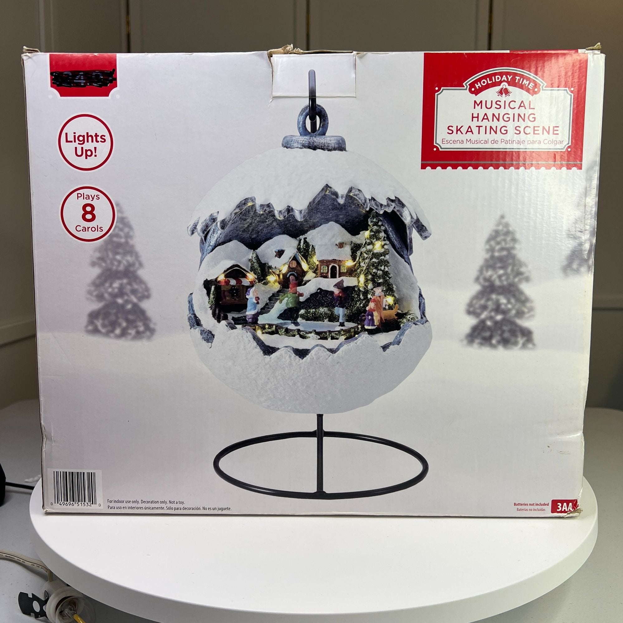 Capture the essence of yesteryear's holiday charm with this enchanting skating scene decoration. Featuring a detailed winter skating scene, it plays eight carols, evoking the nostalgia of vintage holiday celebrations. A soft glow illuminates the intricate details, reminiscent of antique holiday decor, creating a warm, inviting atmosphere in any room. Size 8 x 8 x 9"