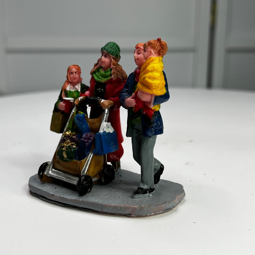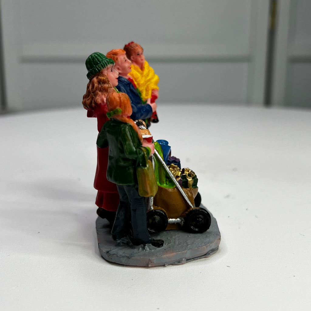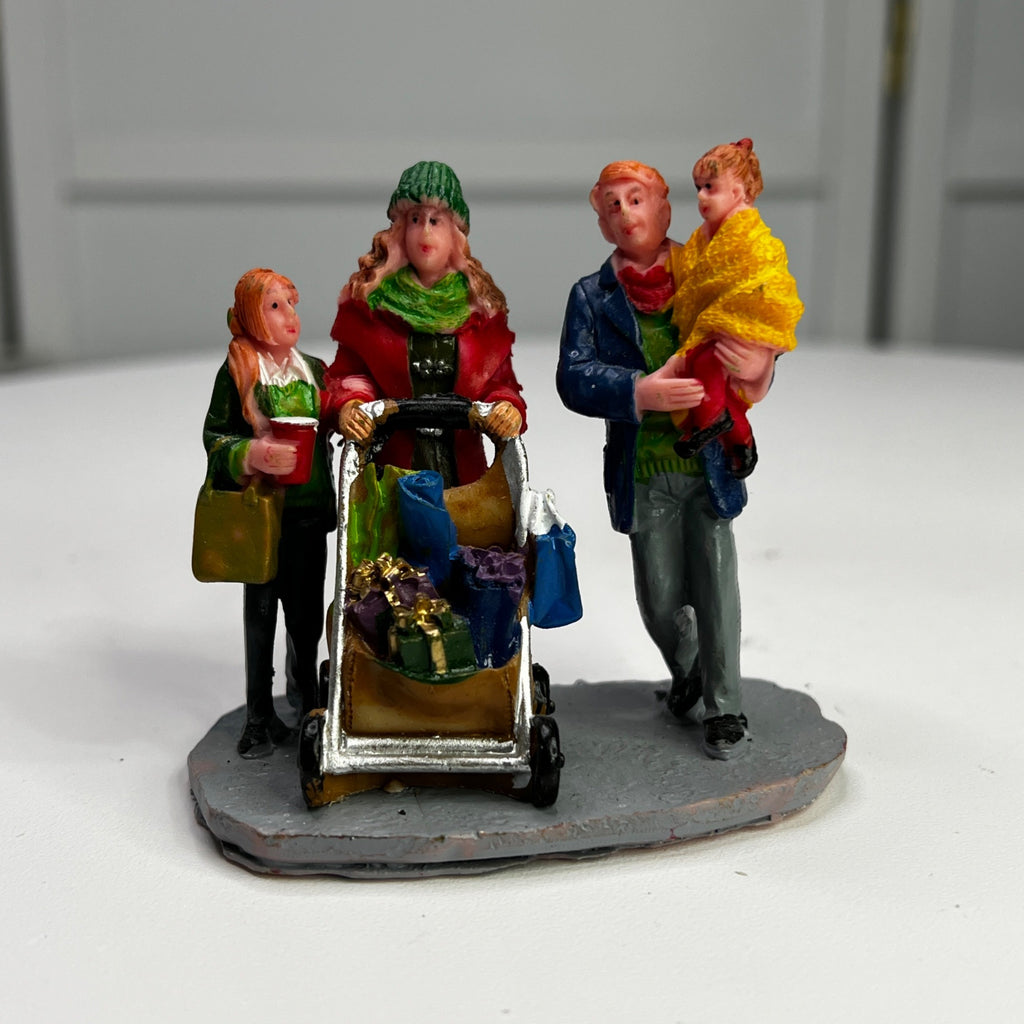 Lemax Christmas Shopping With Mom And Dad Village Accessory from 2013. Very beautiful hand-painted resin figurine. Family out Christmas shopping with mom pushing baby in stroller. Size: 2.68 x 2.91 x 1.77 inches