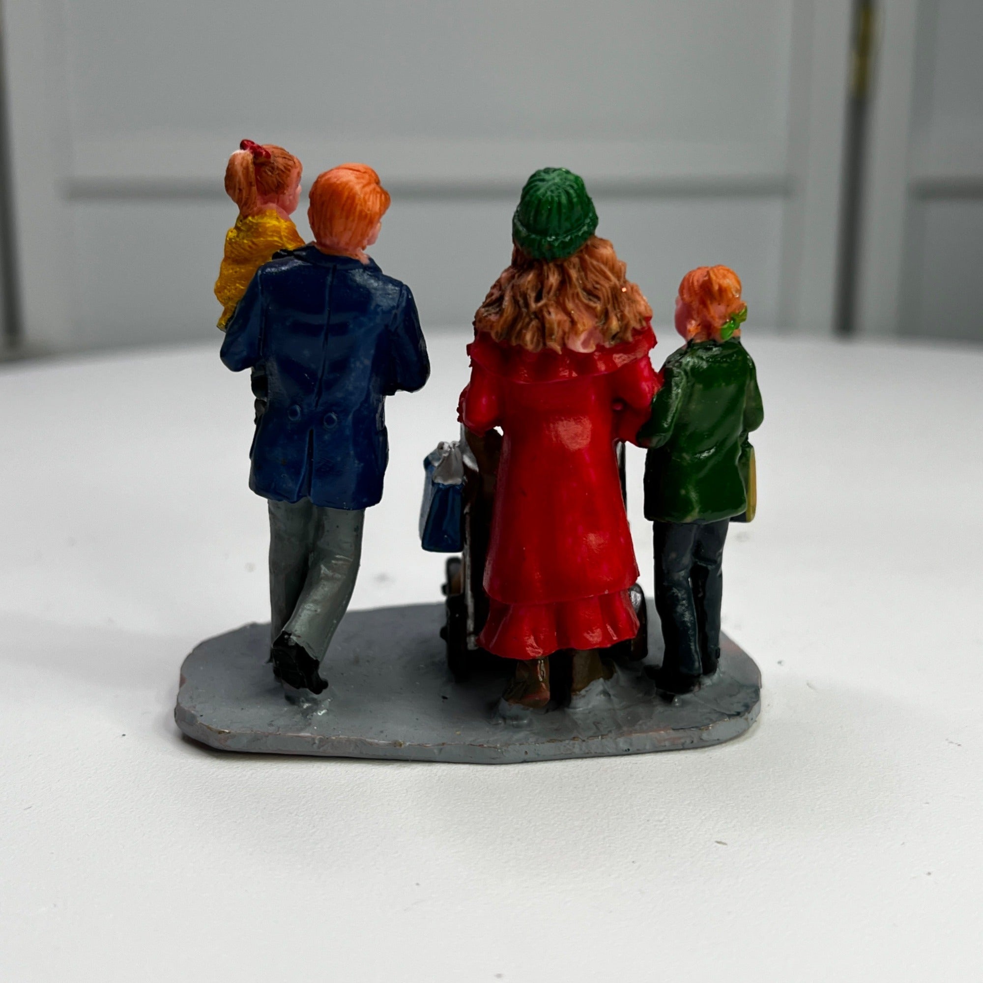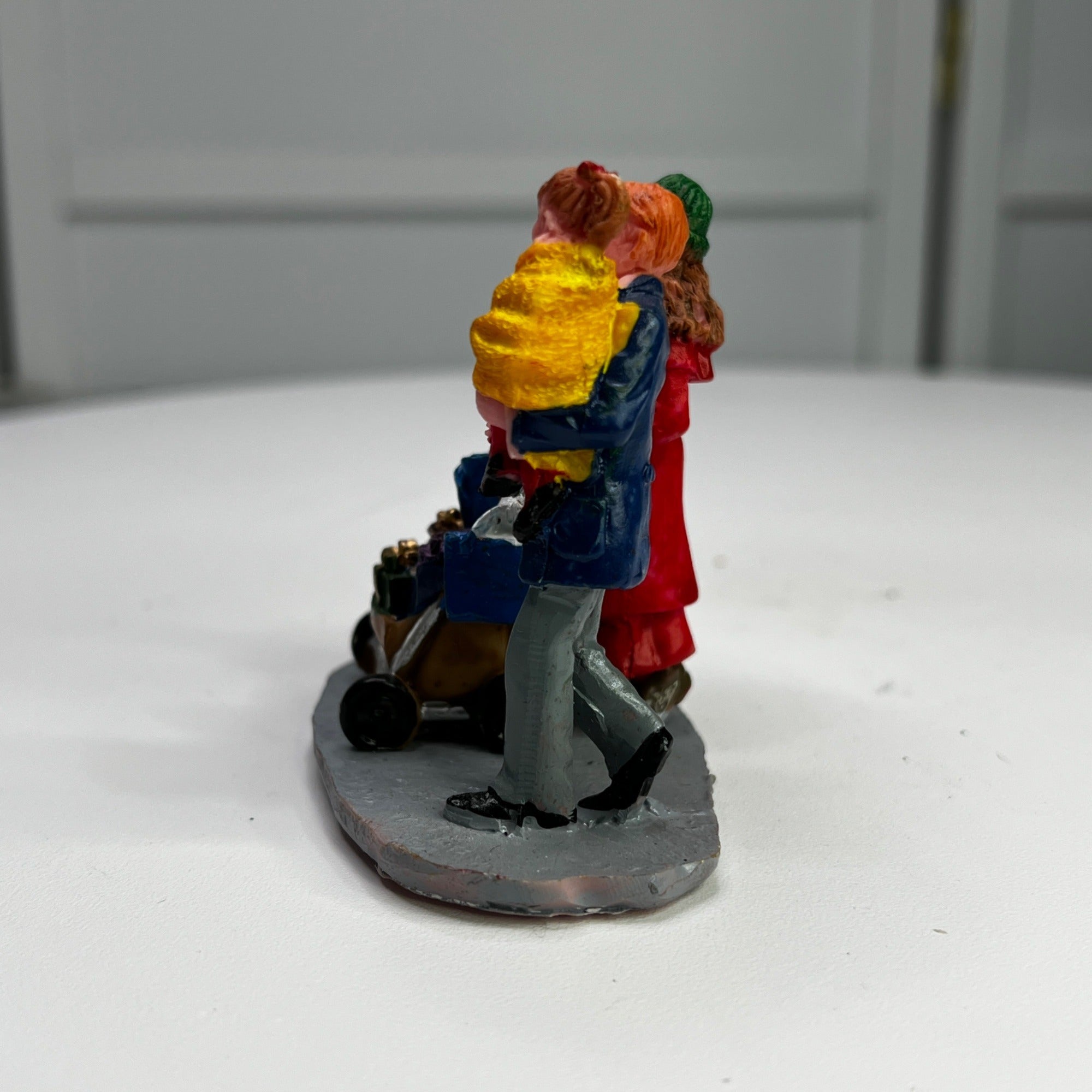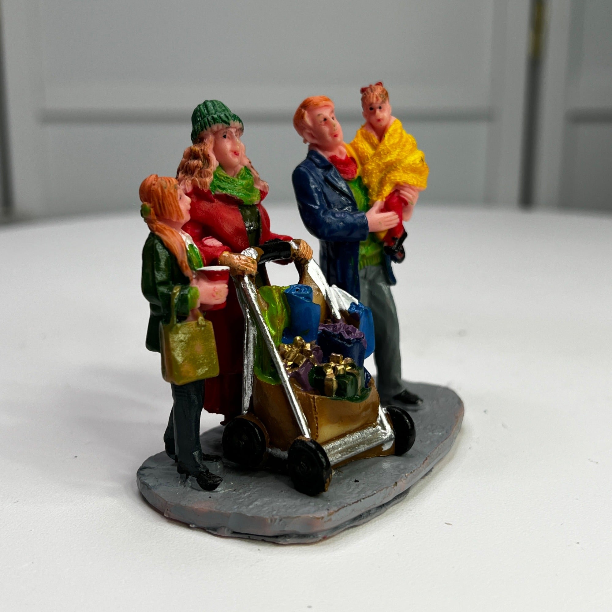 Lemax Christmas Shopping With Mom And Dad Village Accessory from 2013. Very beautiful hand-painted resin figurine. Family out Christmas shopping with mom pushing baby in stroller. Size: 2.68 x 2.91 x 1.77 inches