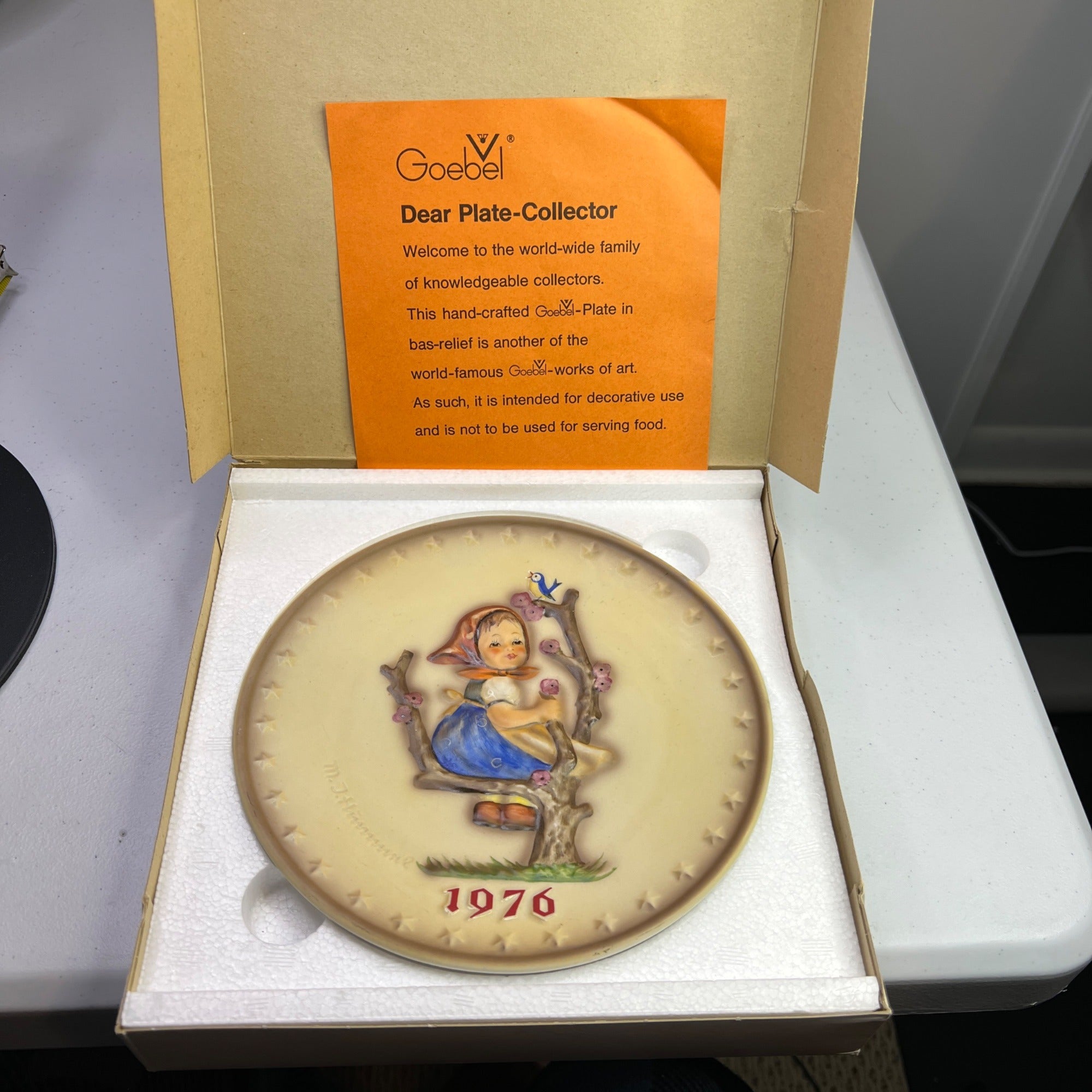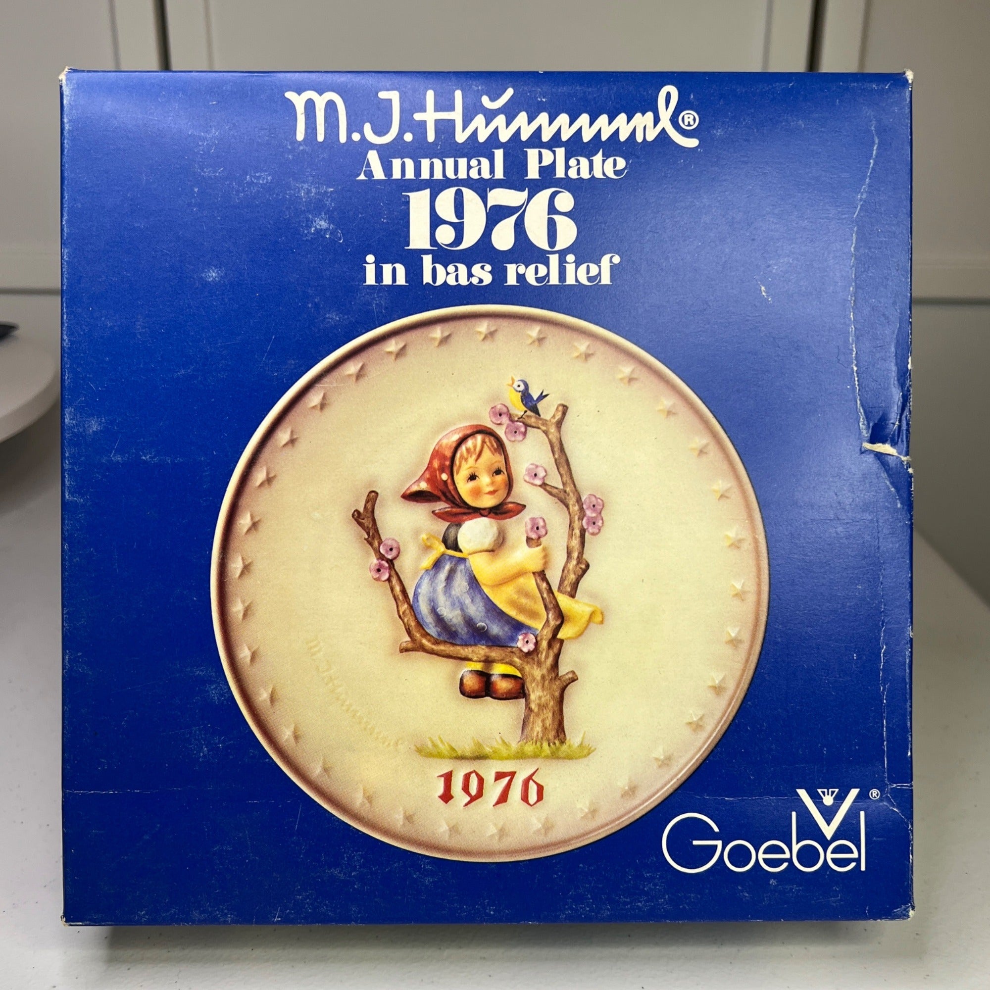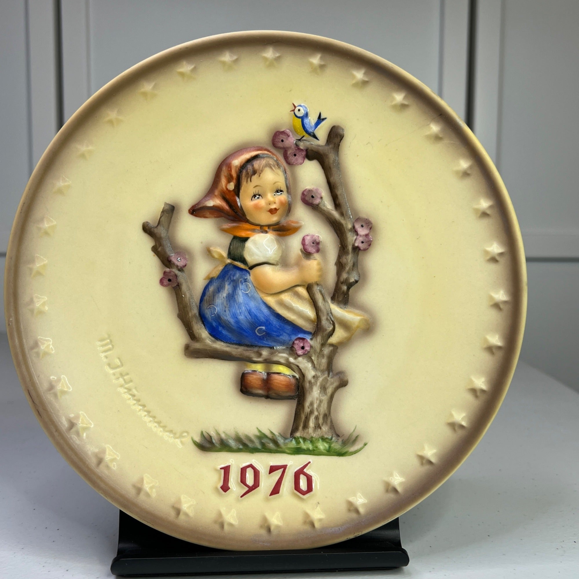 This collectible 1976 Annual Plate by M.J. Hummel, titled "Apple Tree Girl," showcases intricate craftsmanship and timeless charm, ideal for collectors or display.