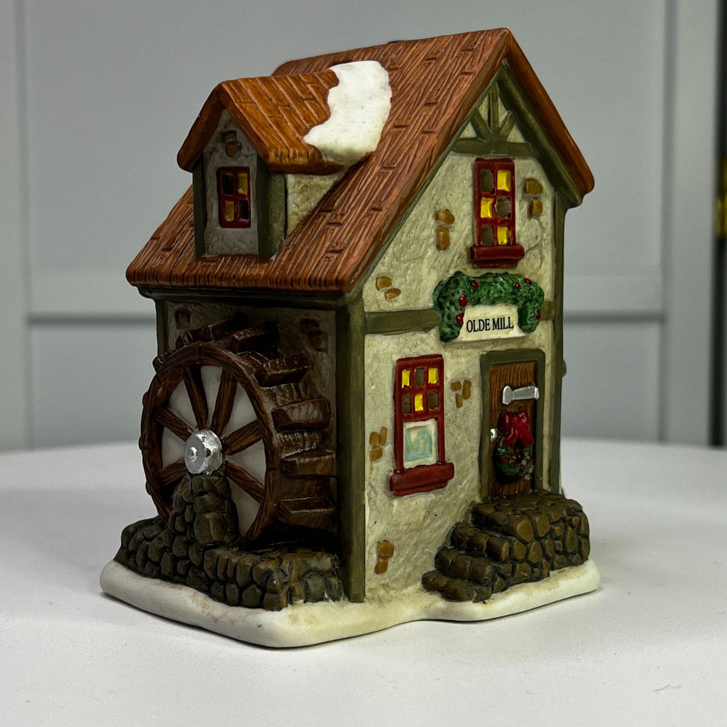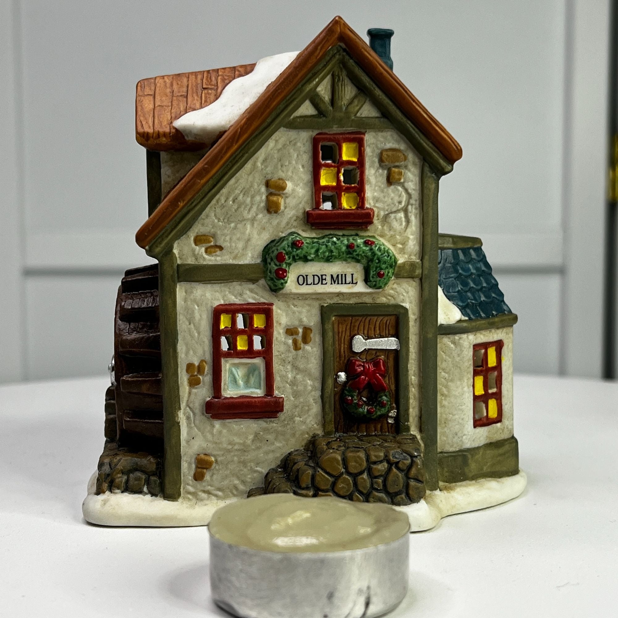 This beautiful Christmas collectible makes a classy addition to any village collection. The Olde Mill is still in pretty good condition for being 30 years old and has beautiful artwork, color and design. Includes original box (box has wear) and tea light candle.