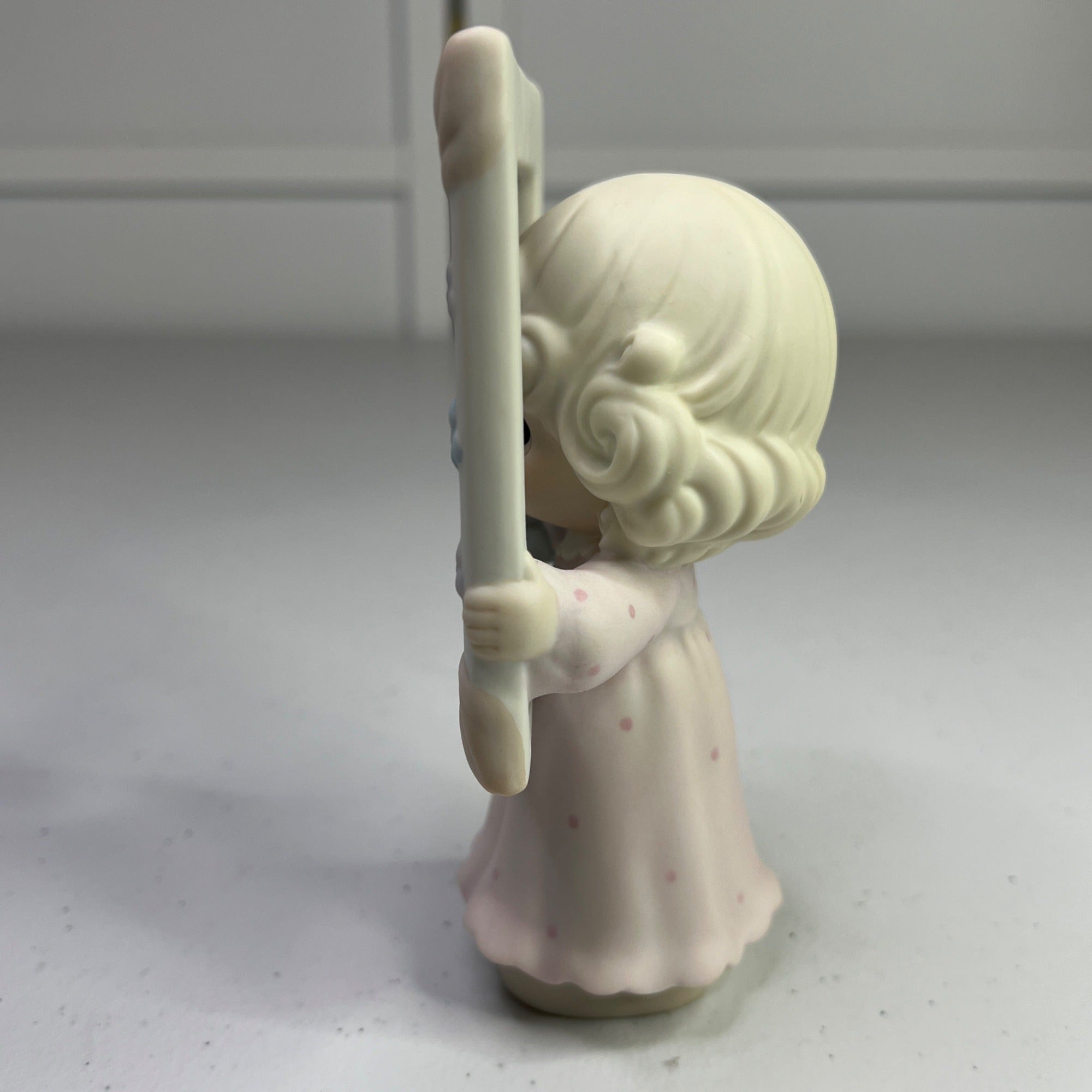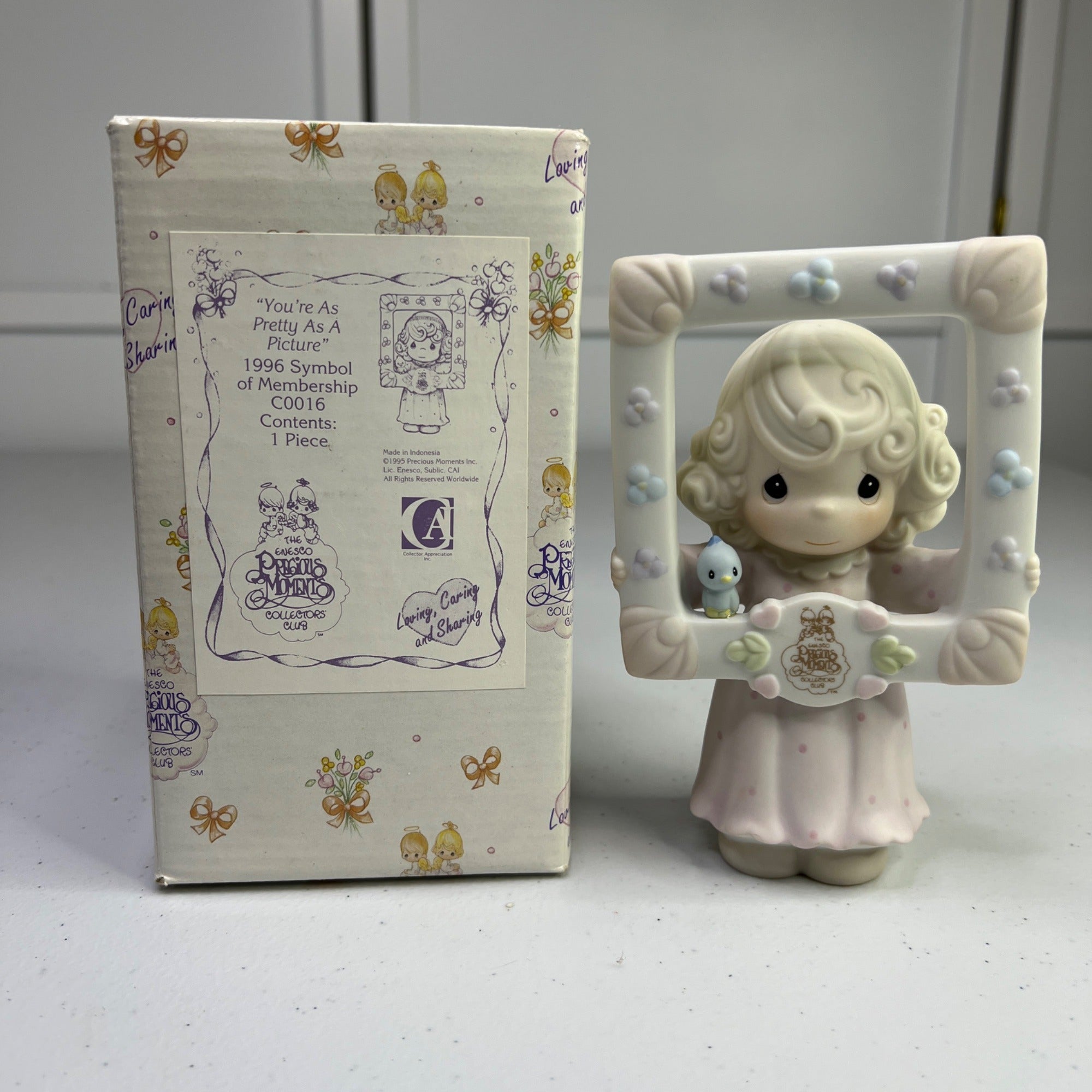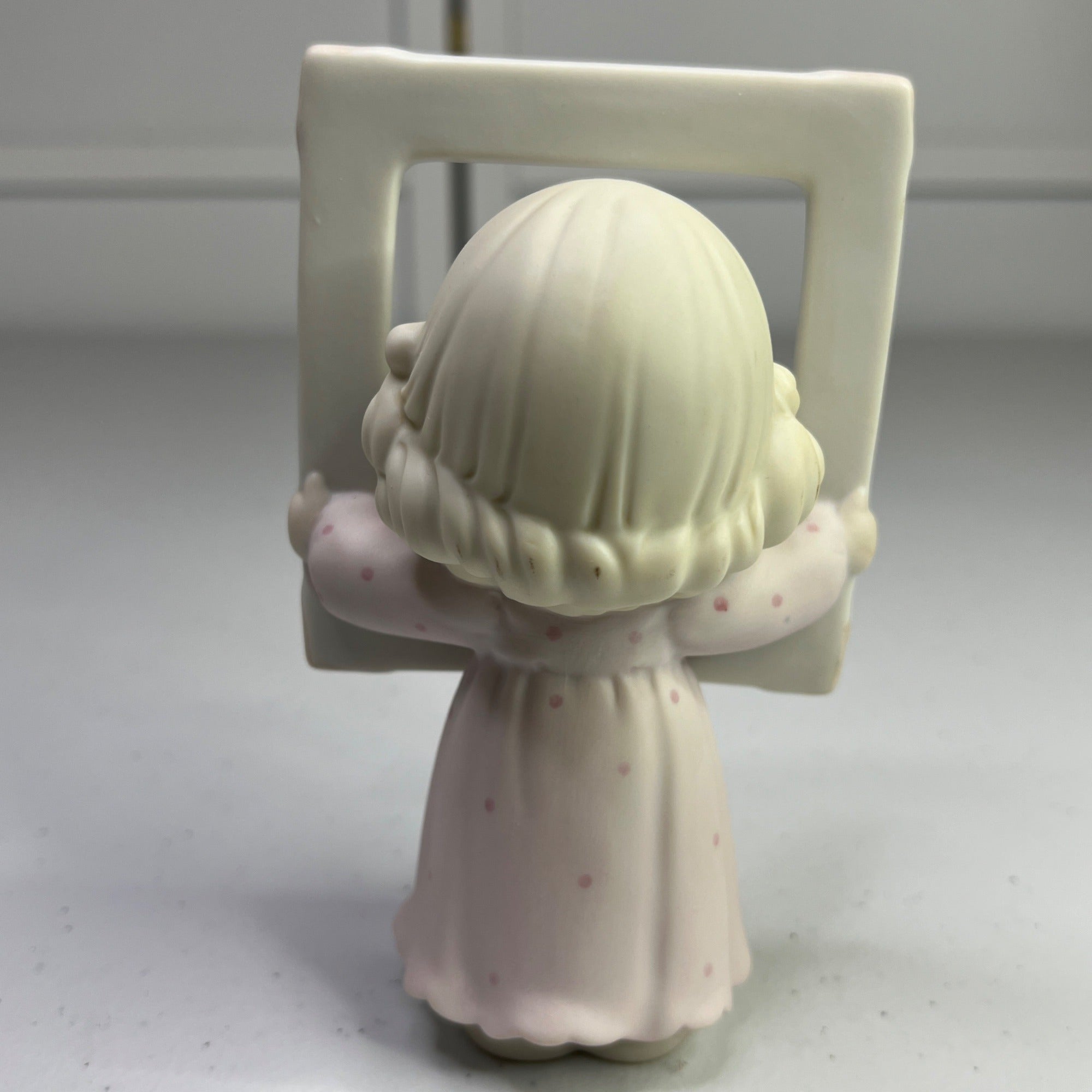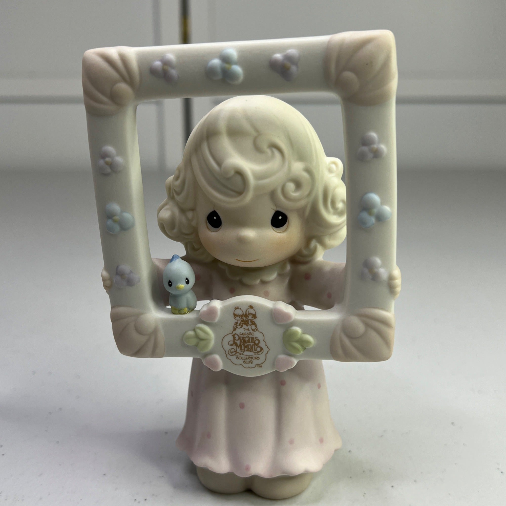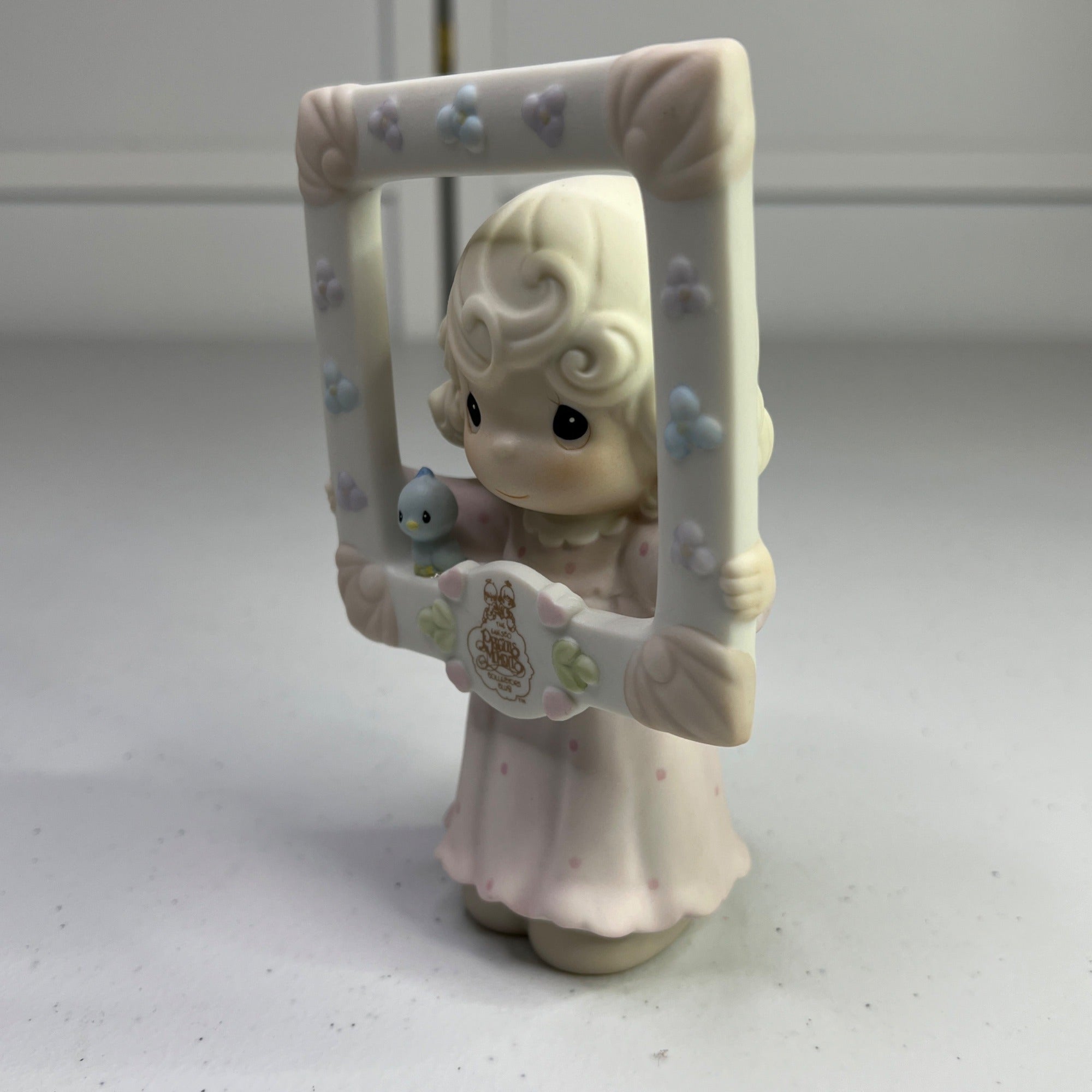 This vintage Precious Moments figurine, "You're As Pretty As A Picture," transports you to a time when craftsmanship and charm were paramount. Crafted in 1996, it pays homage to a bygone era with its delicate details and enchanting design. A timeless piece for collectors and enthusiasts of nostalgic decor. Size: 5" tall.
