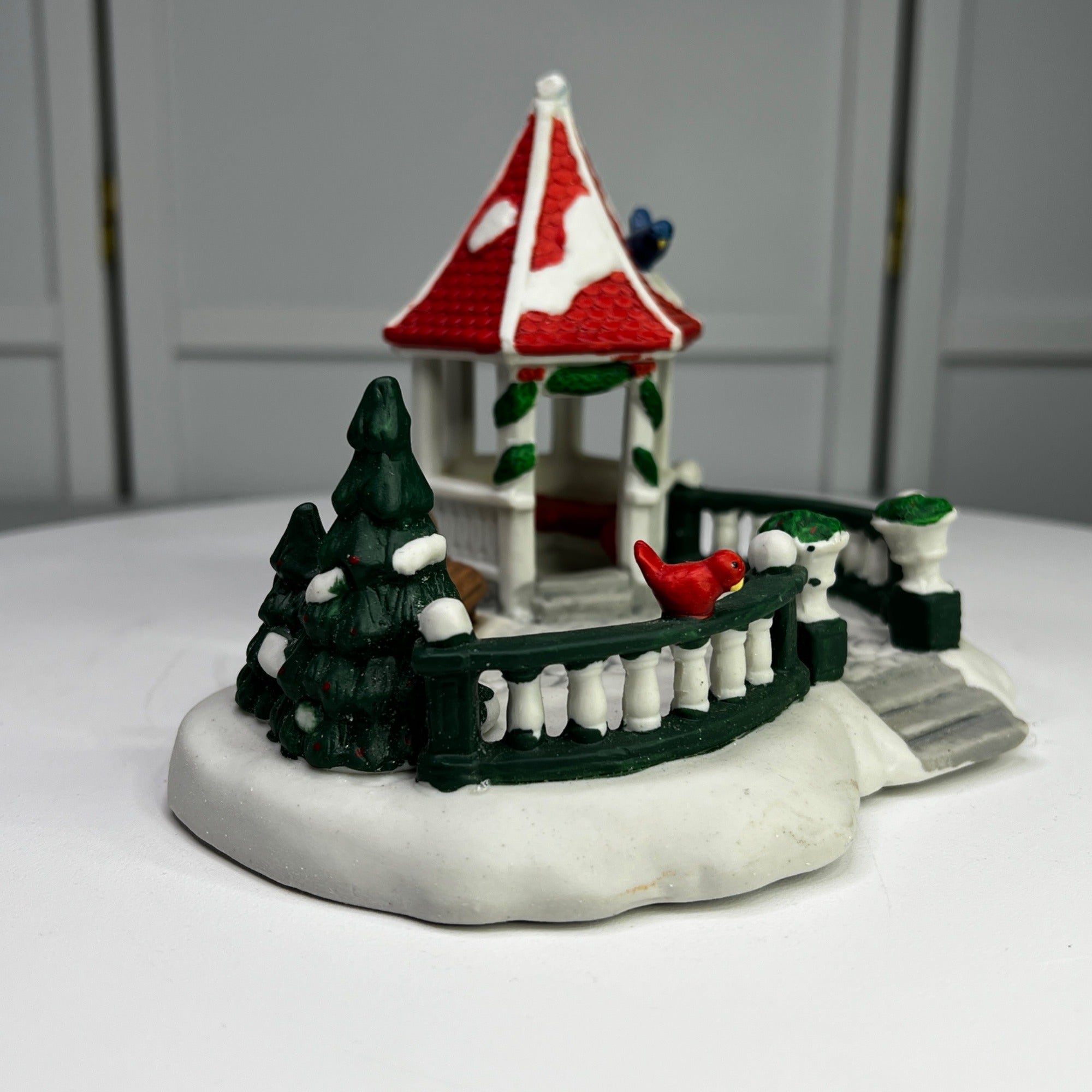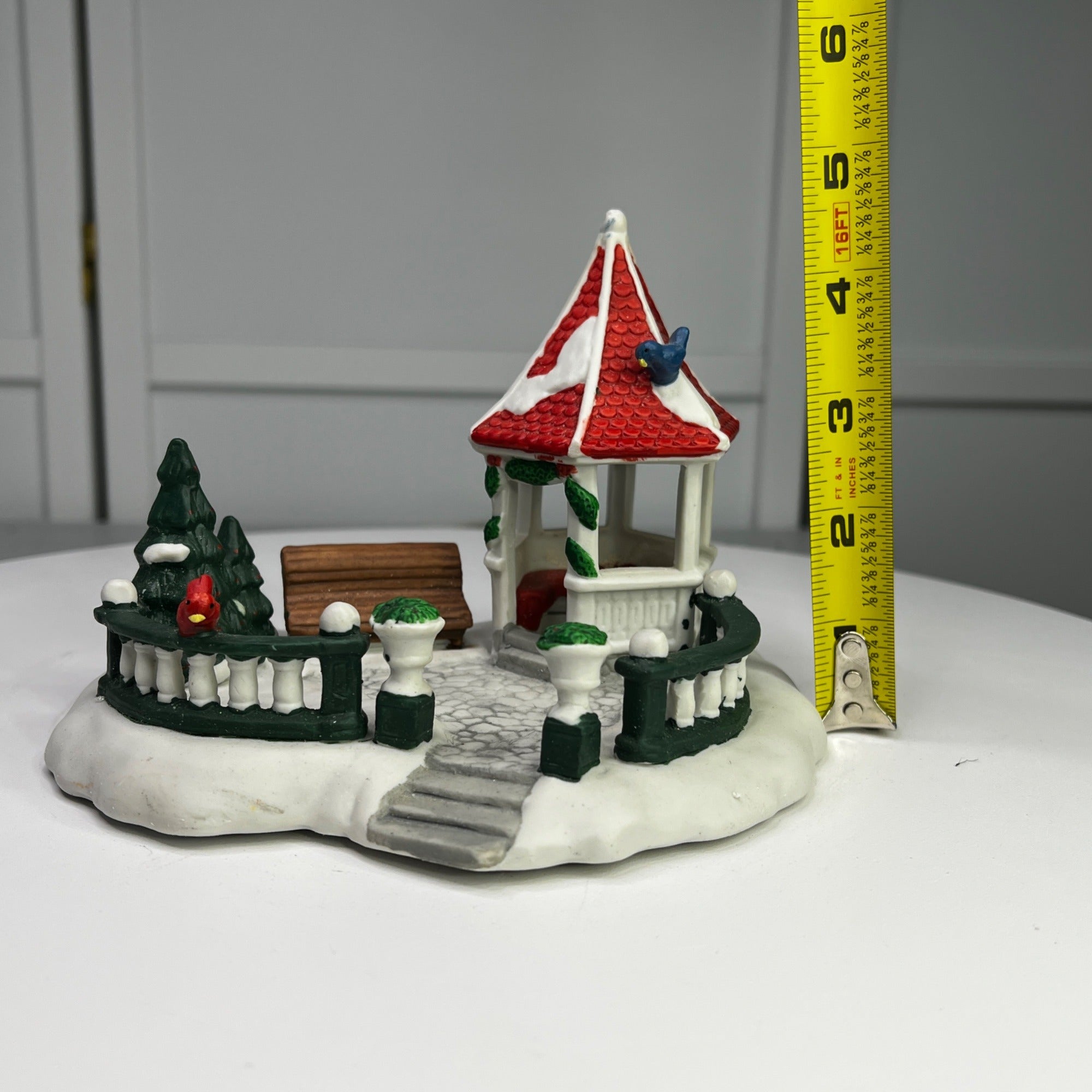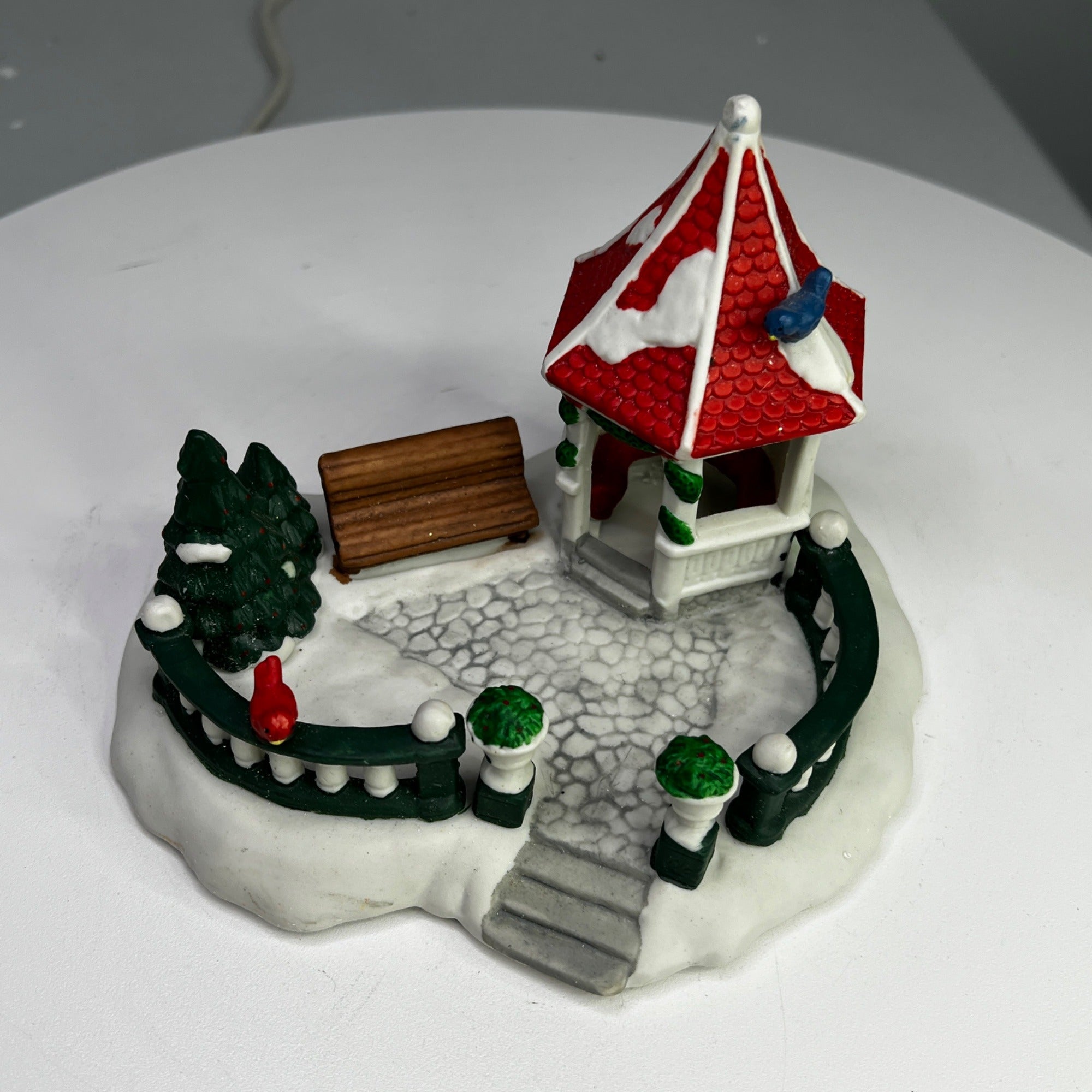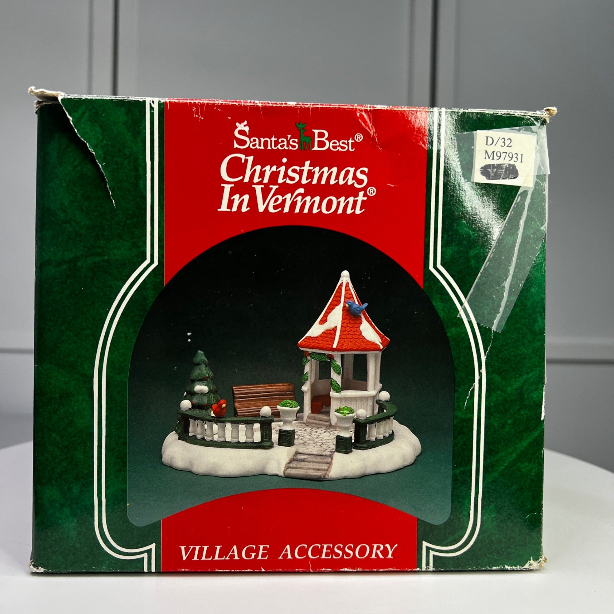 Santa's Best Park and Gazebo Christmas in Vermont Village Accessory from 1995 . Very beautiful hand-painted porcelain figurine. Park scenery with gazebo bench, railings and birds. Size 7 x 5 x 5".