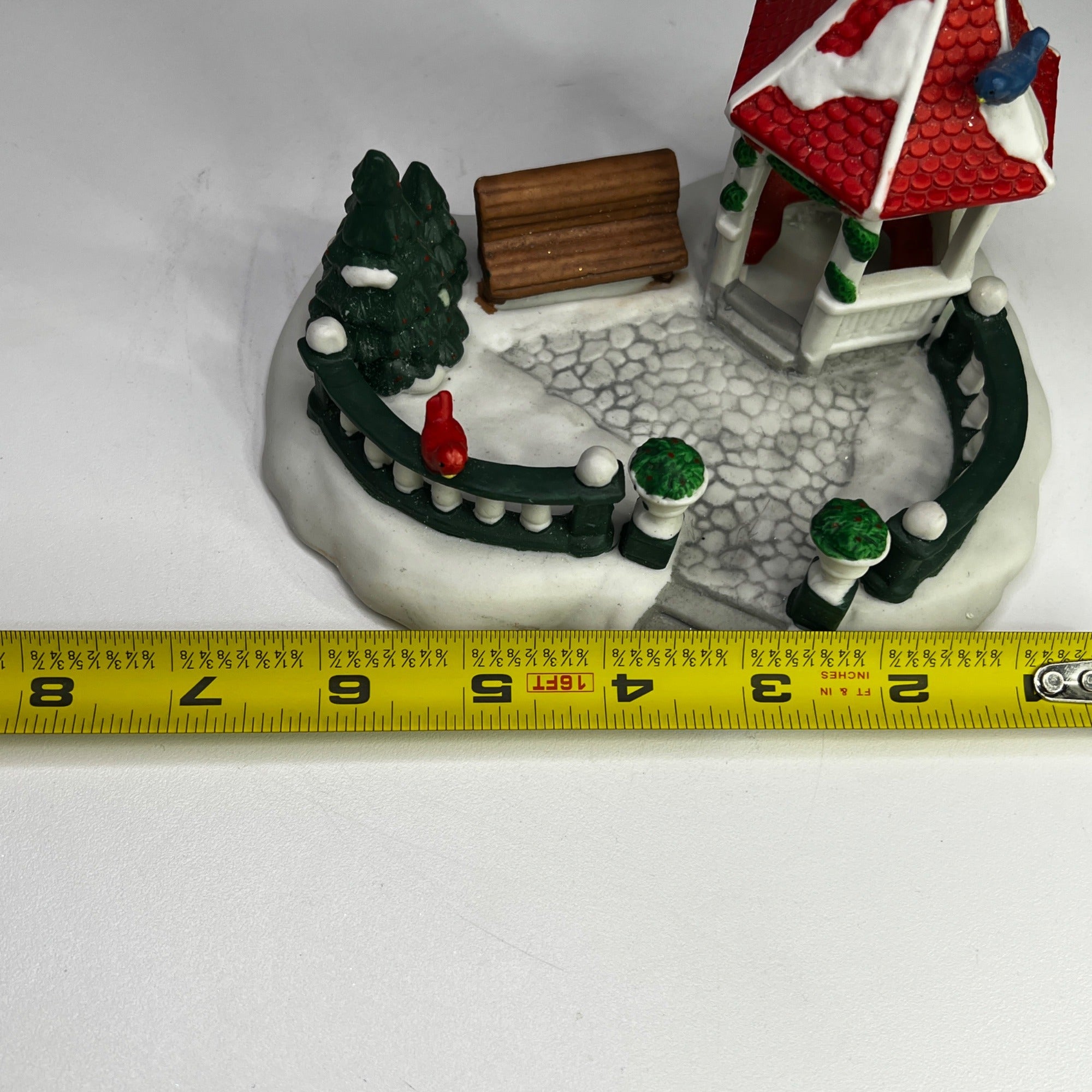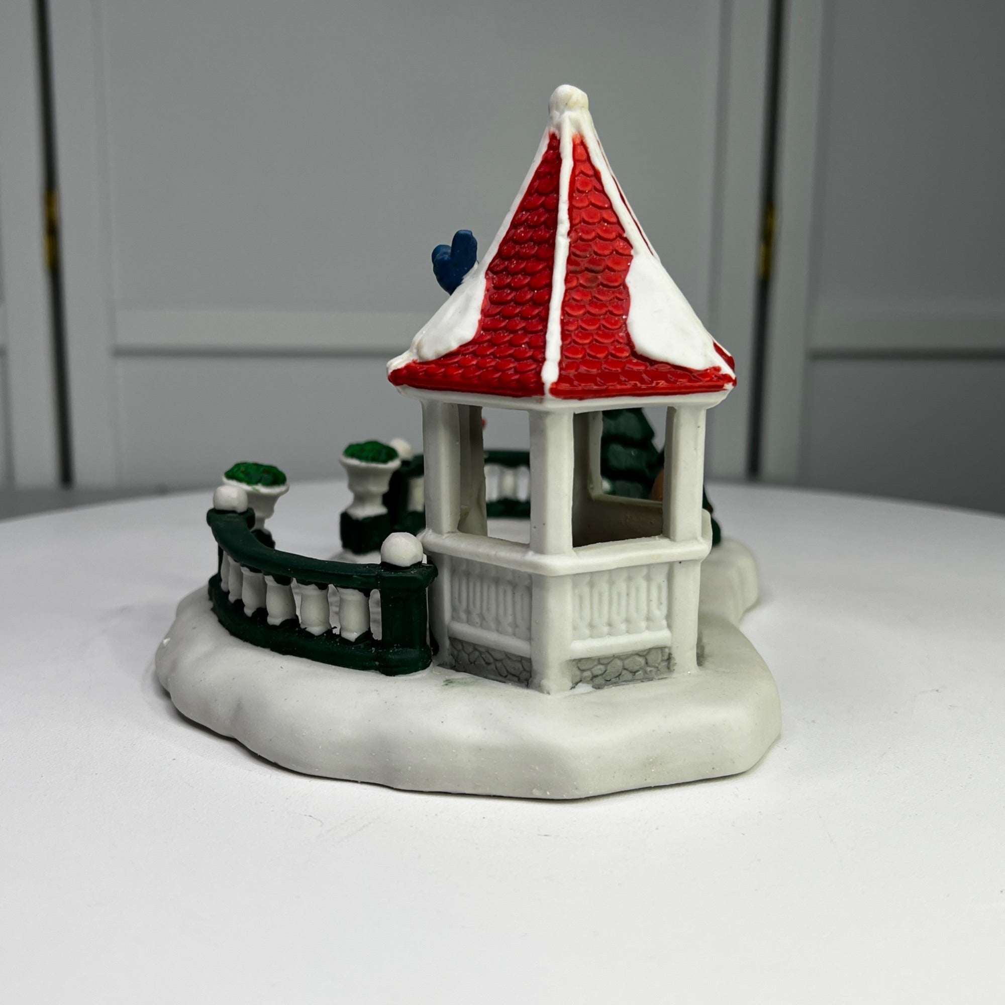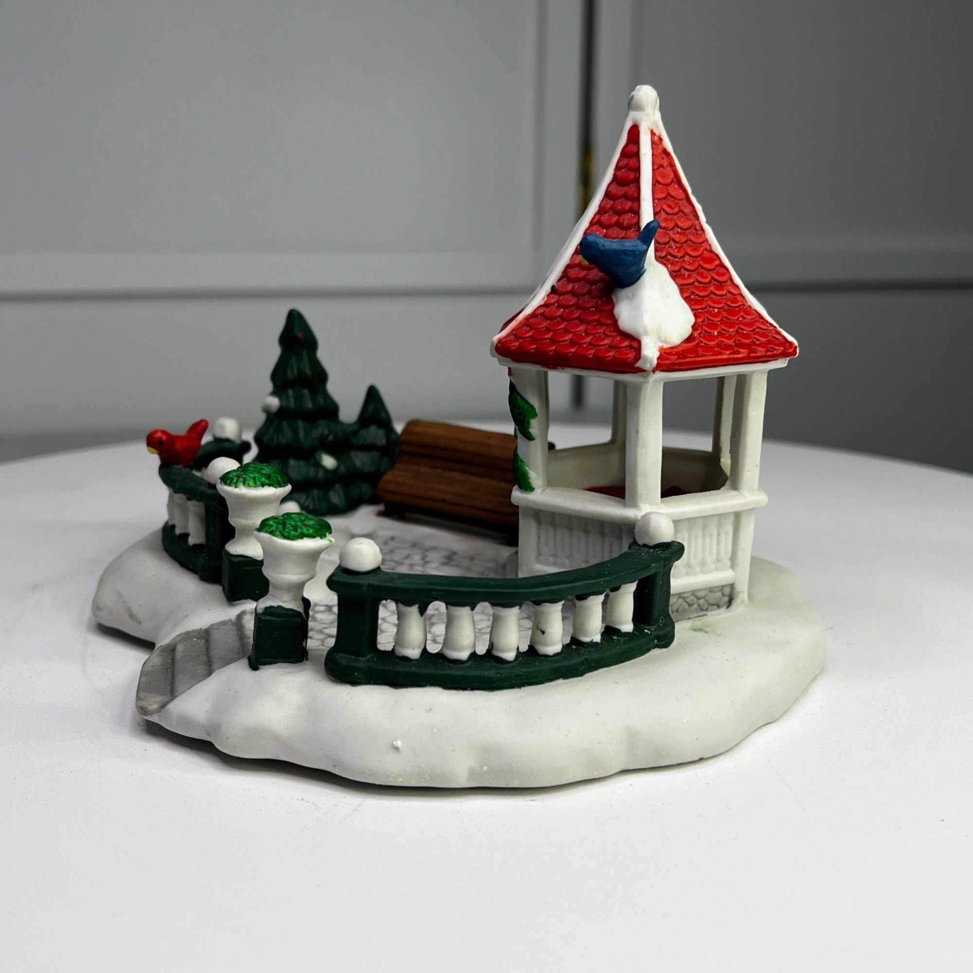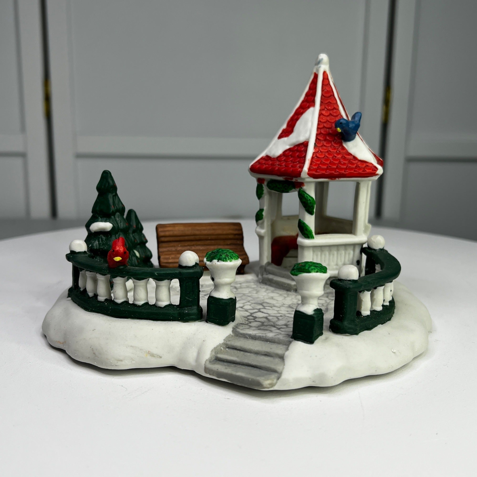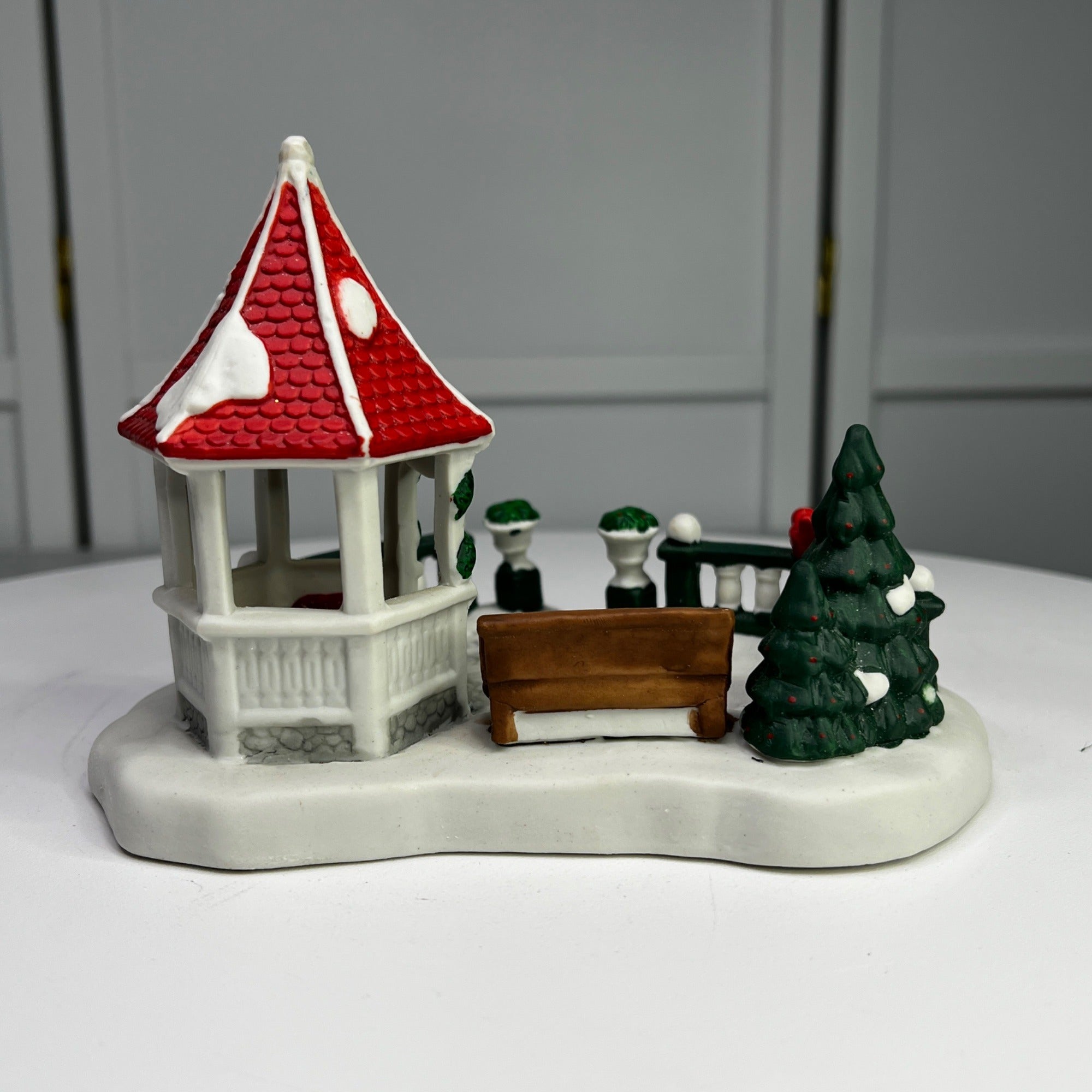 Santa's Best Park and Gazebo Christmas in Vermont Village Accessory from 1995 . Very beautiful hand-painted porcelain figurine. Park scenery with gazebo bench, railings and birds. Size 7 x 5 x 5".
