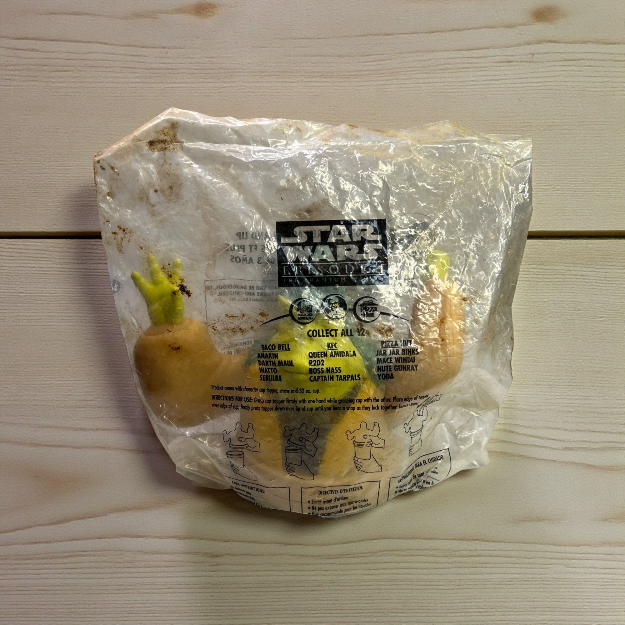 Own a piece of Star Wars history with this 1999 Boss Nass cup topper. A fun and collectible item for enthusiasts of the beloved franchise.