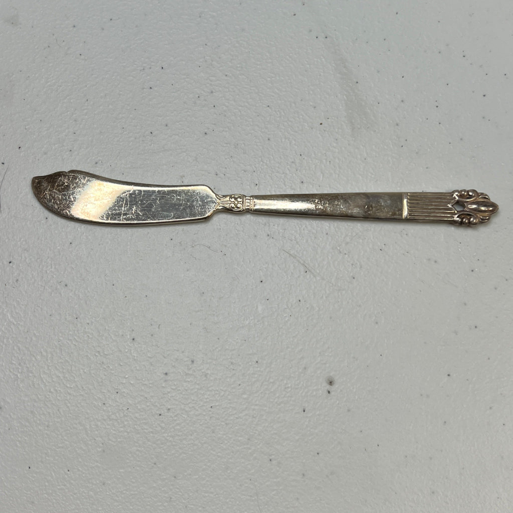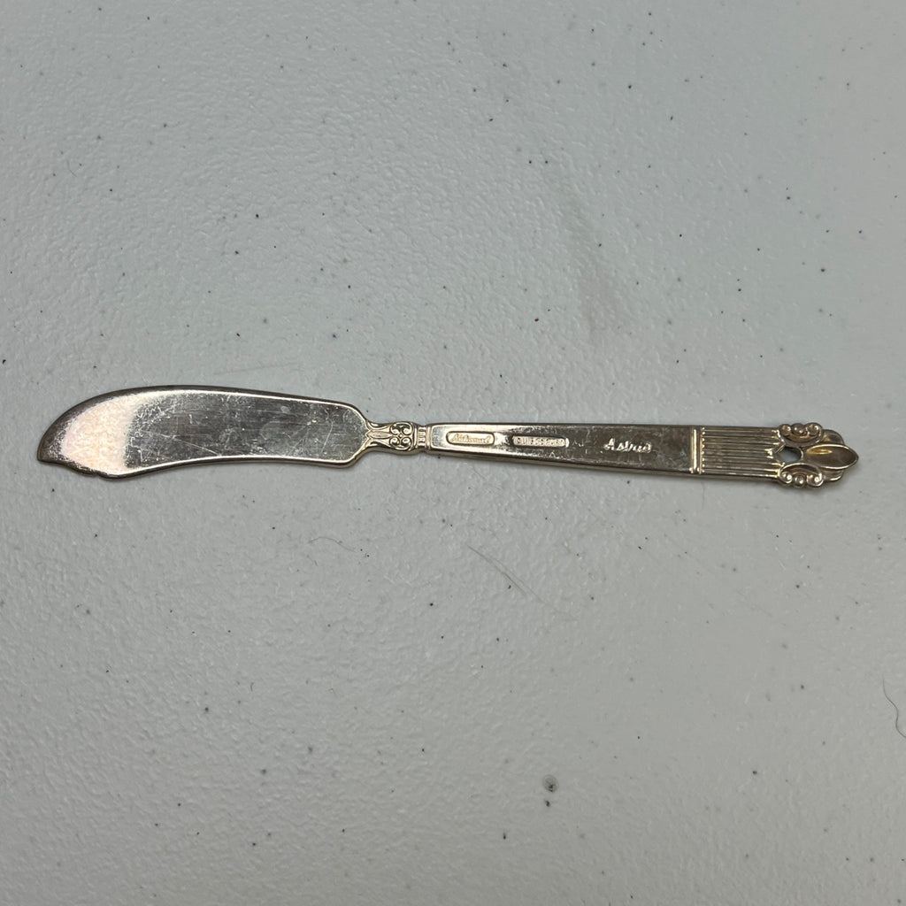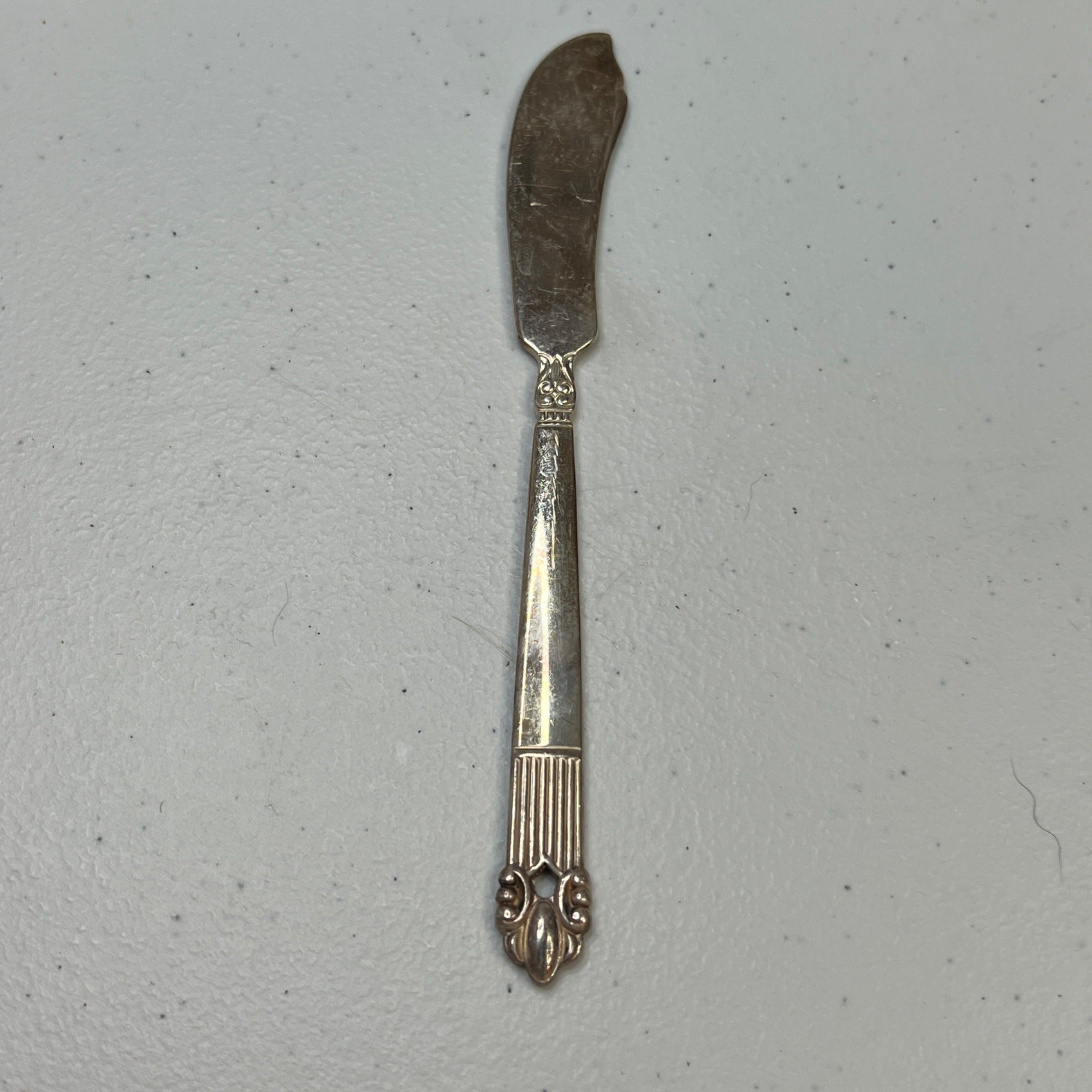 This vintage butter spreader from the 1970s showcases the elegant Astrid pattern by National Guildcraft, making it a refined choice for collectors or those enhancing a classic table setting. Its timeless design complements a sophisticated dining experience, adding a touch of history to your collection or serving needs.