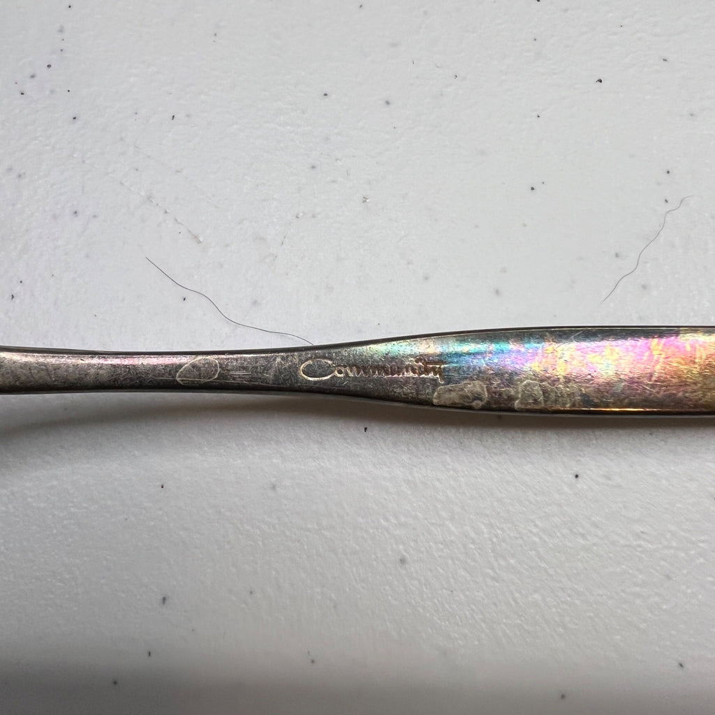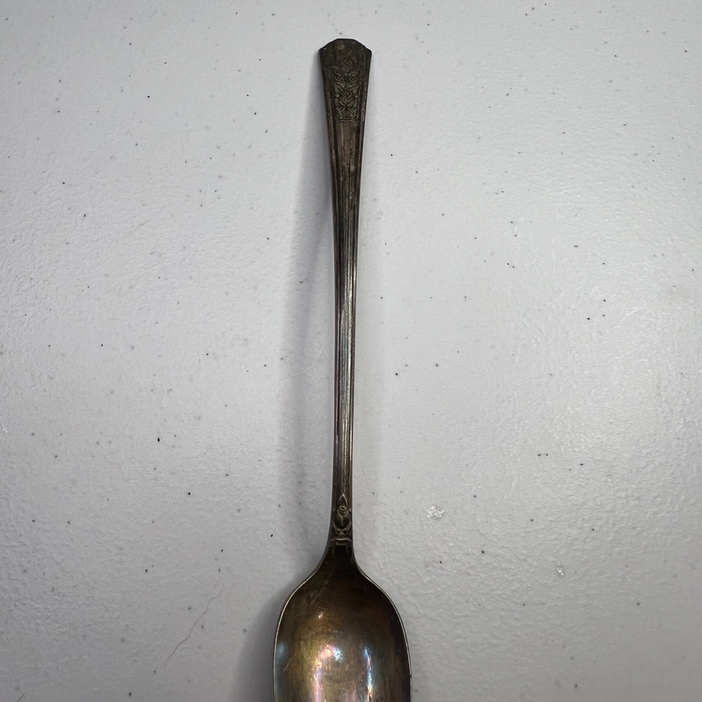 This silver-plated serving spoon from Wm. Rogers was part of the Oneida Community flatware and offers a timeless design and durable build, suitable for elegant dining and table settings.