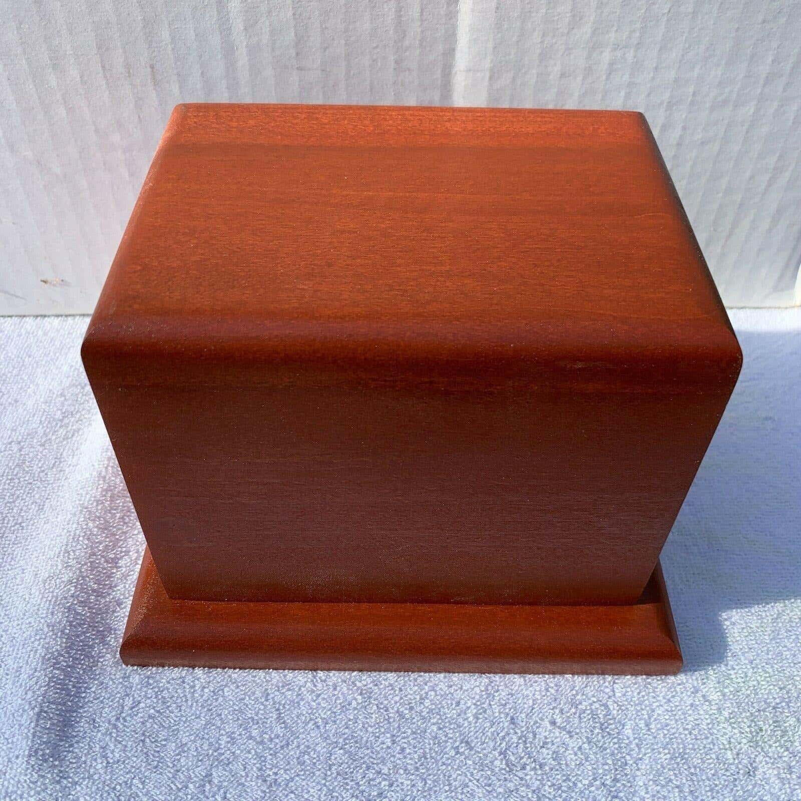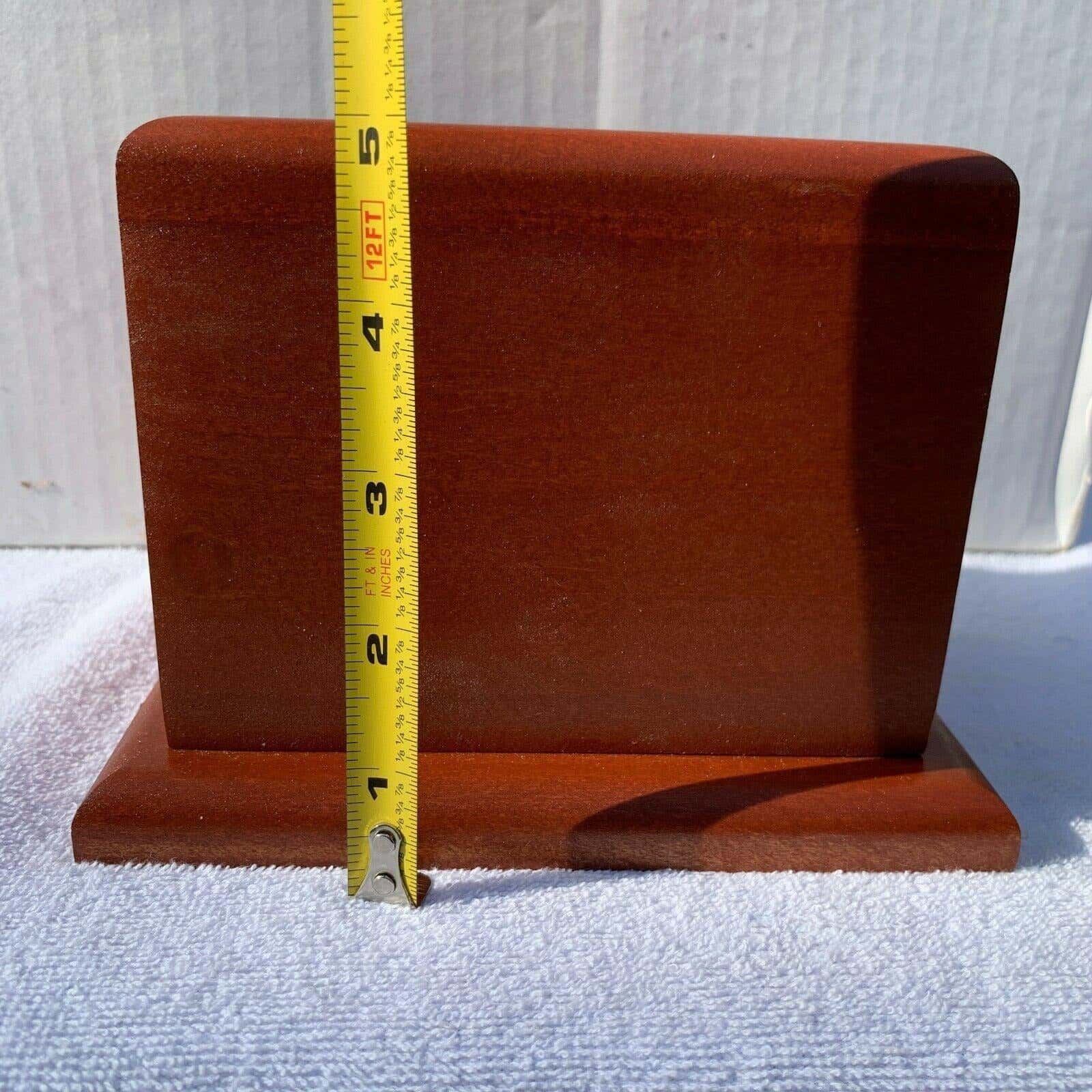 Wood Table Top Accent - Solid Poplar, Cherry Stain, Made in USA. Very good condition, measures 7" long at the base and 5" tall. See pictures for size and condition.