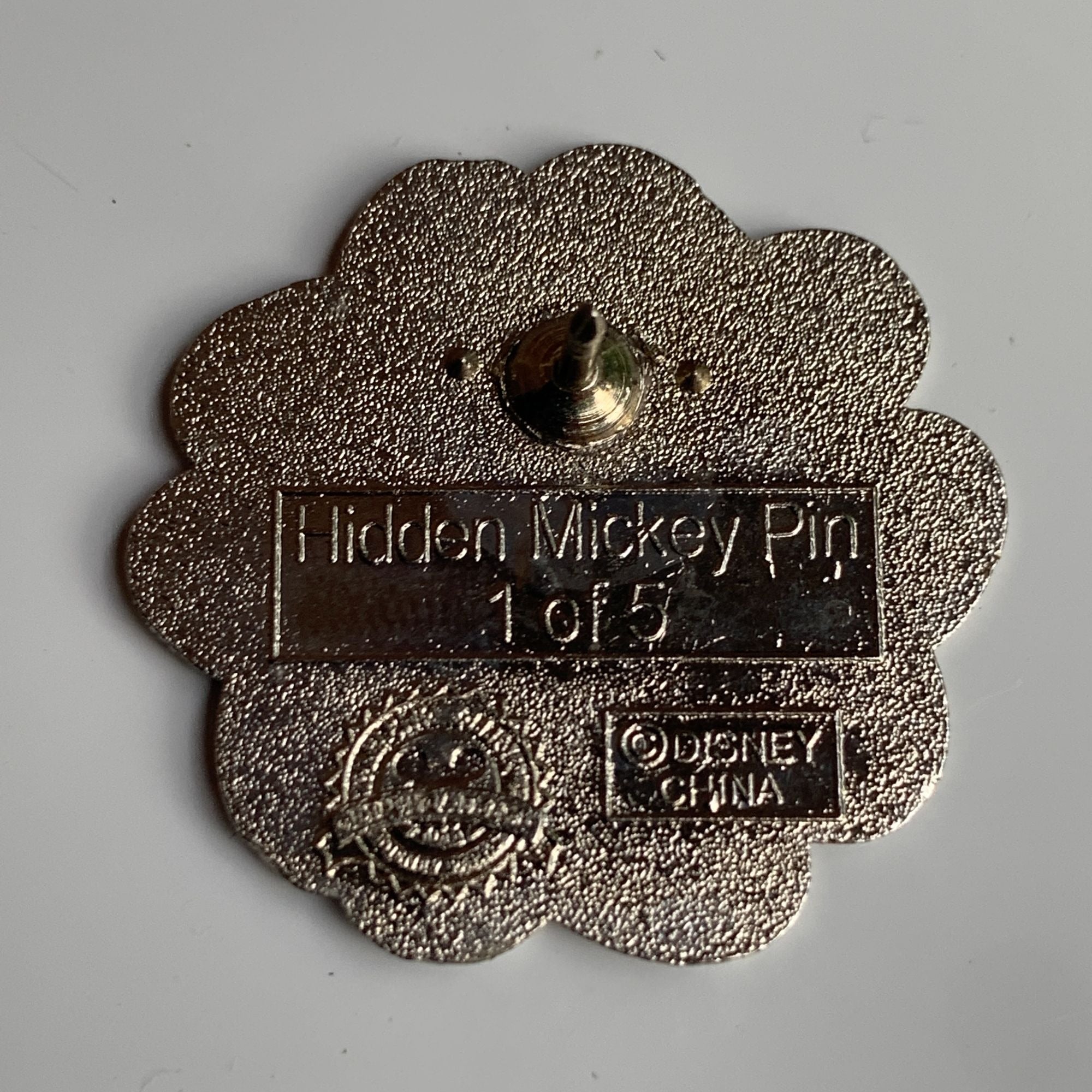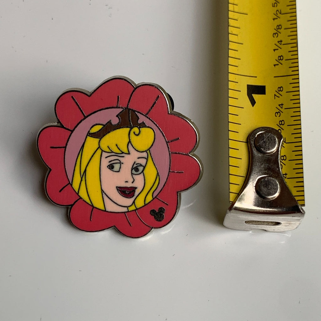 This pin features Princess Aurora, from Sleeping Beauty, in the center of a flower. It is part of the second wave of Walt Disney World Hidden Mickeys for 2011. It is number 1 of 5. The silver hidden mickey is in the bottom right corner