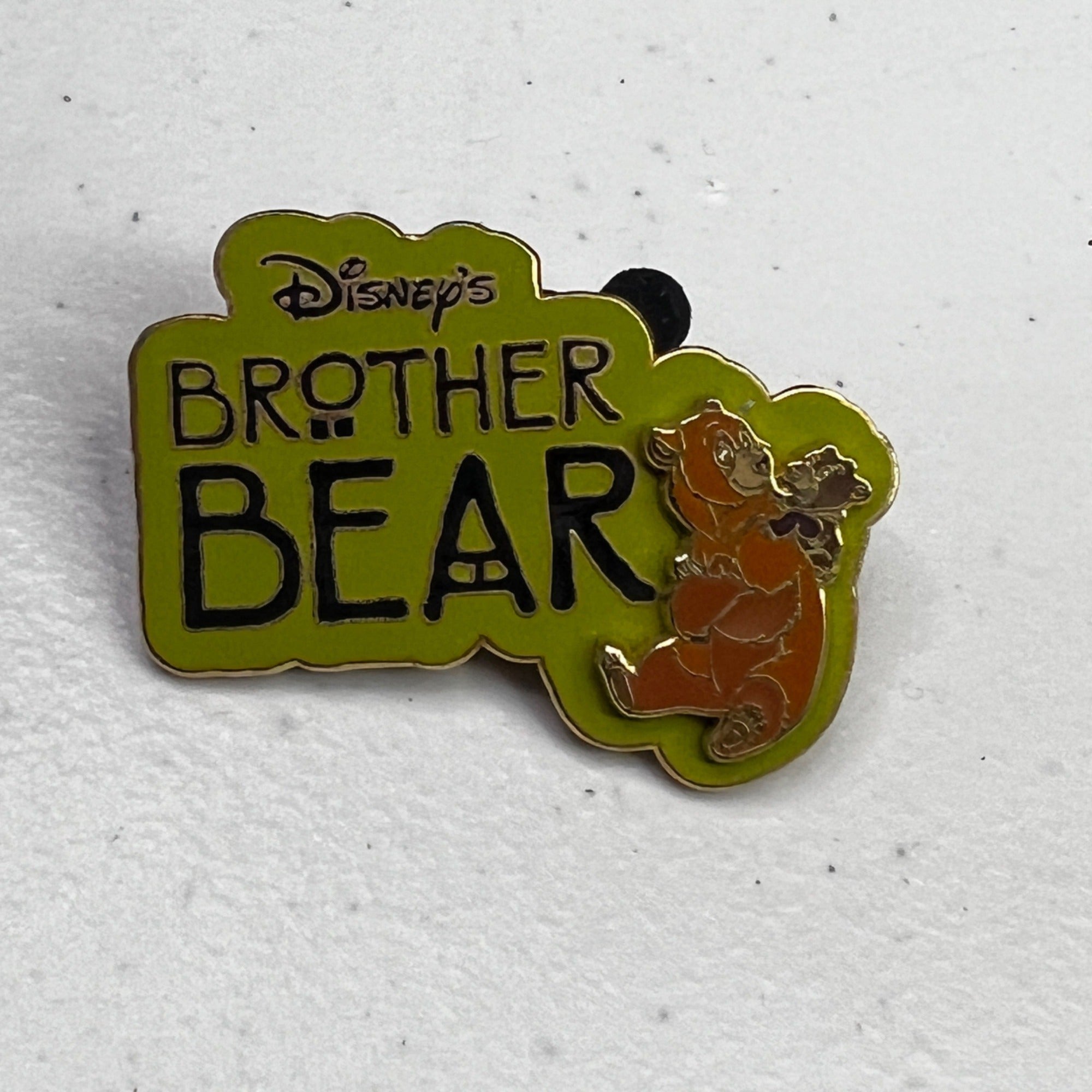 This unique pin features a Green Brother Bear logo with Koda and Kenai as a pin on pin in the lower right. It reads, "Disney's Brother Bear".