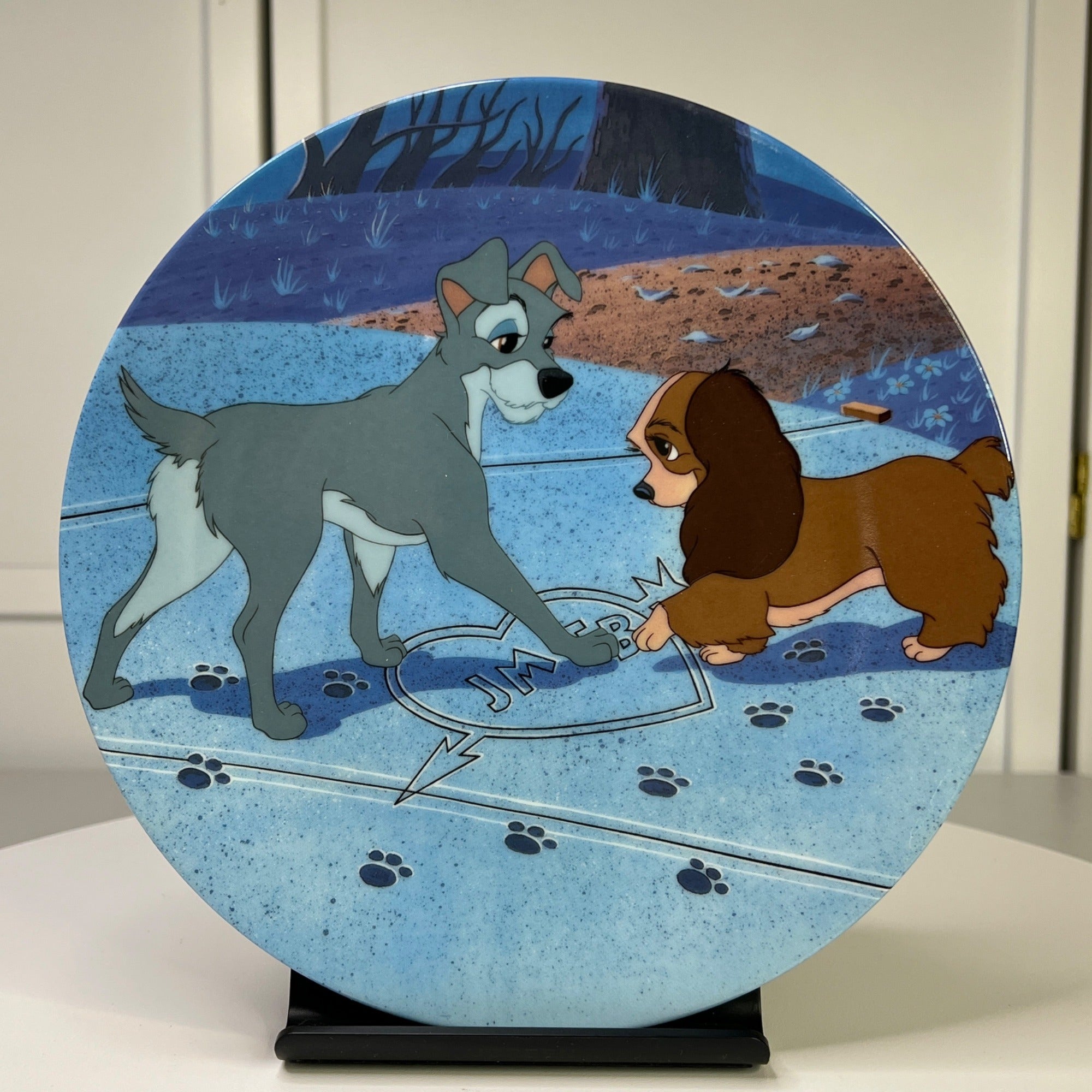 This Walt Disney Collector Plate featuring Lady and the Tramp "Puppy Love" 2nd issue is a limited edition collectible item produced by Disney. This plate showcases the beloved characters and theme from the Disney film, making it a desirable piece for Disney collectors and this beautiful plagee is a special and exclusive addition to any Disneyana collection.