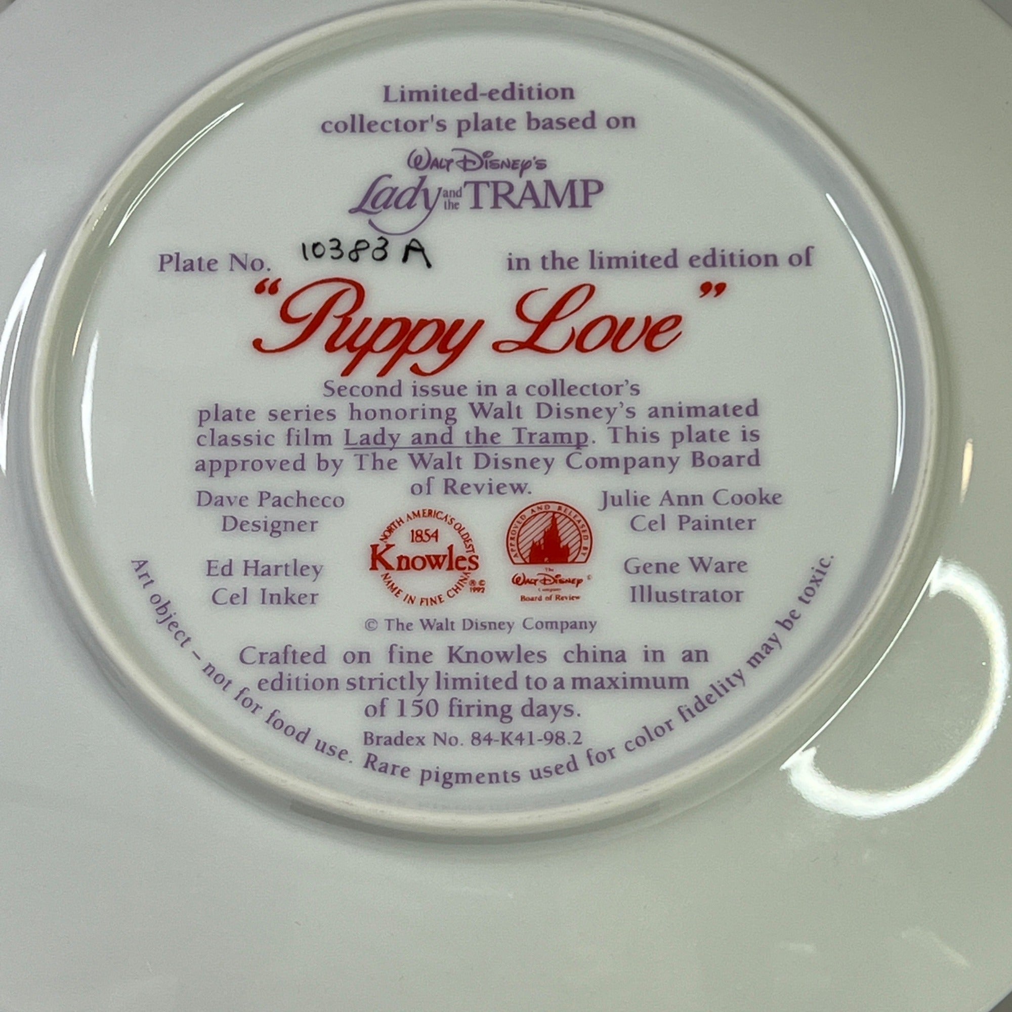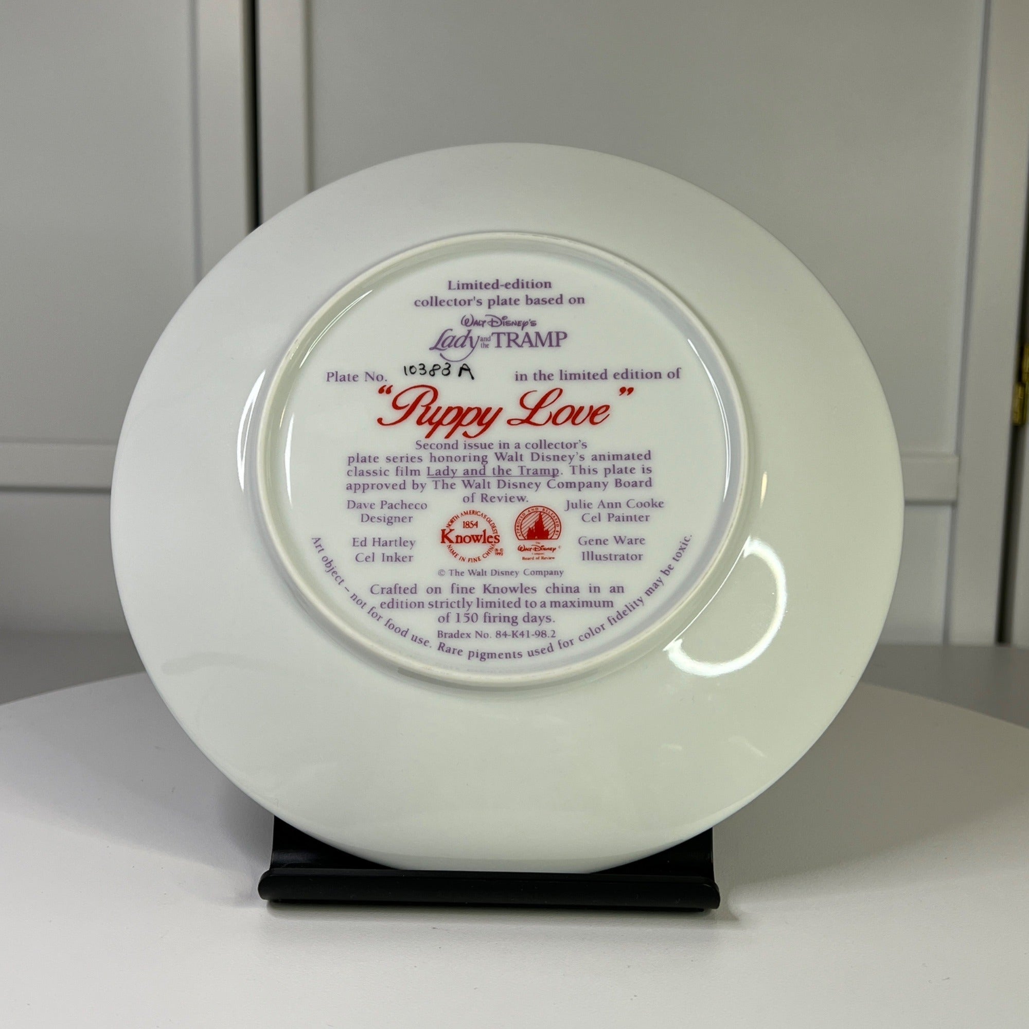 This beautiful Disney collectible makes a classy addition to any Disney figurine collection. The Puppy Love collectors plate is still in good condition for being over 20 years old and has beautiful artwork, color and design, each piece is properly marked on the bottom of the piece.