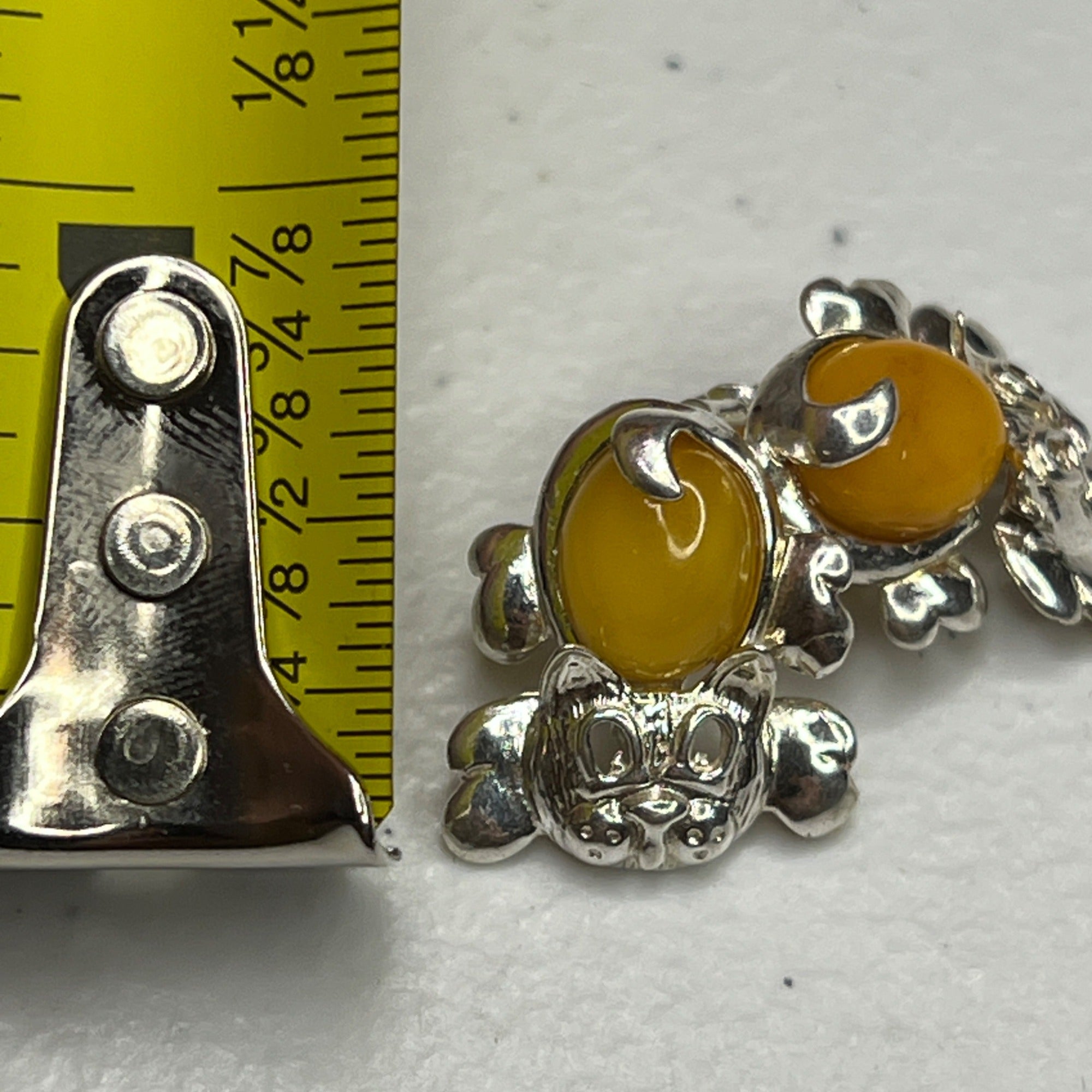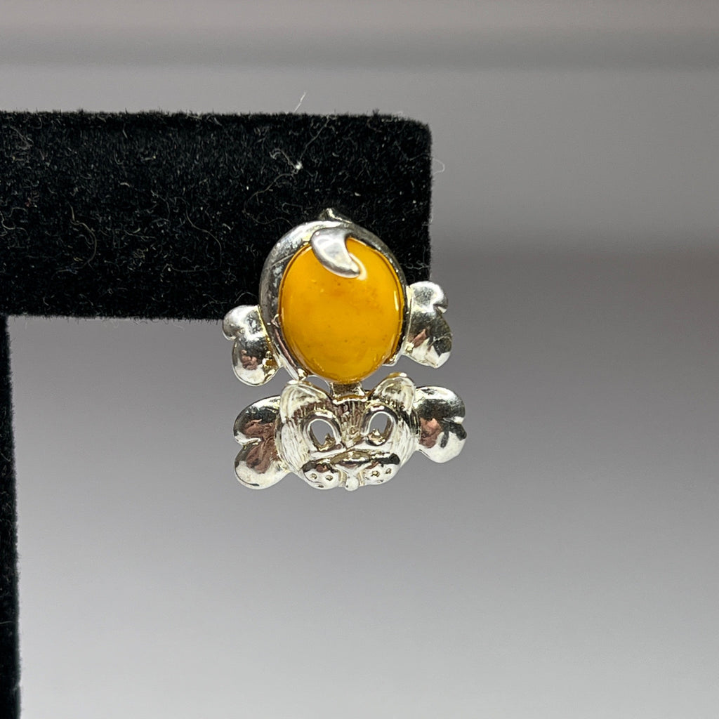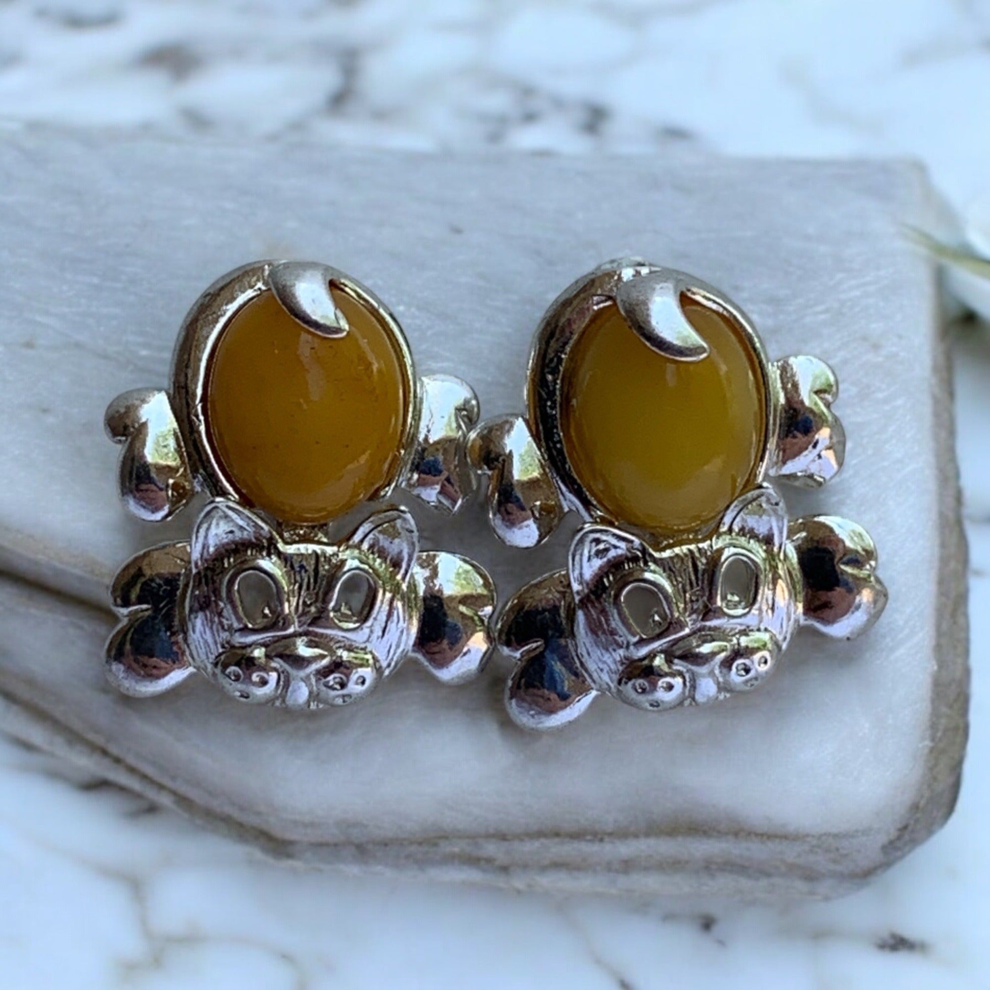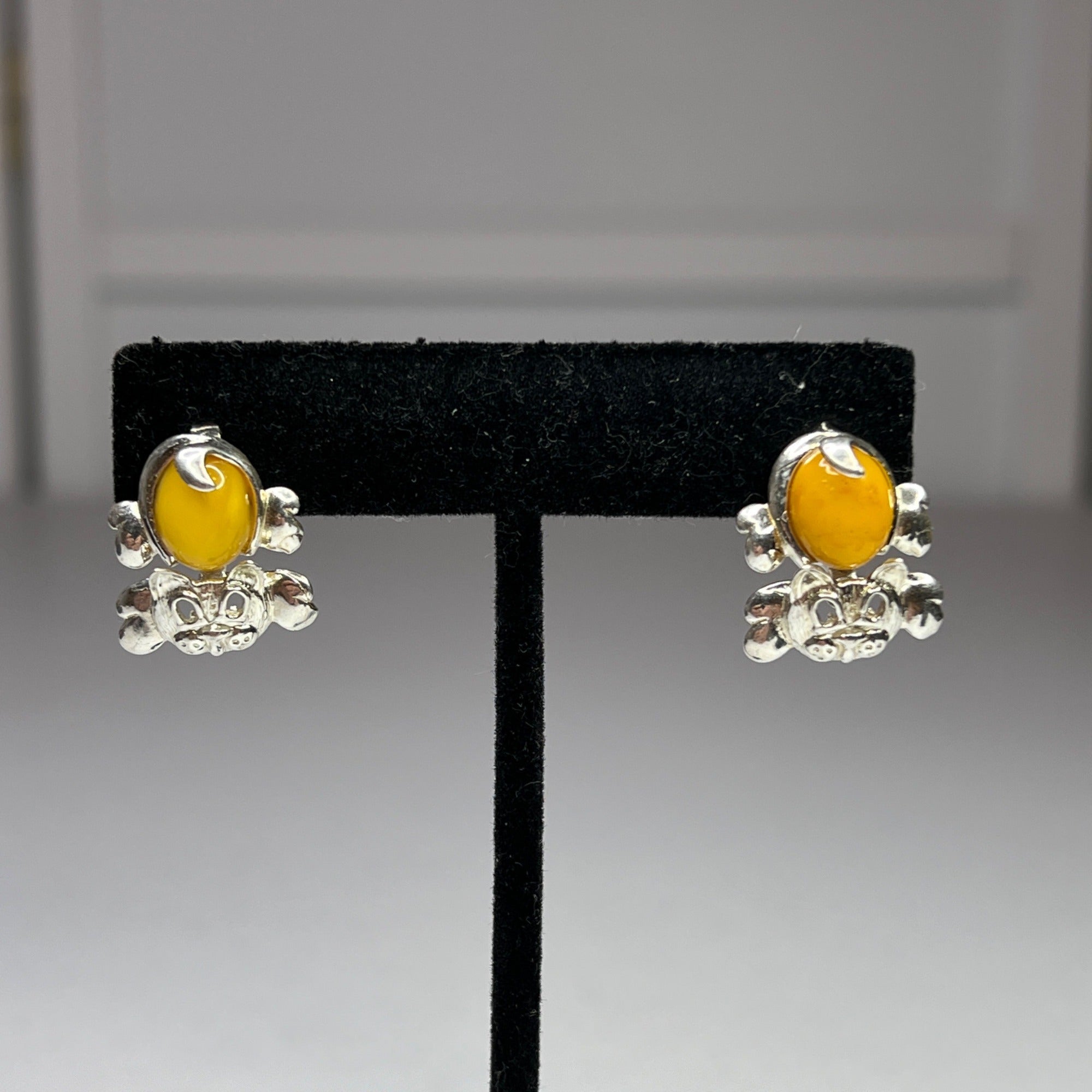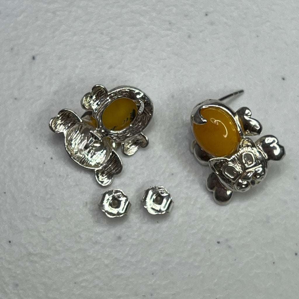 Designed with yellow amber and sterling silver, these cat-shaped earrings bring an elegant and playful touch to accessorizing. Secure butterfly backs ensure comfort.