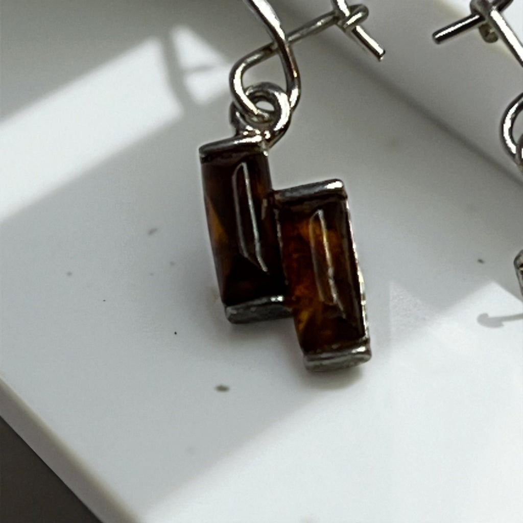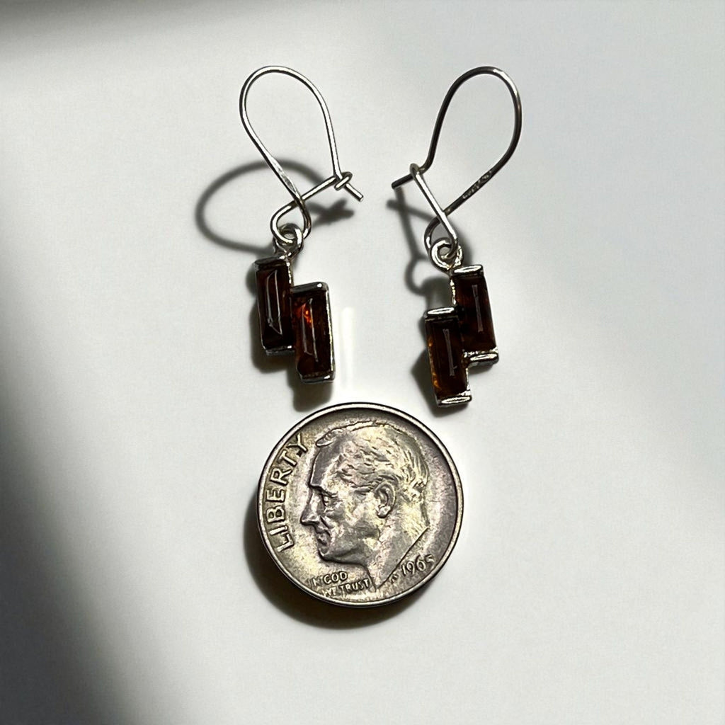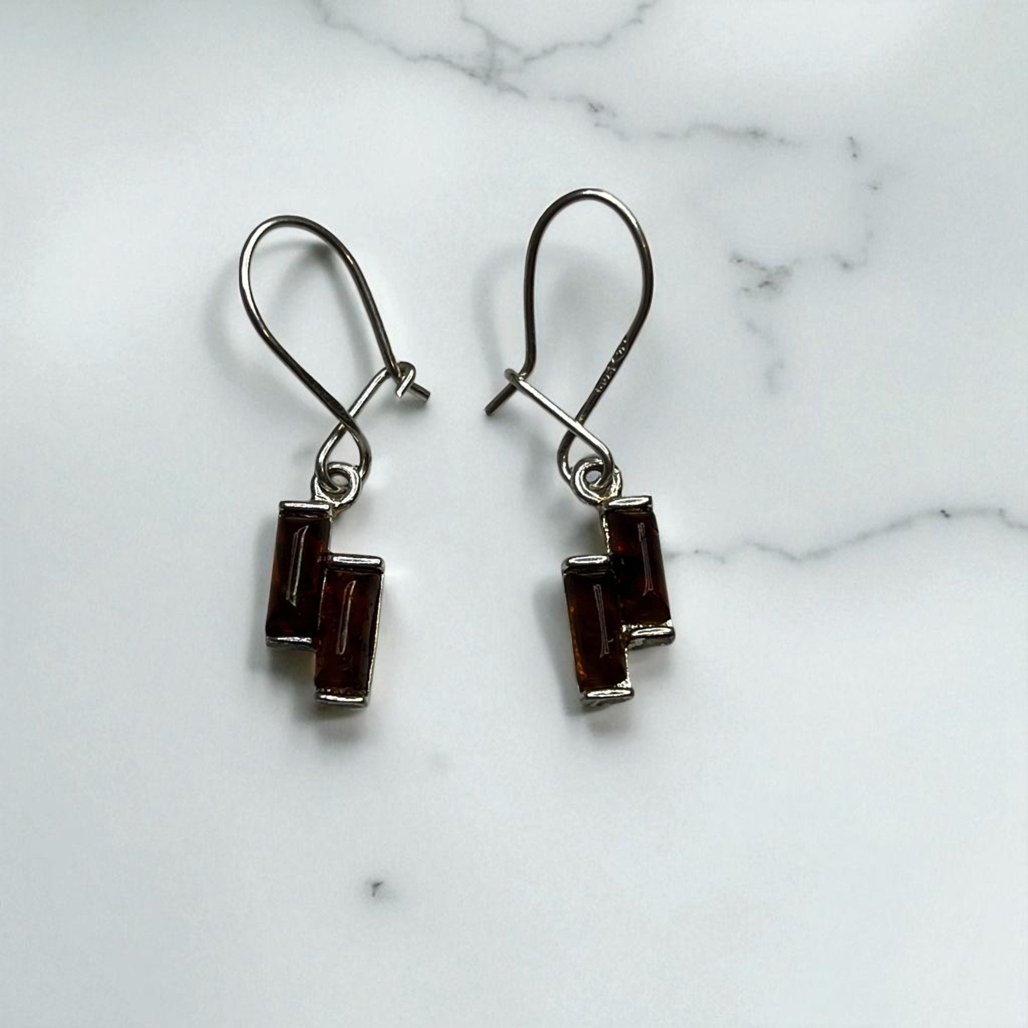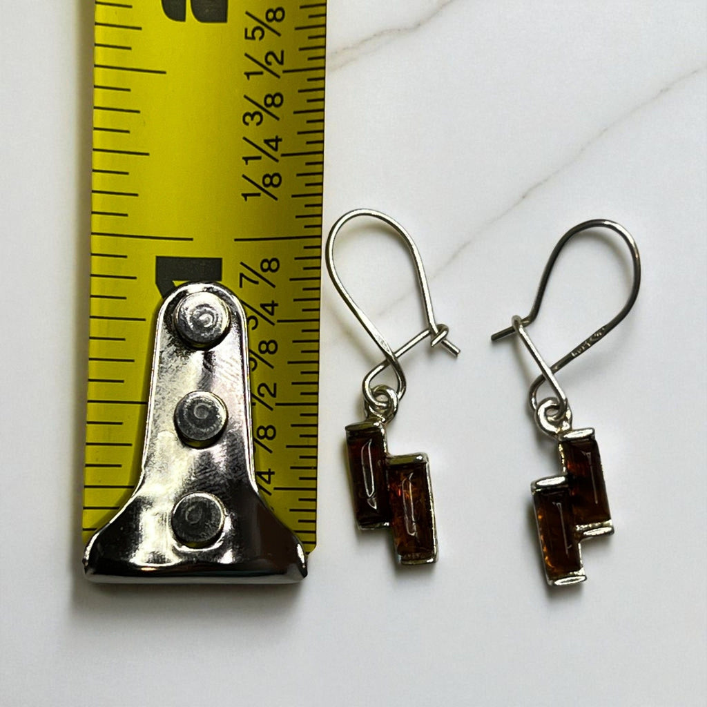 These sterling silver drop dangle earrings feature rich cognac amber stones. Lightweight and versatile, suitable for both casual and formal settings.