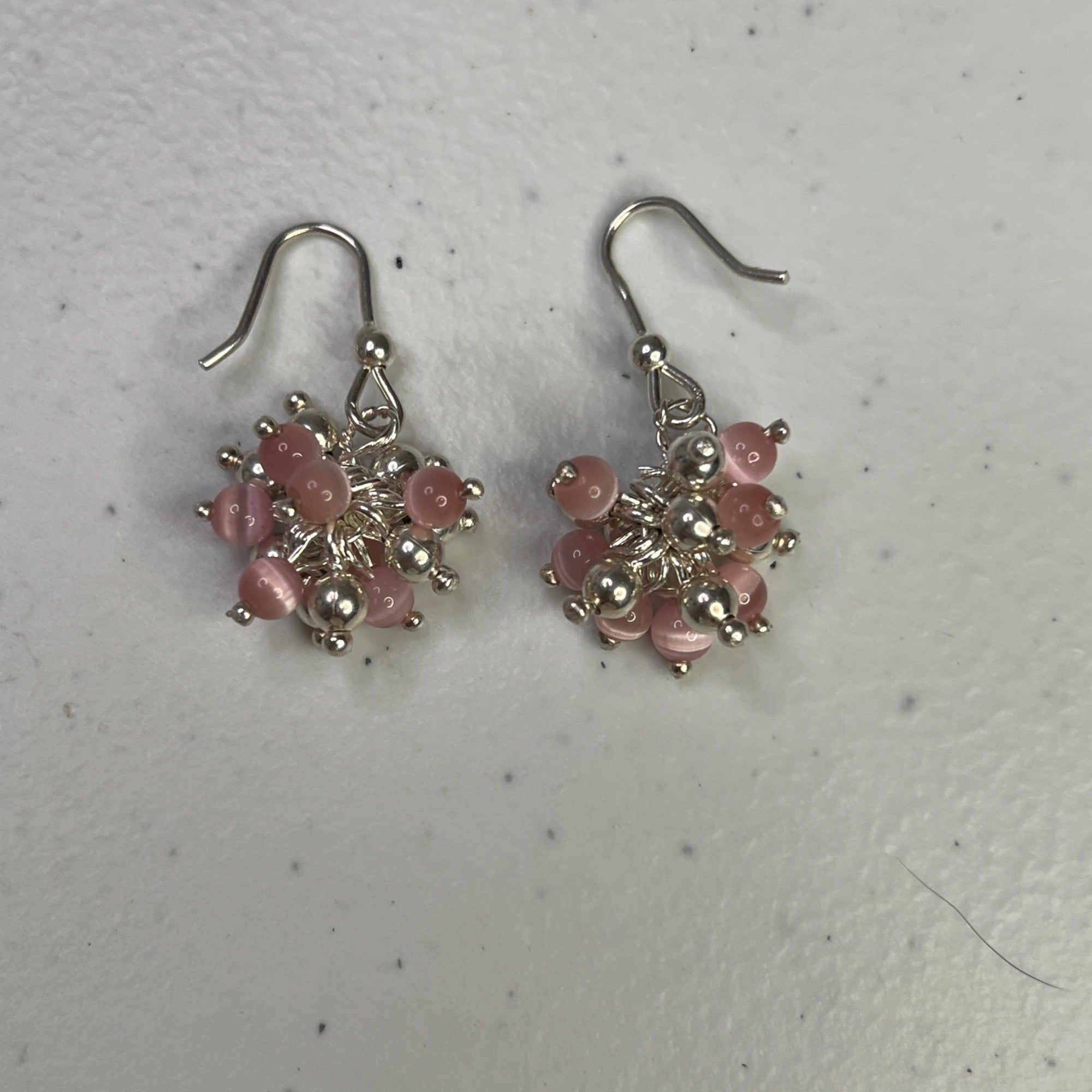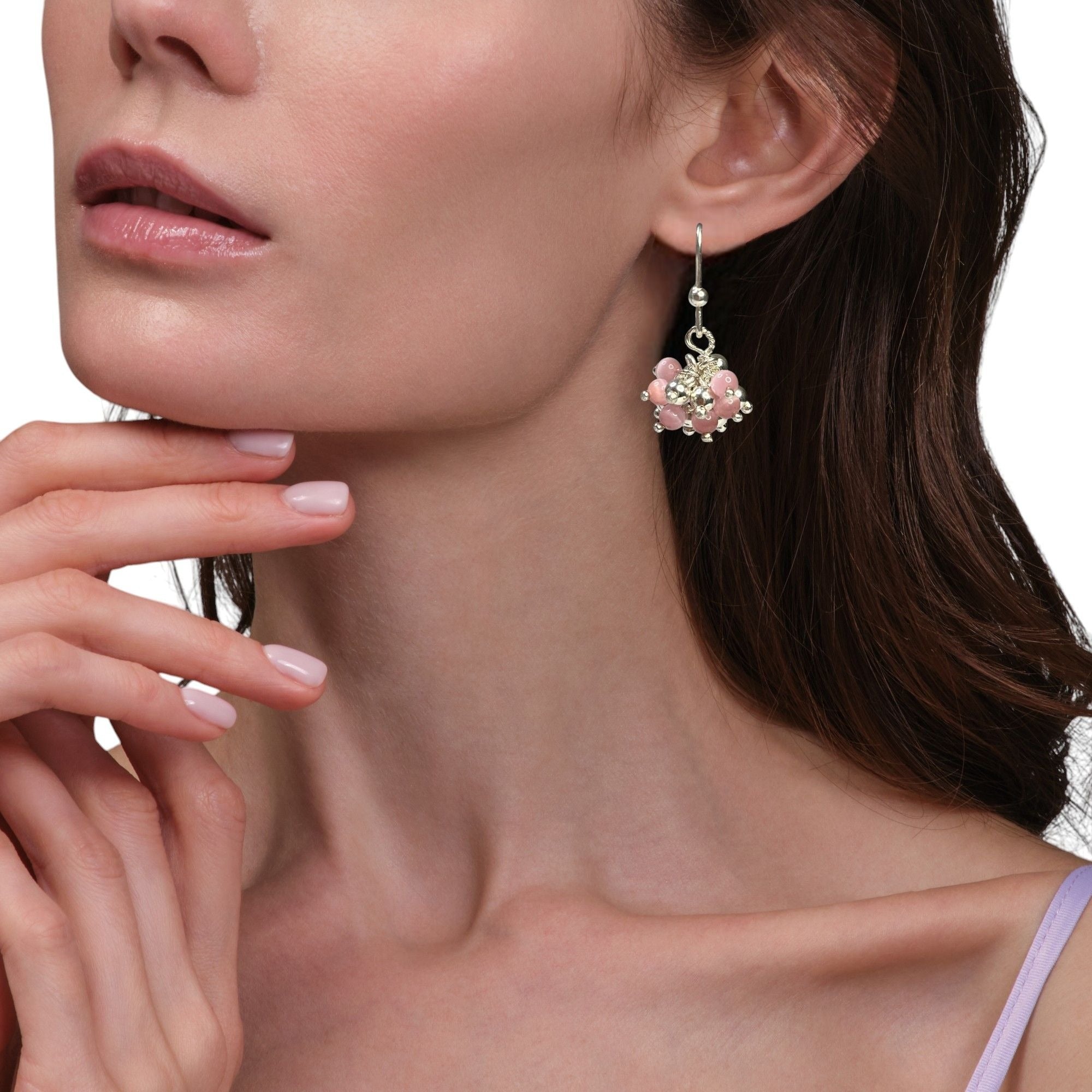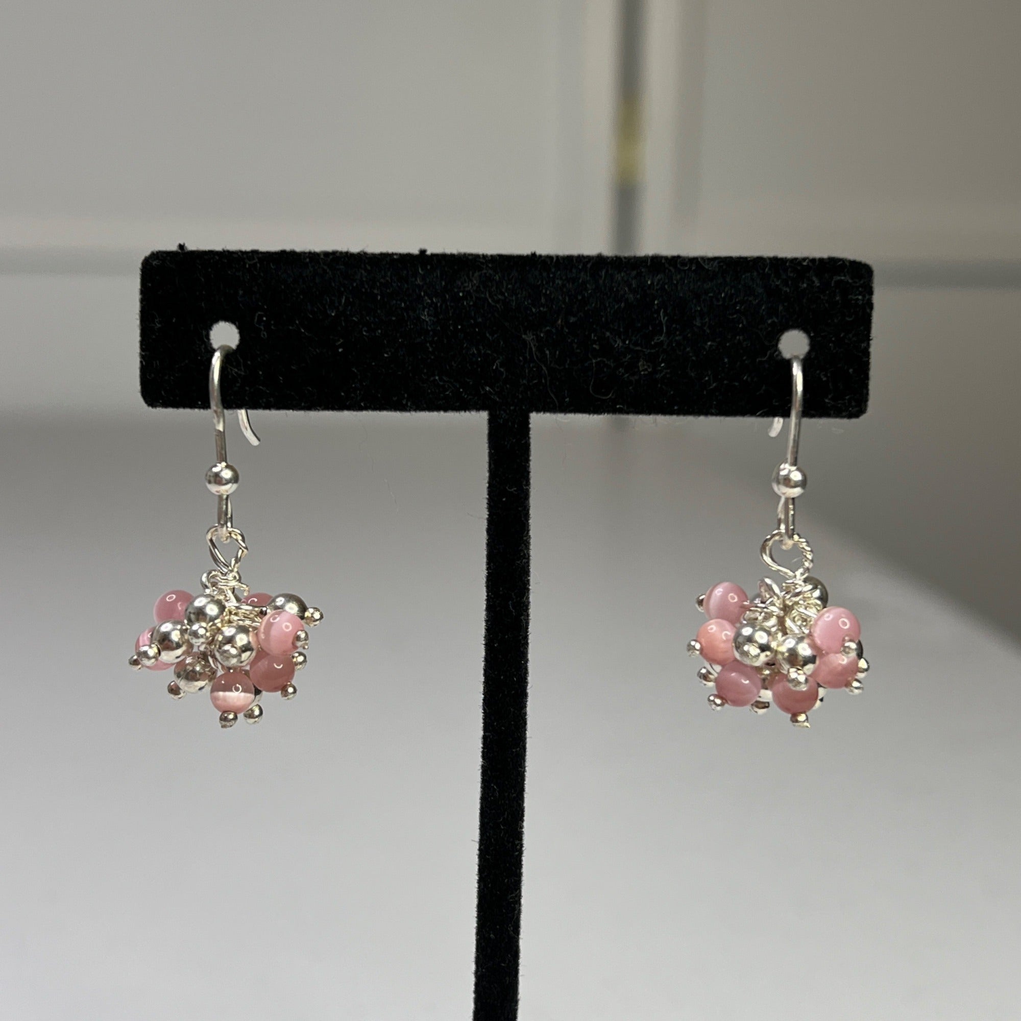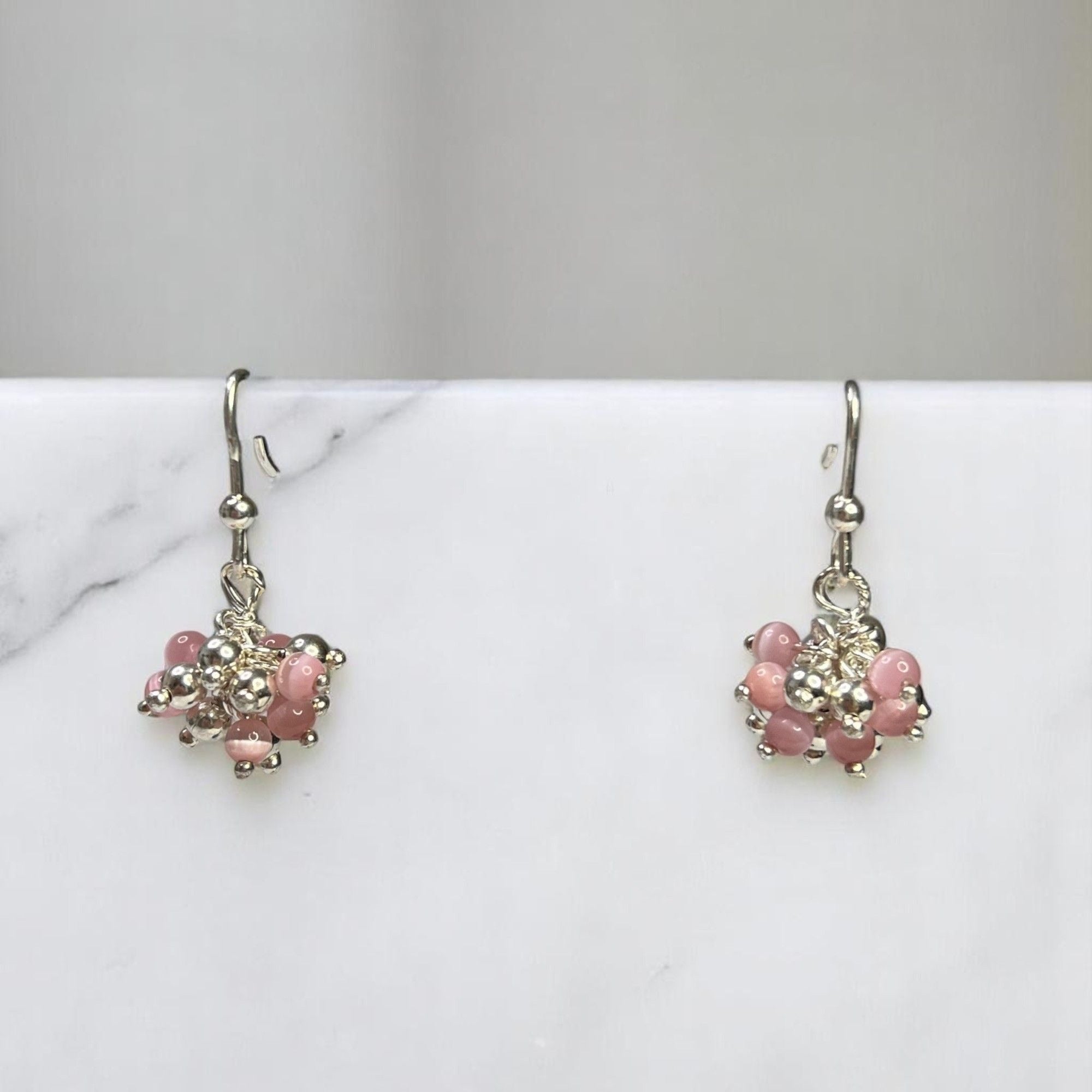 Elegant and lightweight earrings featuring pink beads and silver-tone embellishments, ideal for adding a touch of sophistication to your look.