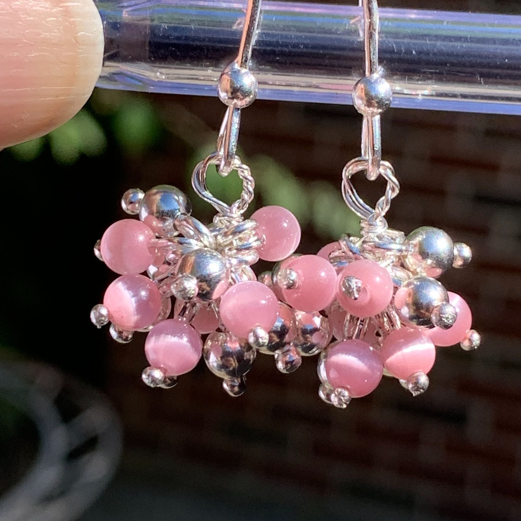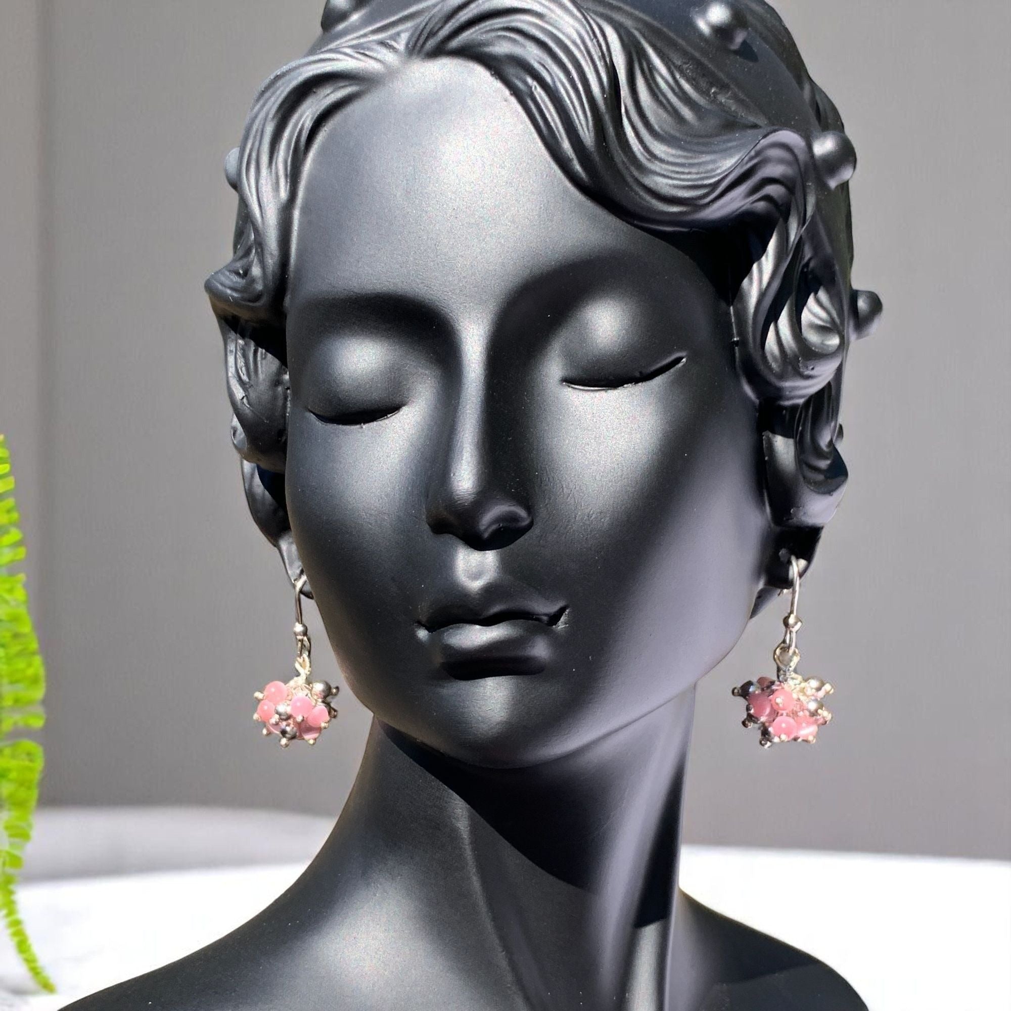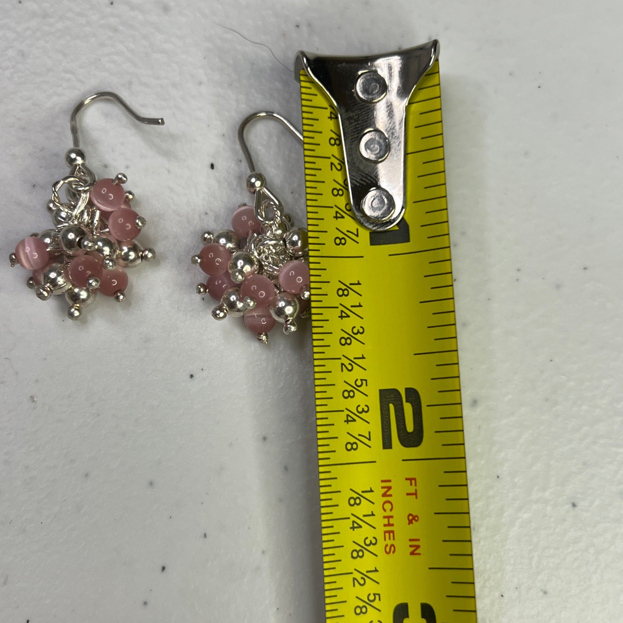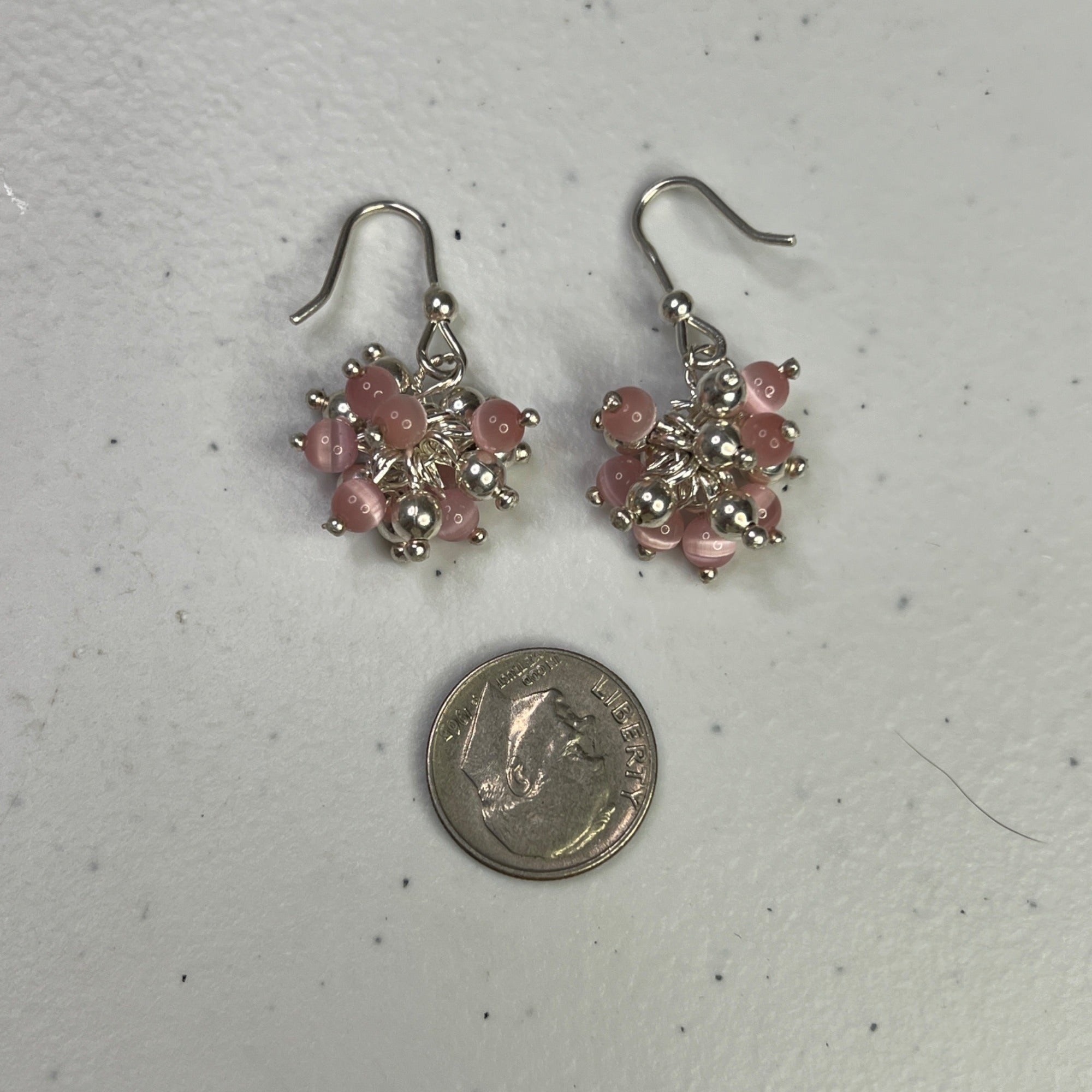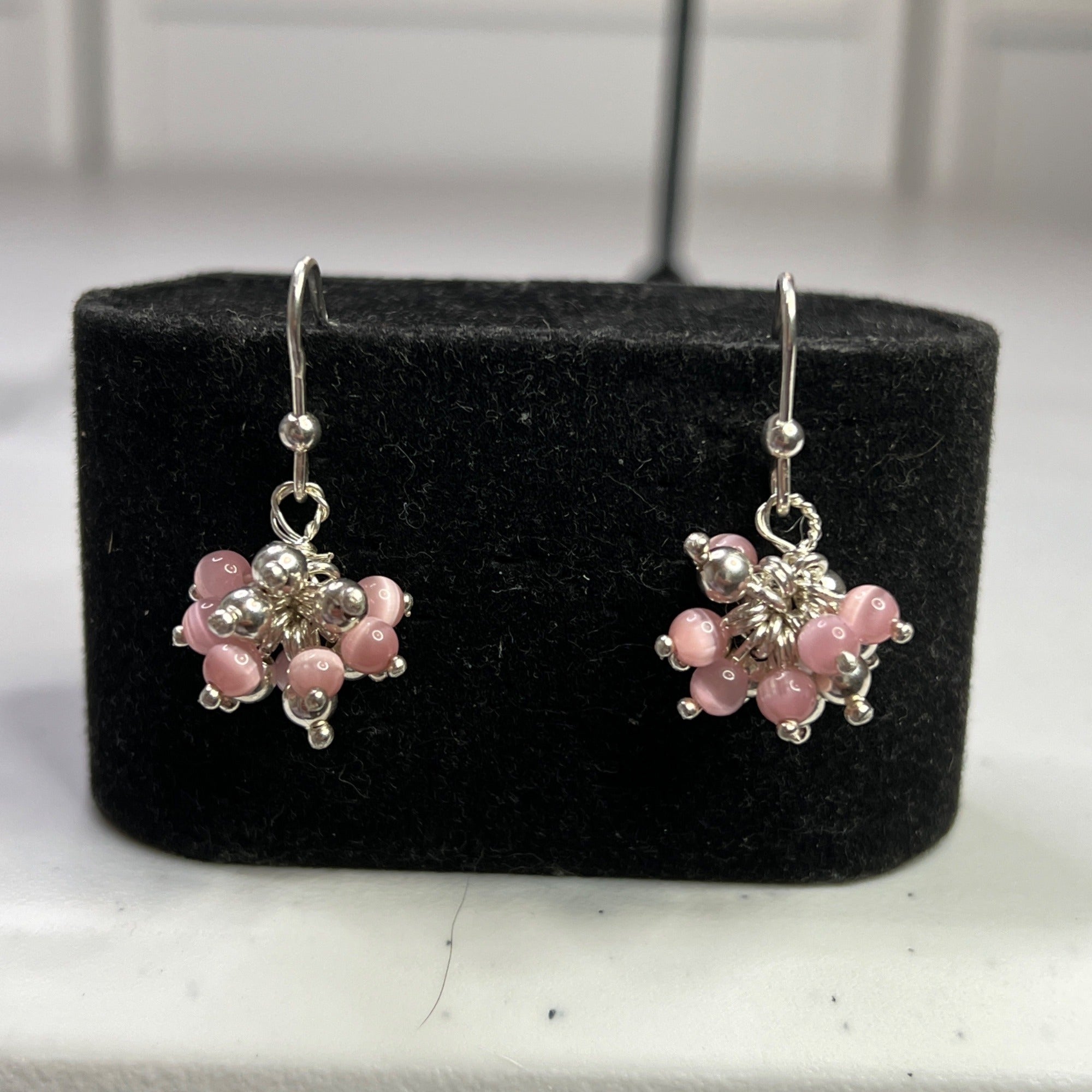 Elegant and lightweight earrings featuring pink beads and silver-tone embellishments, ideal for adding a touch of sophistication to your look.
