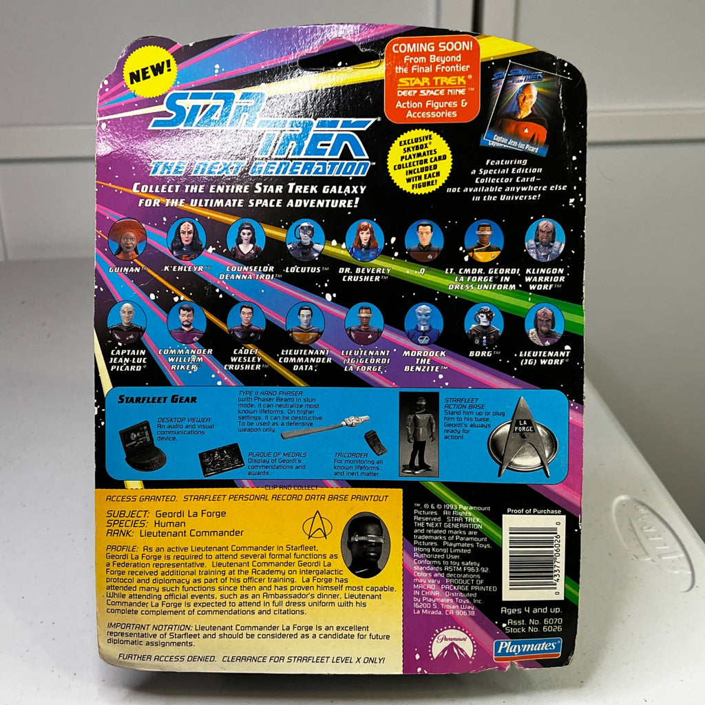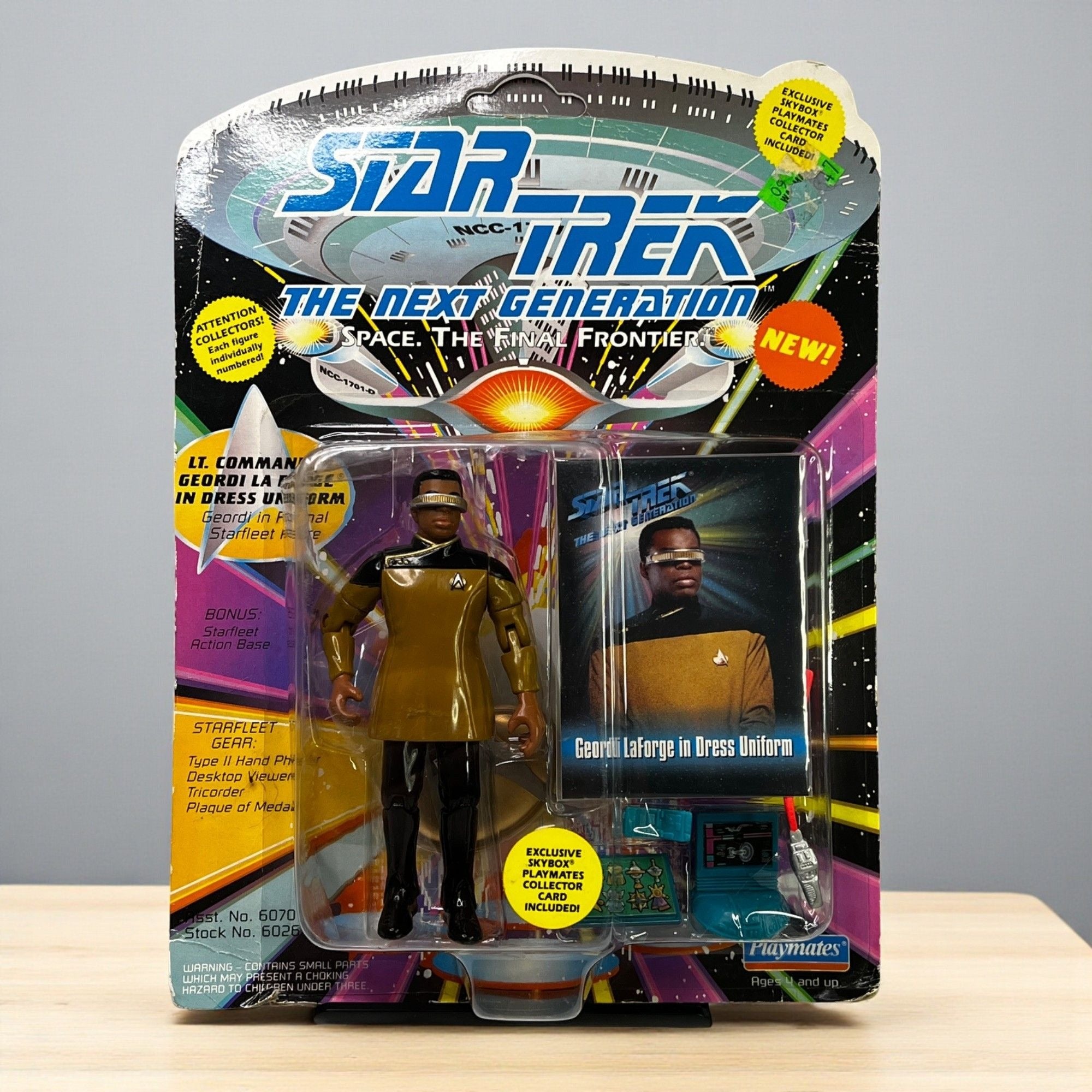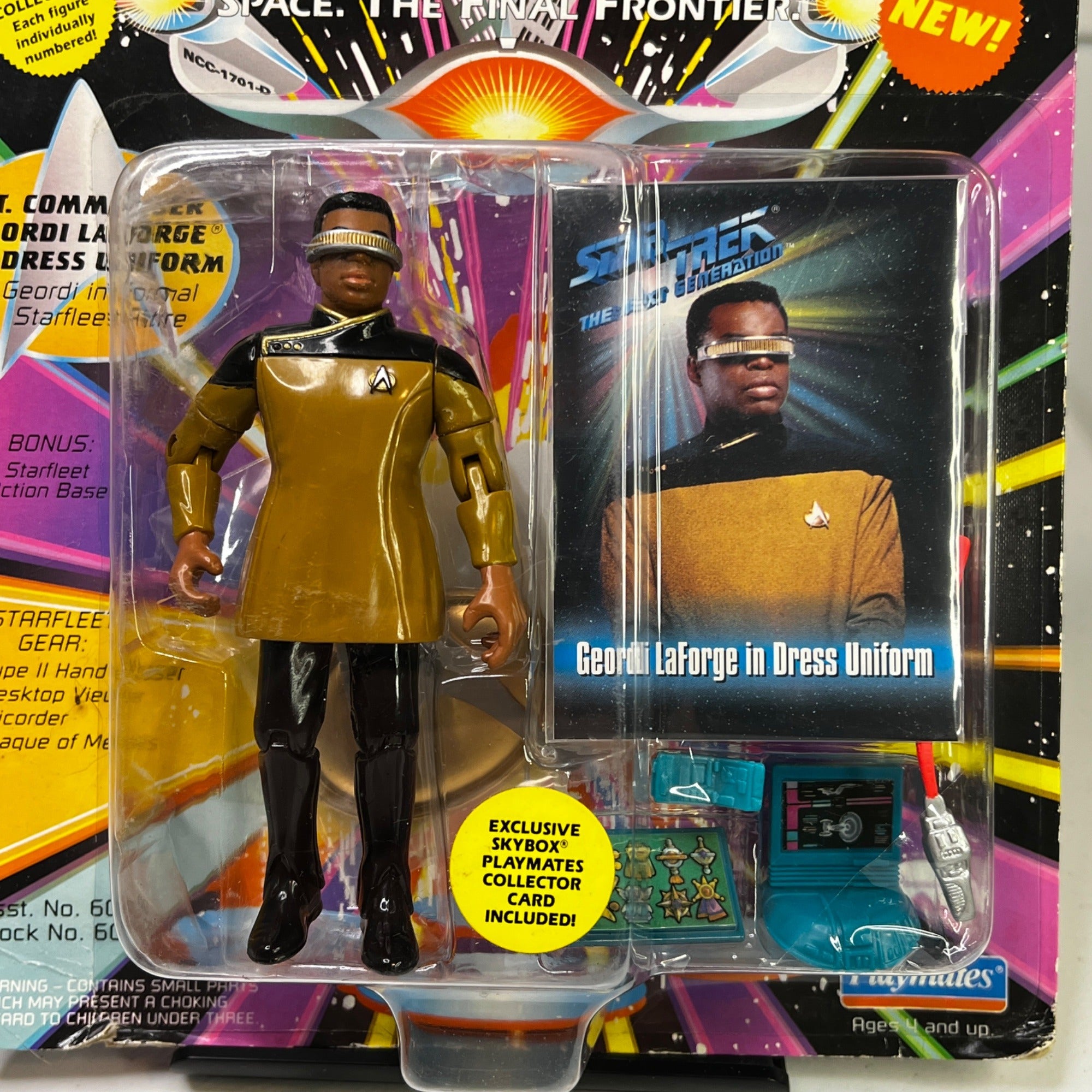 This collectible Geordi LaForge figure in dress uniform is a detailed representation from Star Trek: The Next Generation, ideal for fans and collectors.