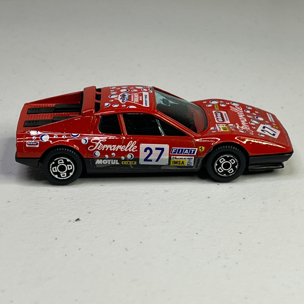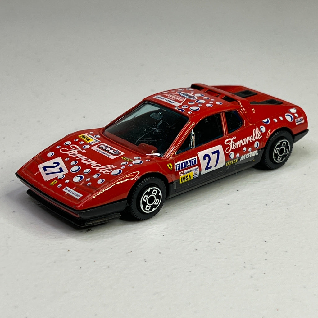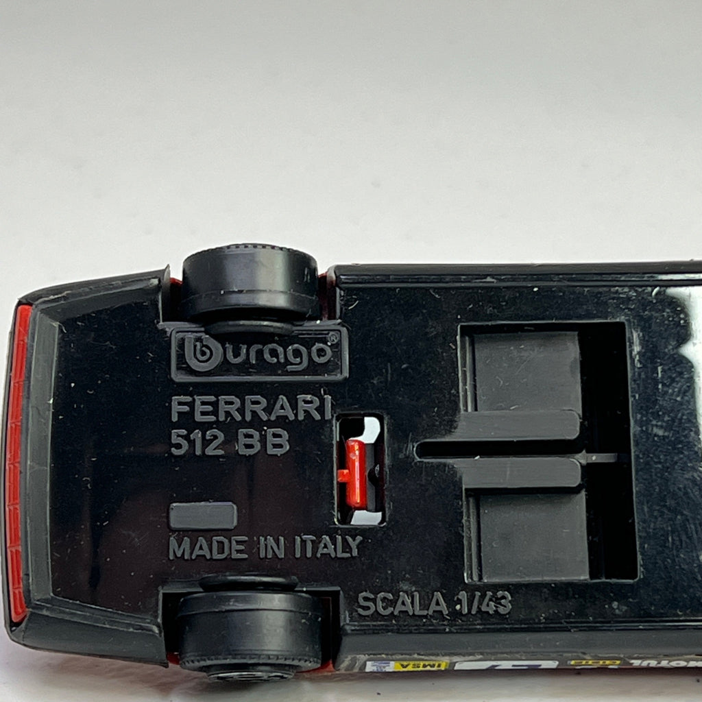 This 1/43 scale Bburago Ferrari 512 BB diecast model showcases precise detailing, capturing the essence of the Daytona racing design.