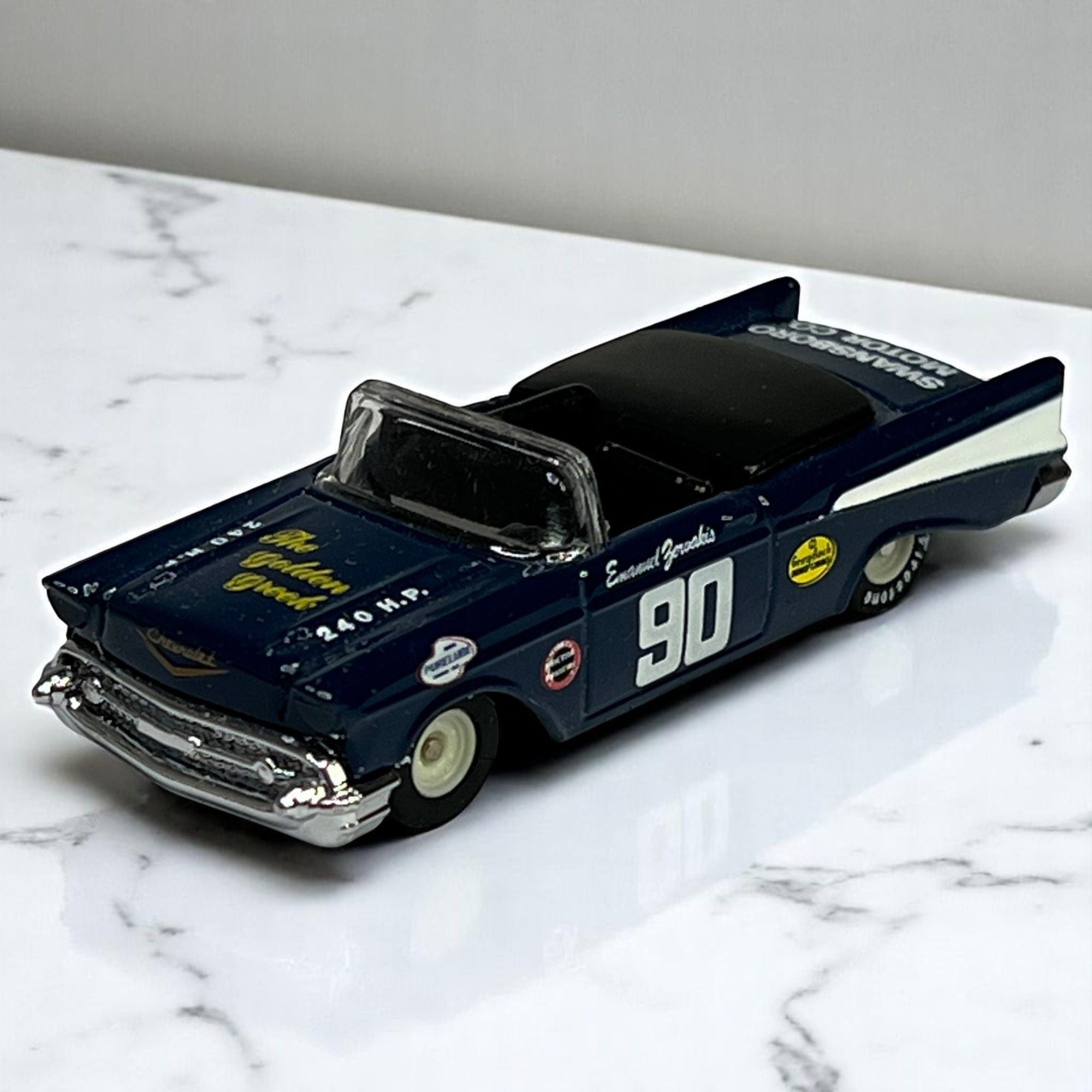 This diecast model of Emanuel Zervakis's #90 race car captures intricate details, showcasing classic design and vibrant decals. A valuable collector's piece.