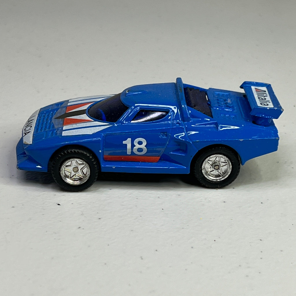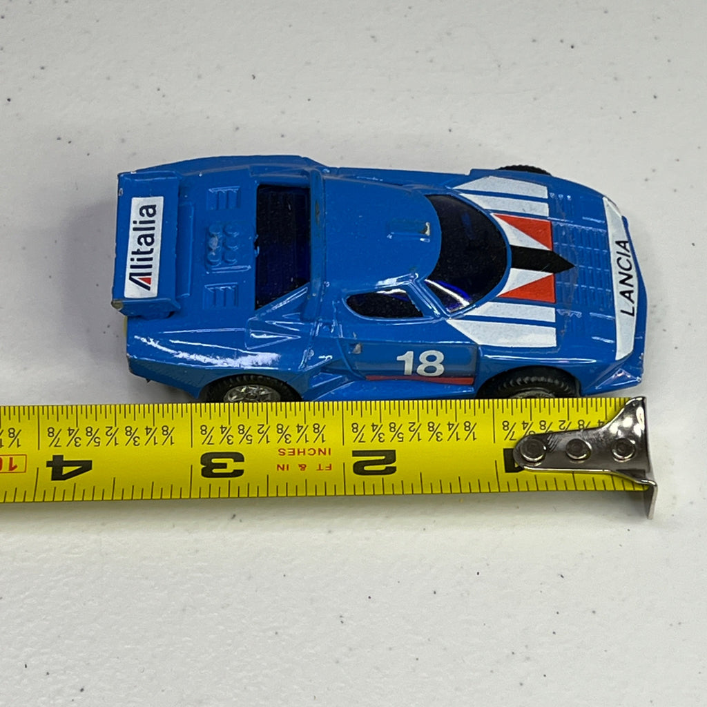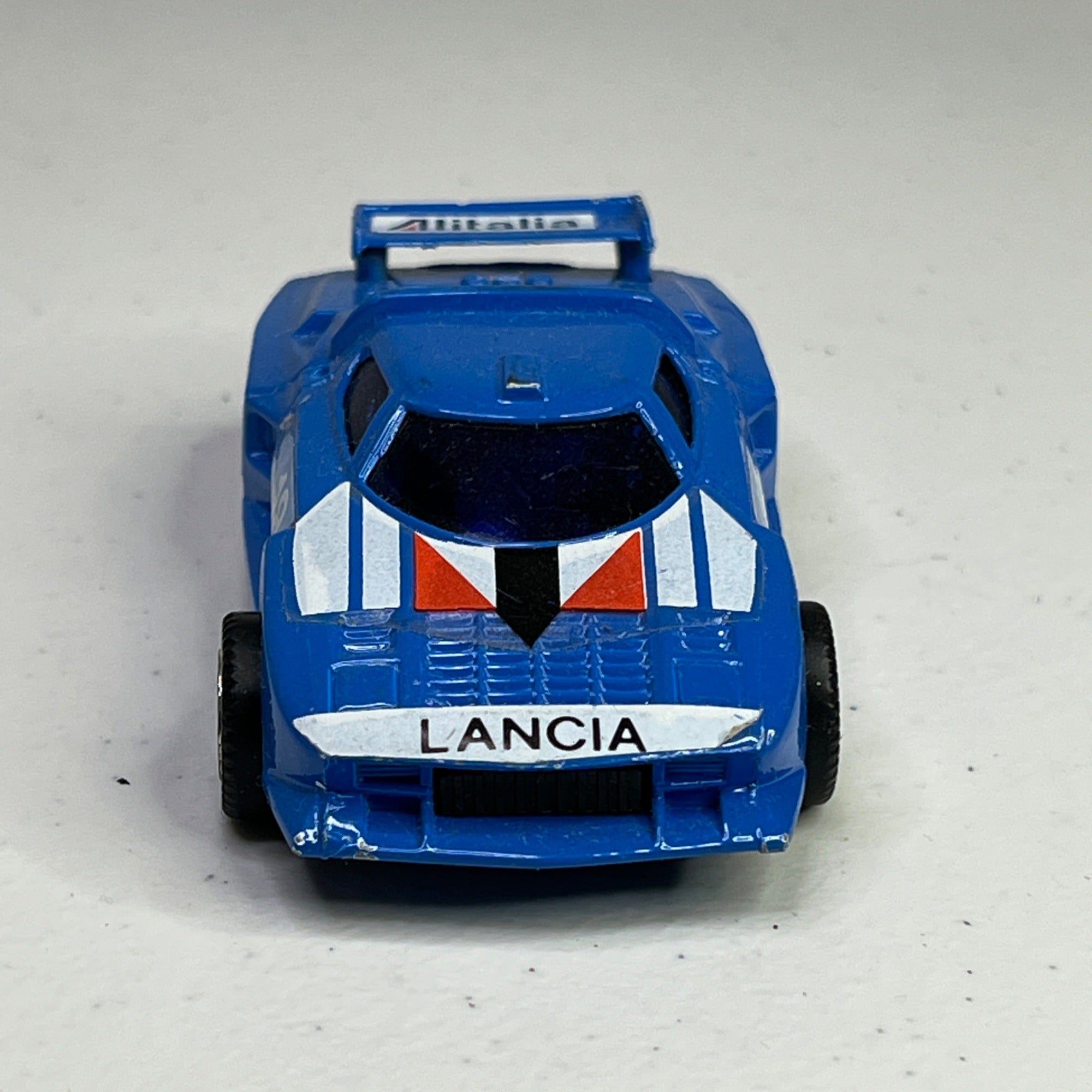 This detailed vintage model showcases the iconic Lancia Stratos in its rally car design. A collectible diecast in 1:45 scale, it represents 1980s automotive history.