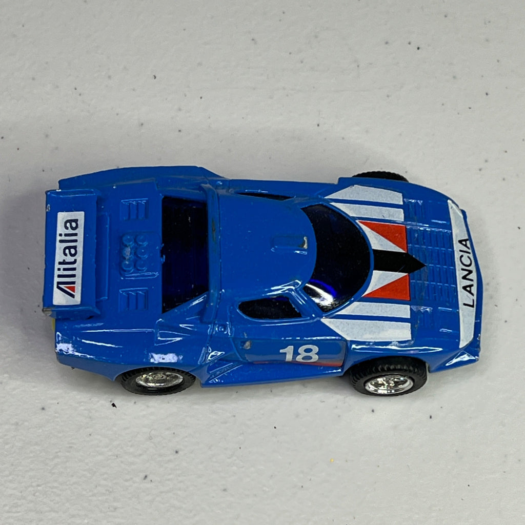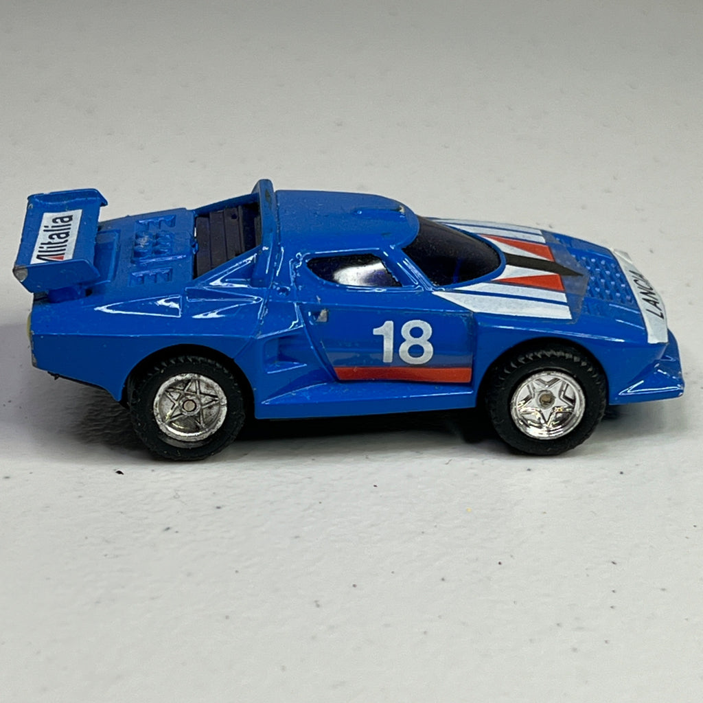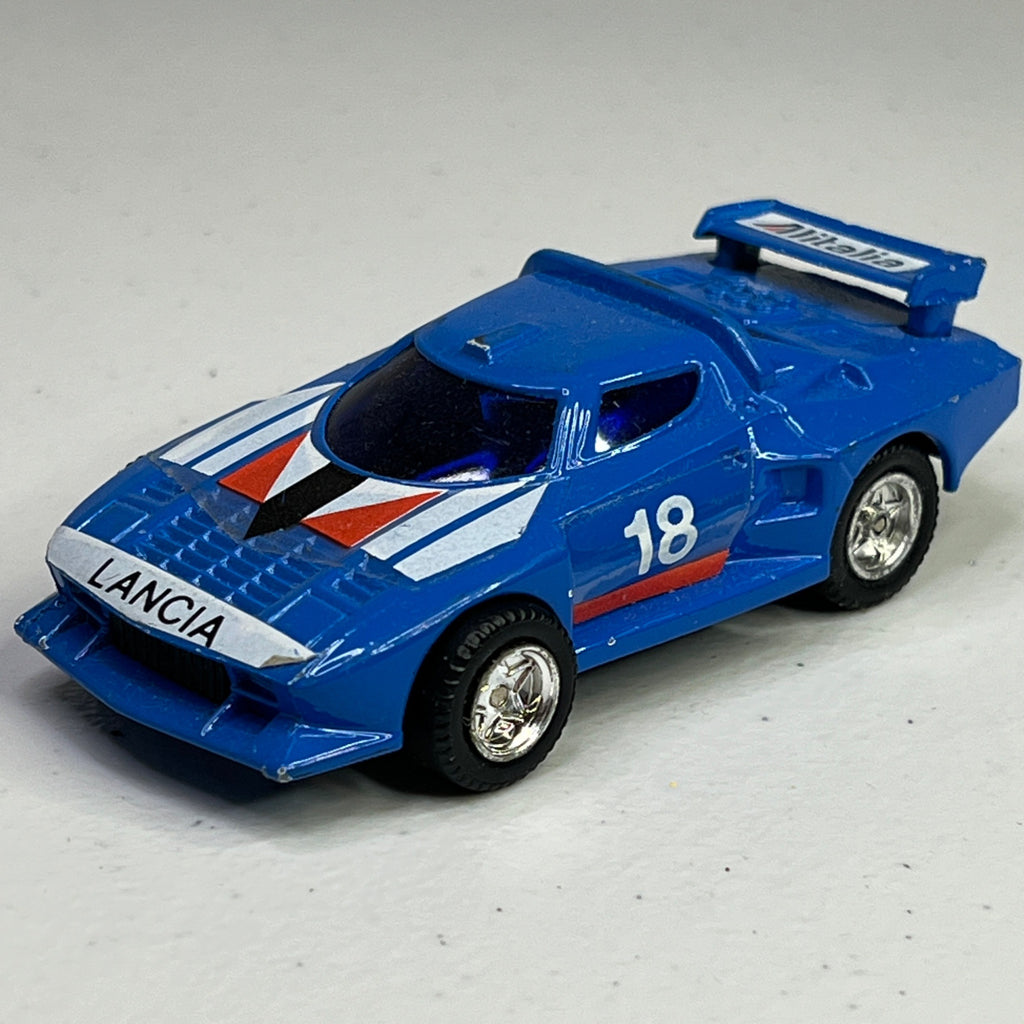 This detailed vintage model showcases the iconic Lancia Stratos in its rally car design. A collectible diecast in 1:45 scale, it represents 1980s automotive history.