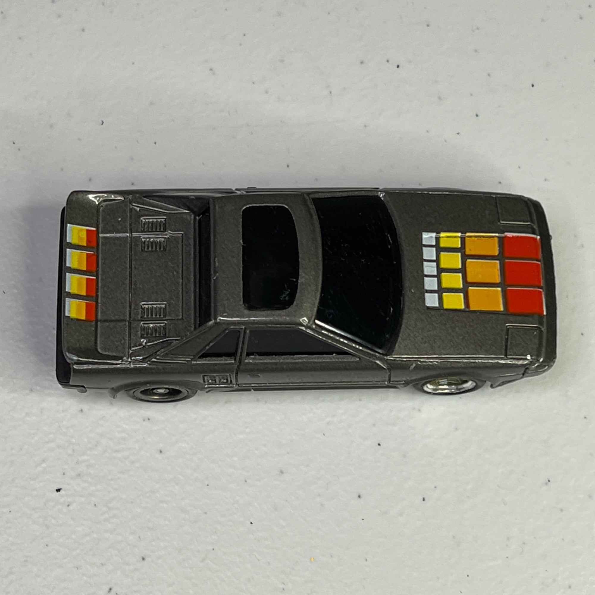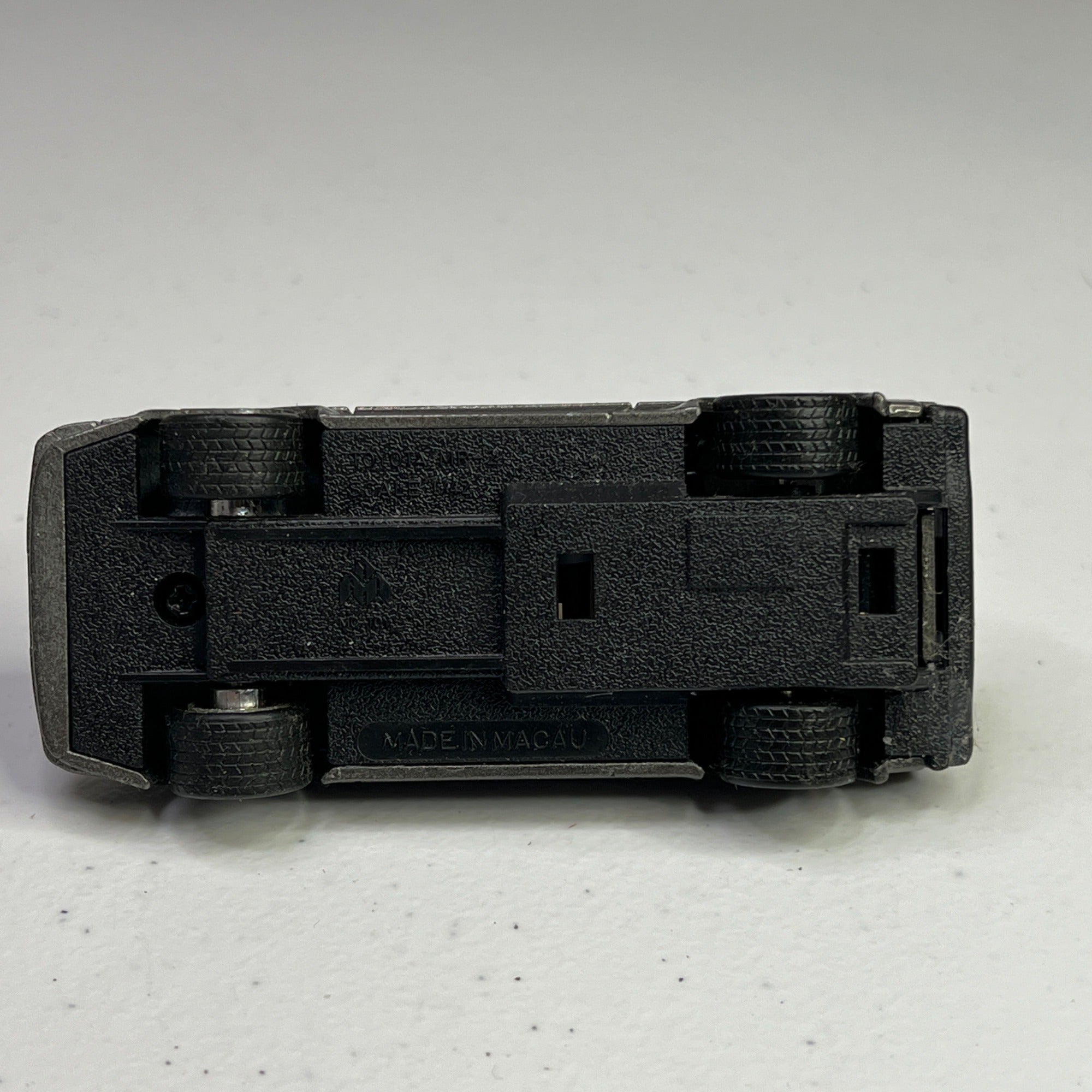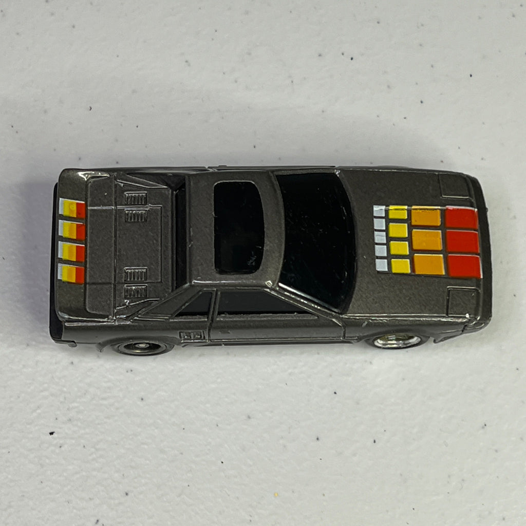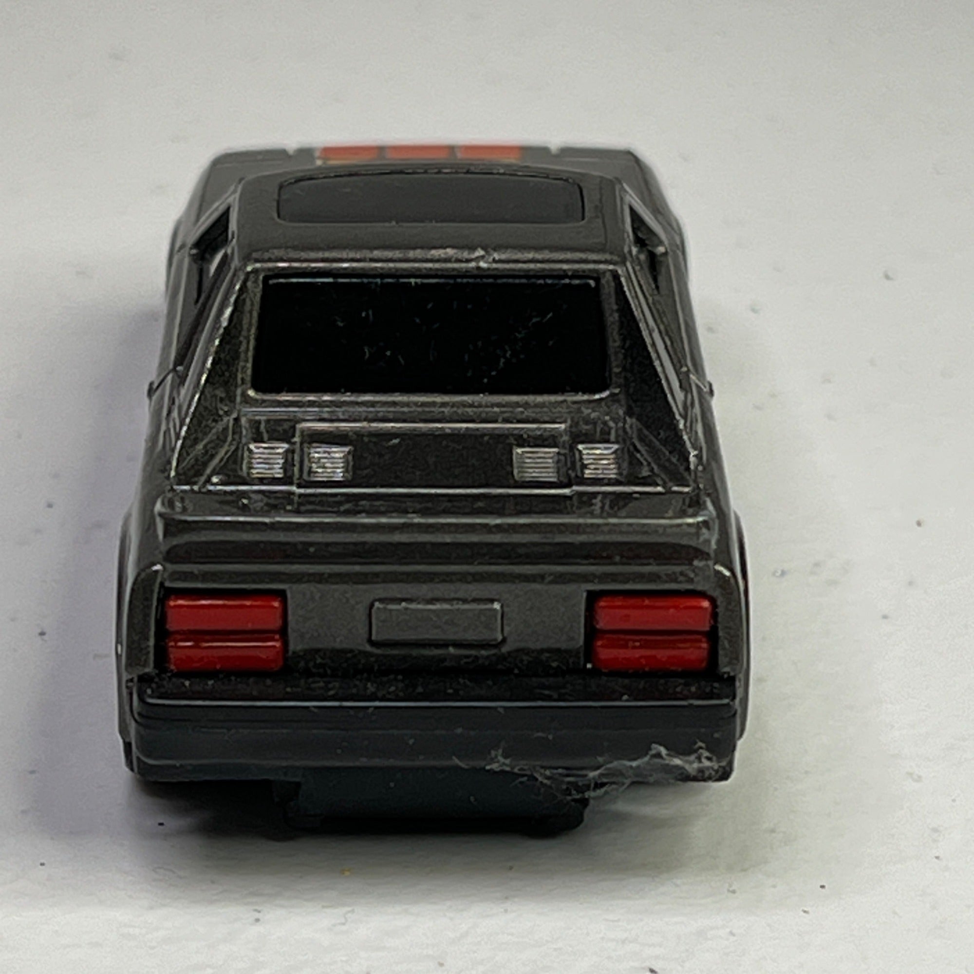 This vintage collectible 1/42 scale diecast Toyota MR2 Turbo by MC Toy showcases intricate detailing, vibrant graphic accents, and a durable grey finish.