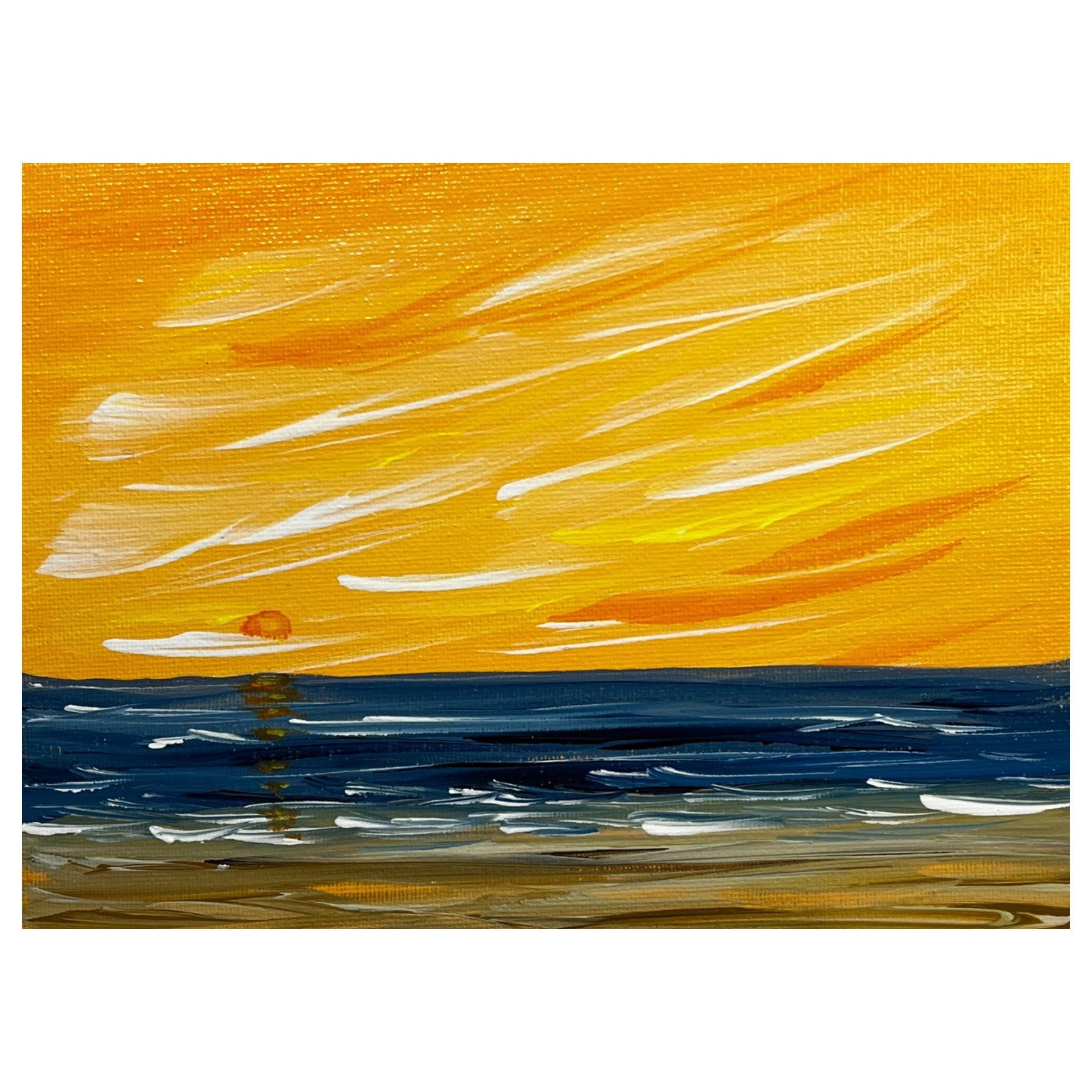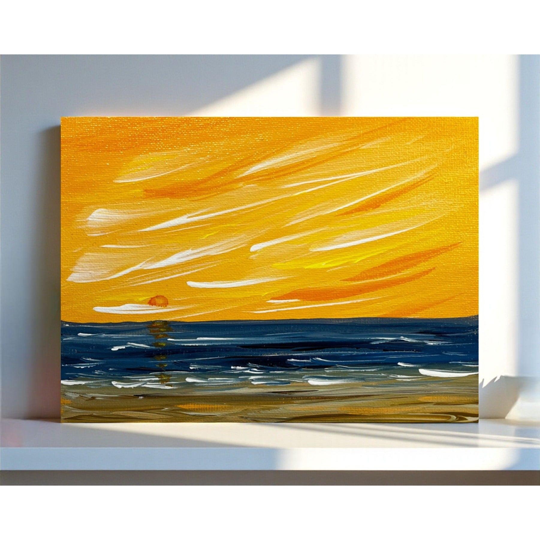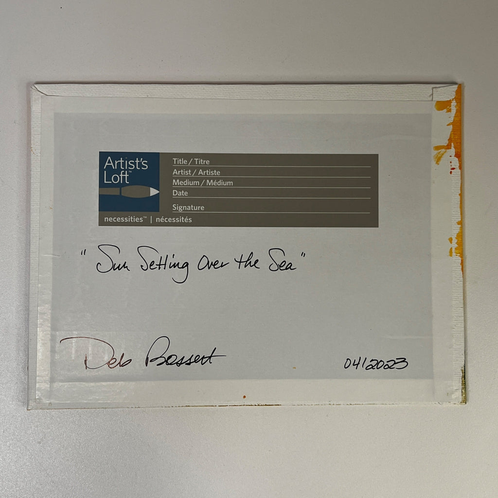 This seascape captures a vibrant sunset with a serene ocean setting. The artwork is signed by artist Deb Bossert, enhancing its appeal for collectors. The radiant colors and dynamic brushstrokes bring a calming yet lively atmosphere to any space, offering a touch of tranquility and artistic elegance.