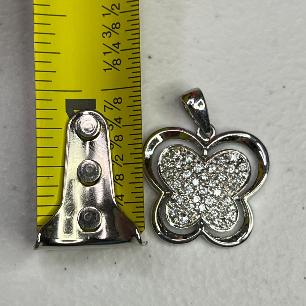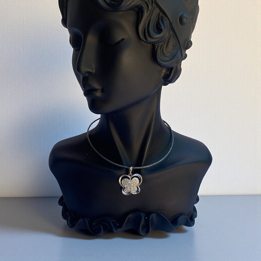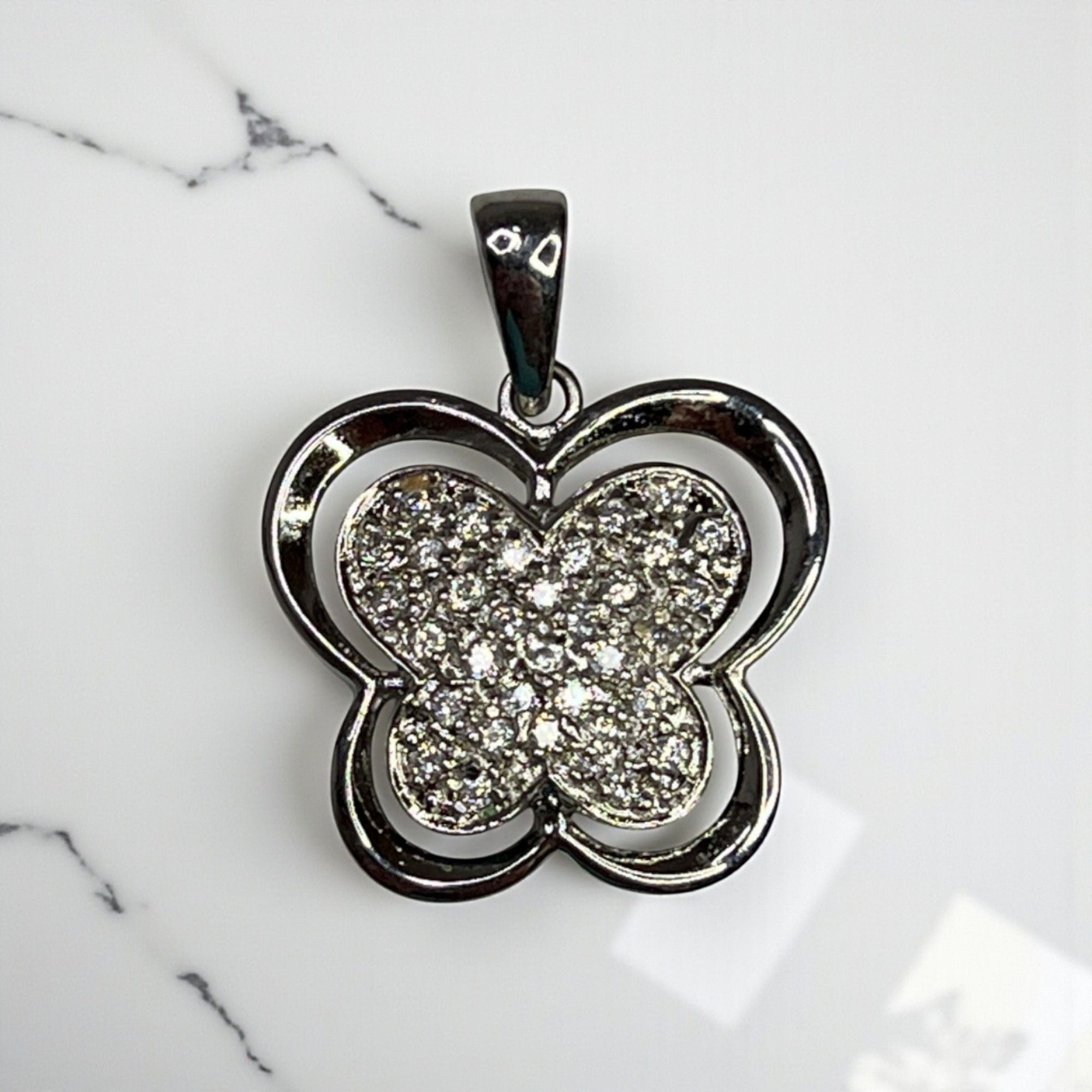 This elegant butterfly-shaped pendant features dazzling crystal accents set in a silver-tone finish. It adds a touch of sparkle to your ensemble, embodying sophistication and style. Ideal for special occasions or as an everyday accessory, this pendant enhances your look with its shimmering elegance.