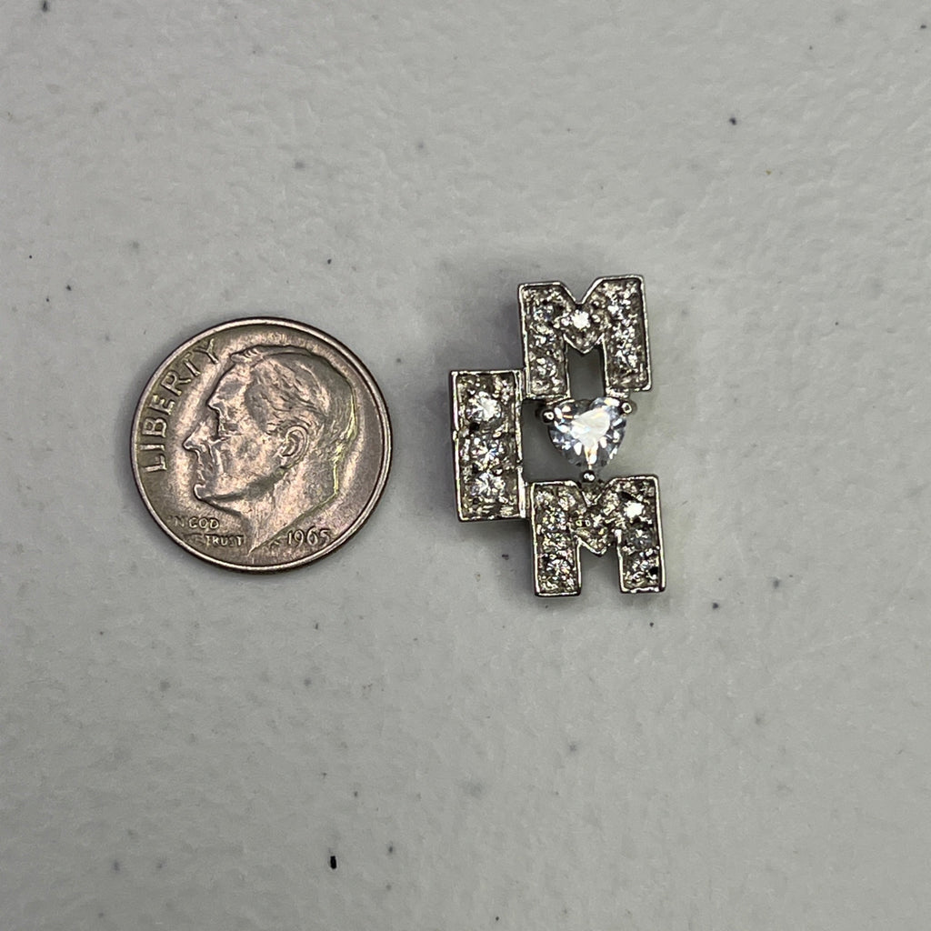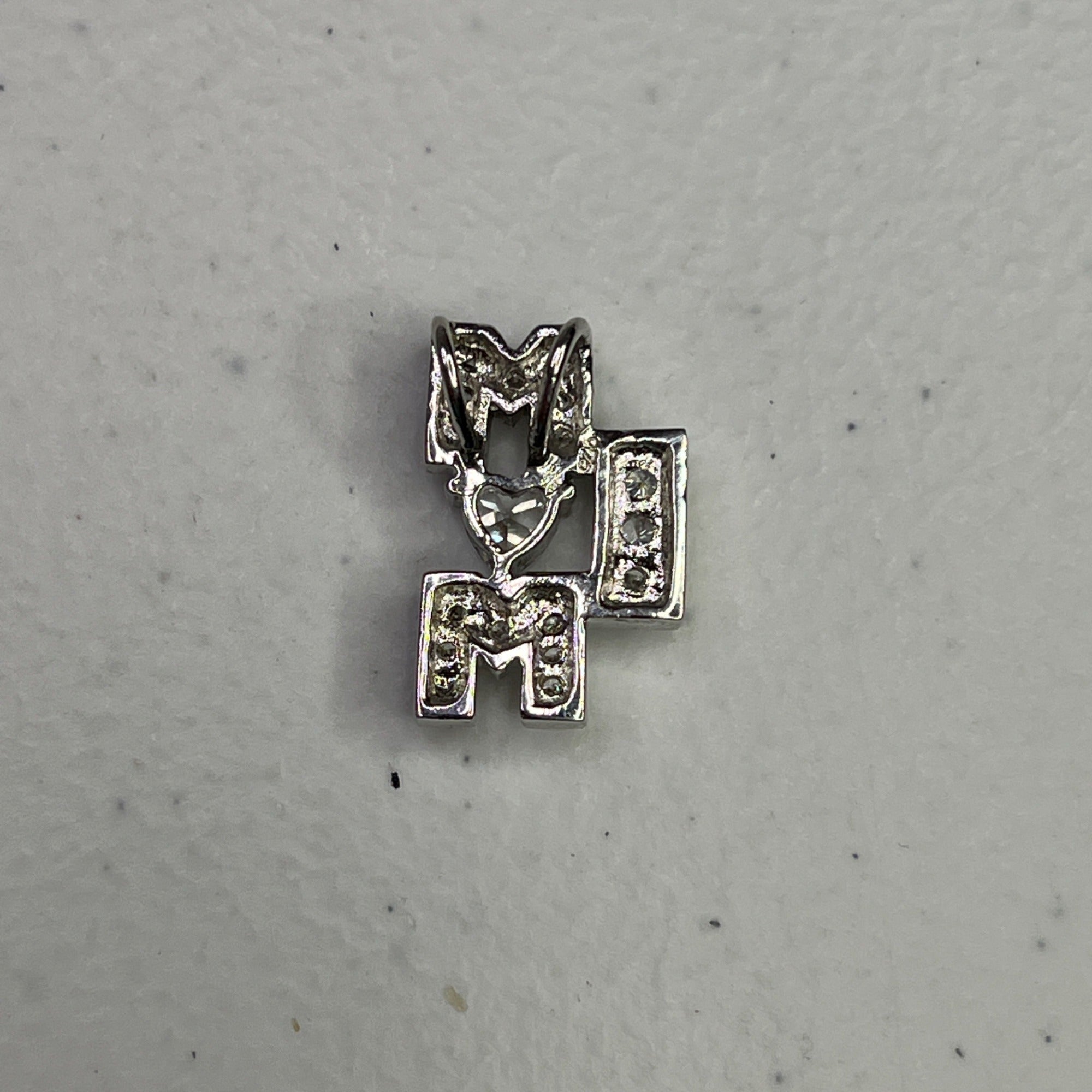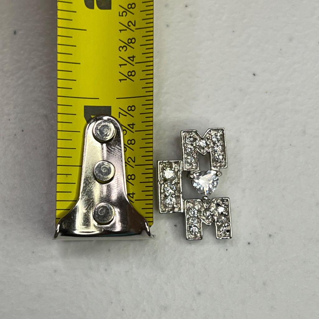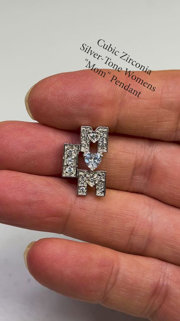 This silver-tone "MOM" pendant features cubic zirconia accents, offering a sparkling and timeless design. Ideal for gifting or as a meaningful accessory.