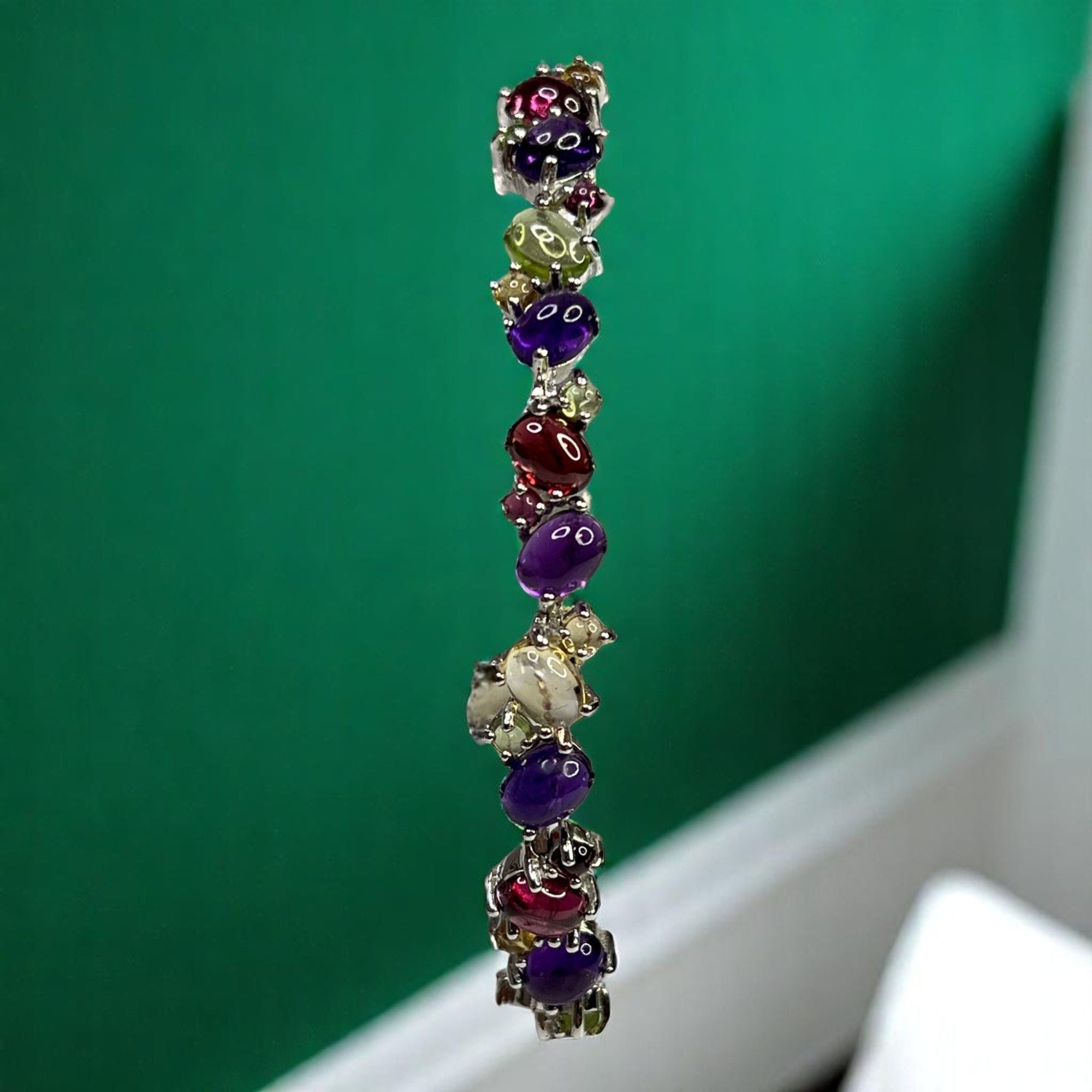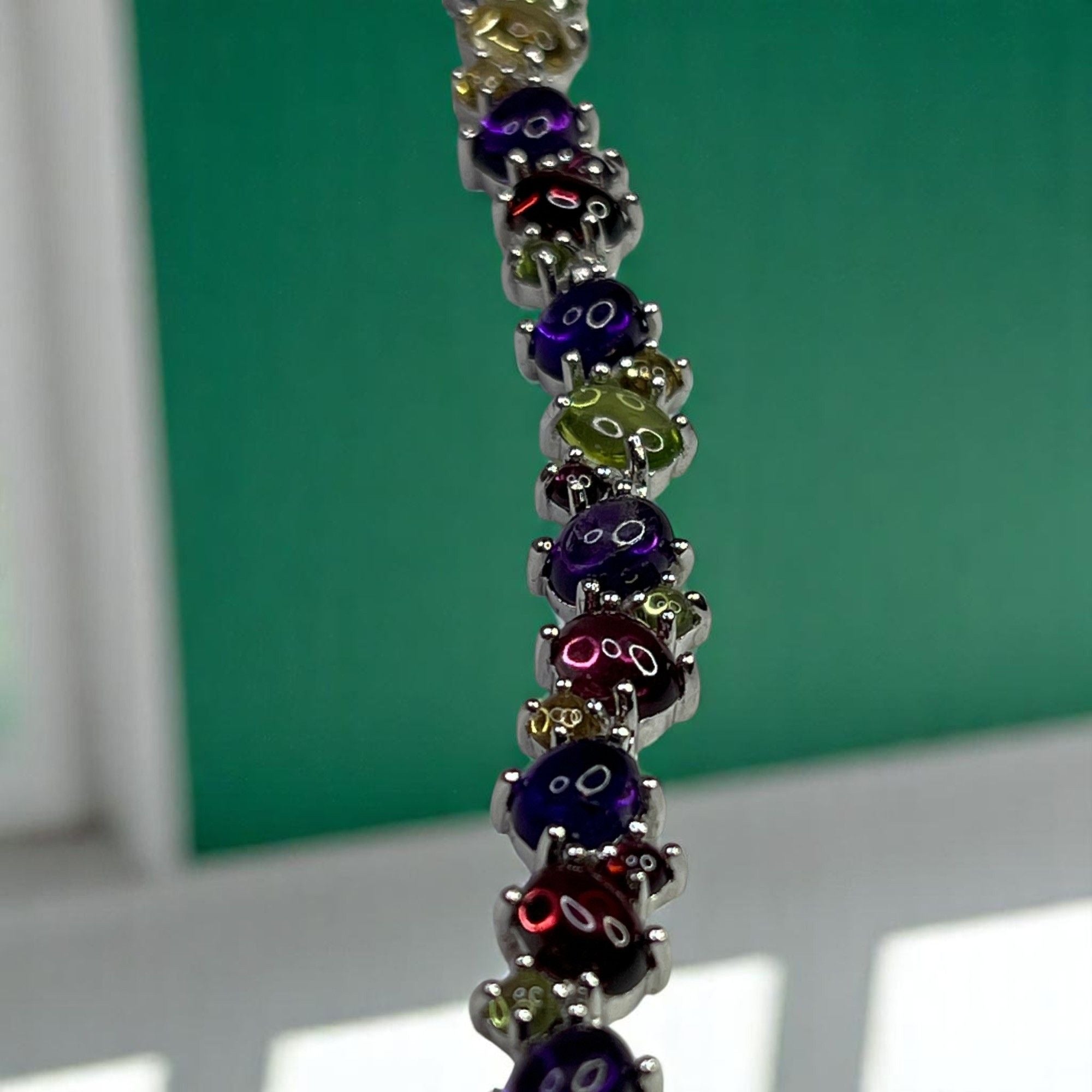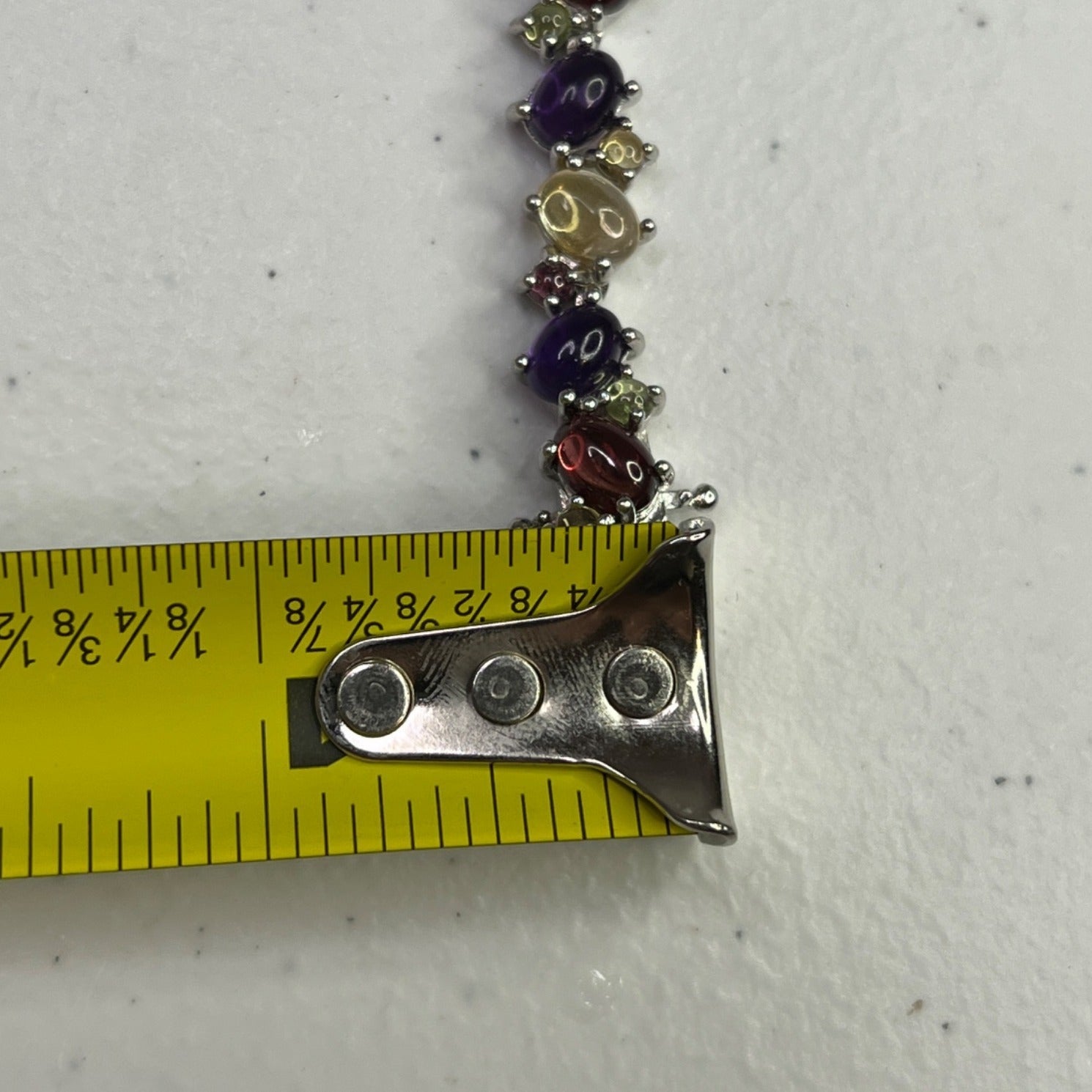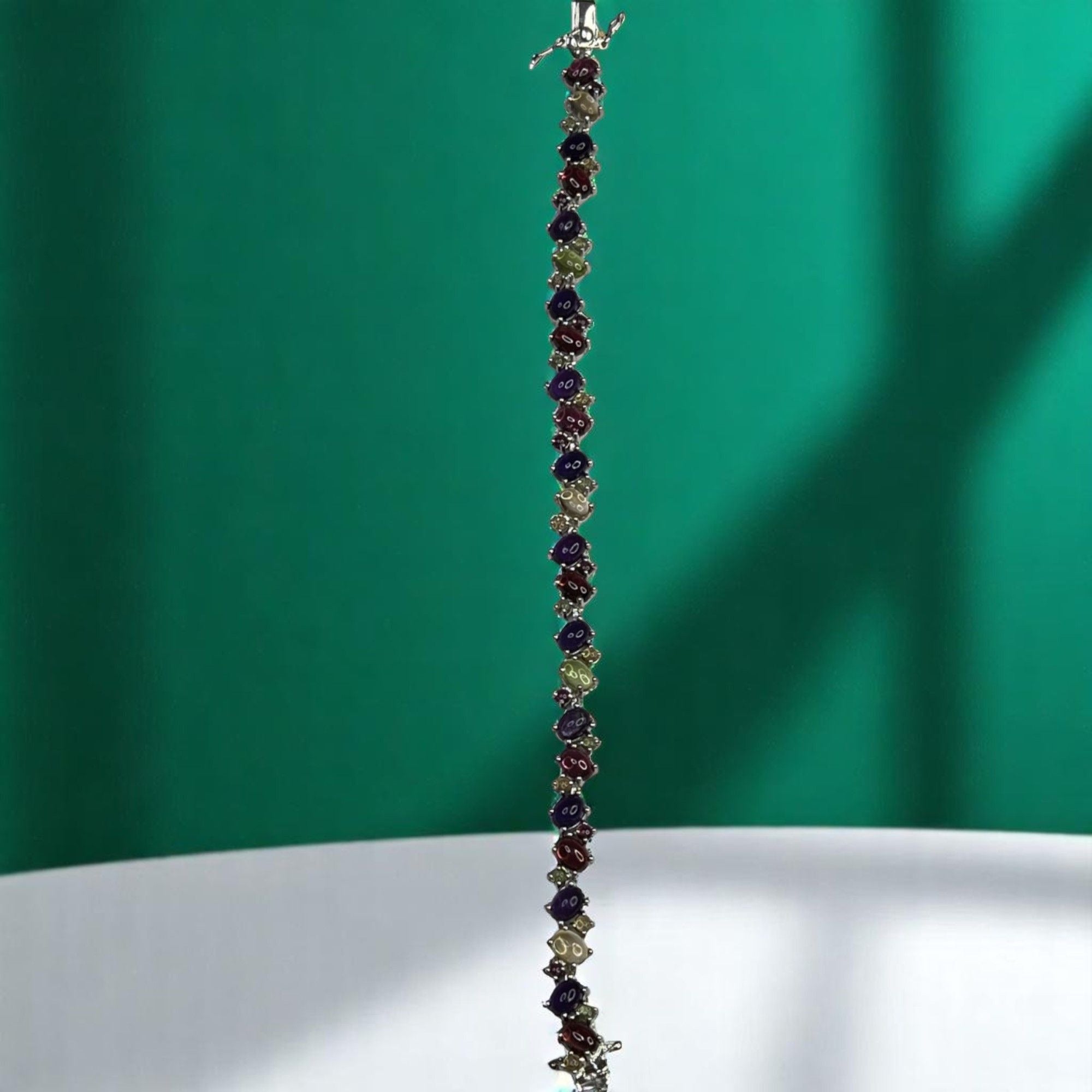 This timeless bracelet features sterling silver and vibrant multicolor cabochon stones with small cubic zirconia accents to add a little sparkle to the beautiful bracelet. A sophisticated accessory suited for formal or professional settings.