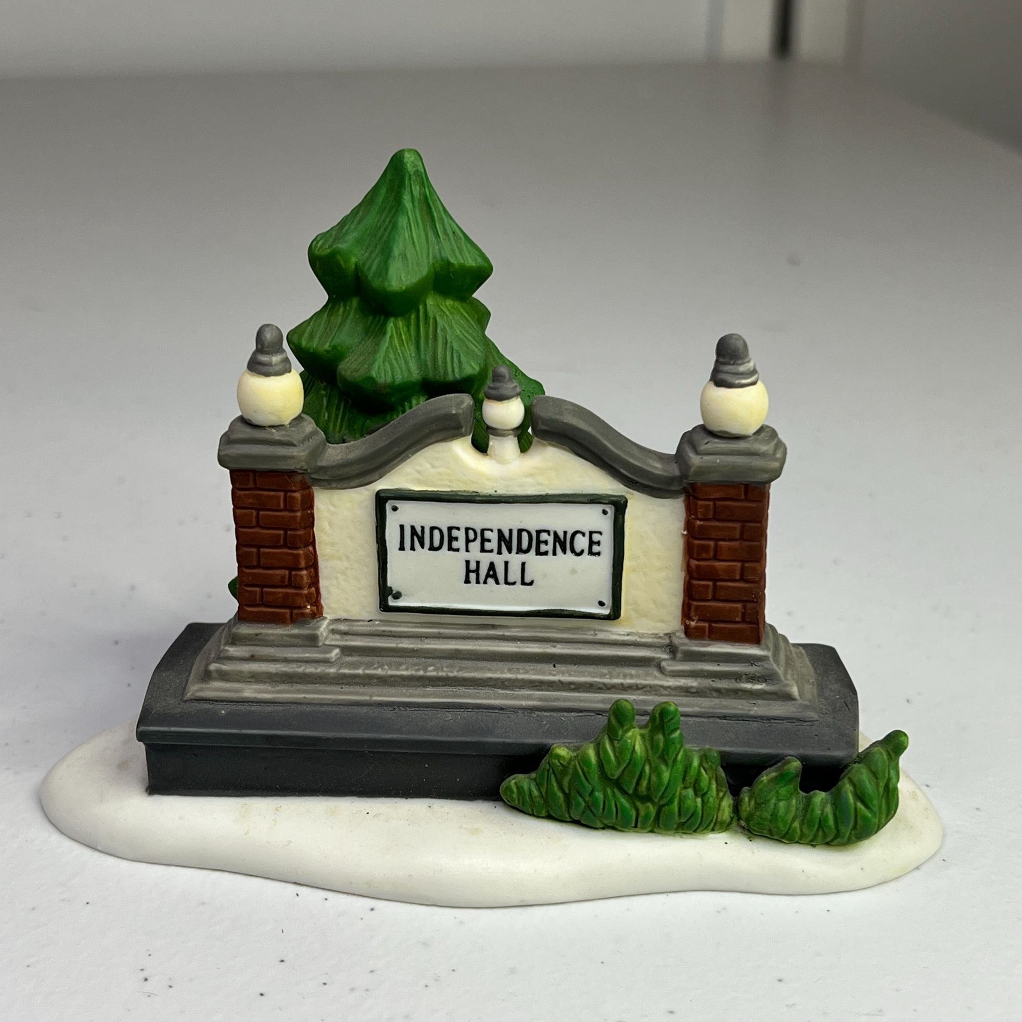 Department 56 Independence Hall, Heritage Village Landmark Series loose figurine from 1988. Very beautiful hand-painted porcelain figurine. This is the sign that originally came with the set. Loose figurine only - This is not the complete set and includes only 1 figurine from the set. No box is included, only the figurine.