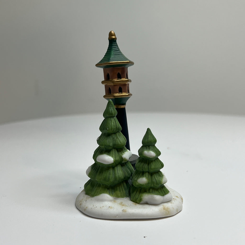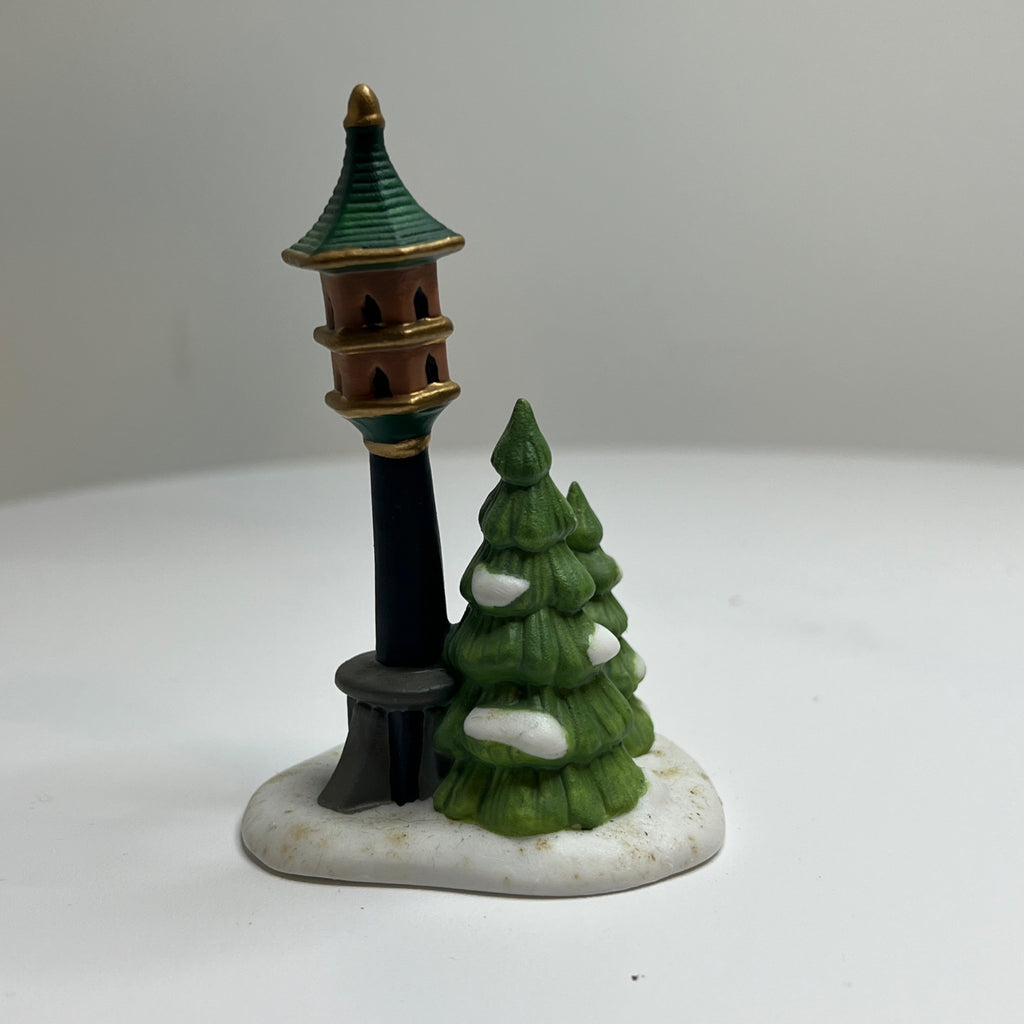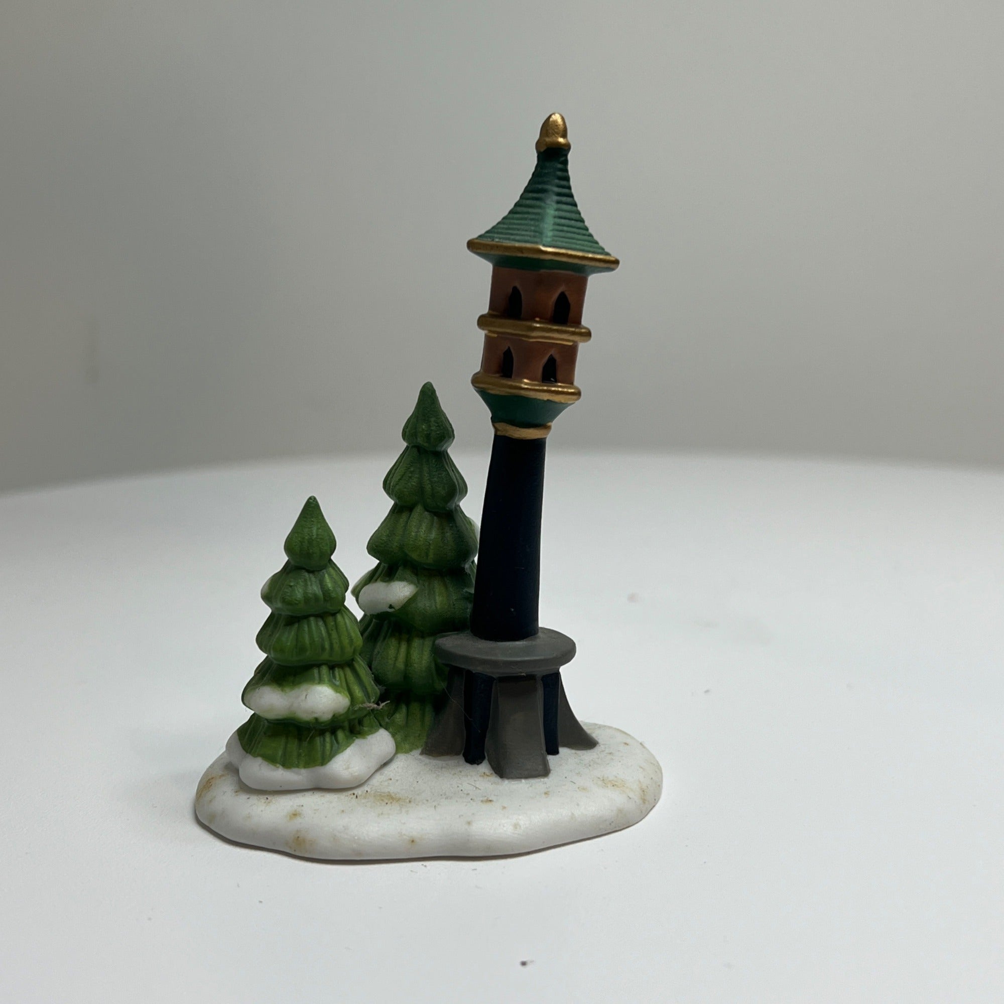 Department 56 Two Turtle Doves, The 12 Days of Dickens Christmas Village loose figurine from 1995. Columned birdhouse and snow covered pine trees. Loose figurine only - This is not the complete set and includes only 1 figurine from the set. No box is included, only the figurine.