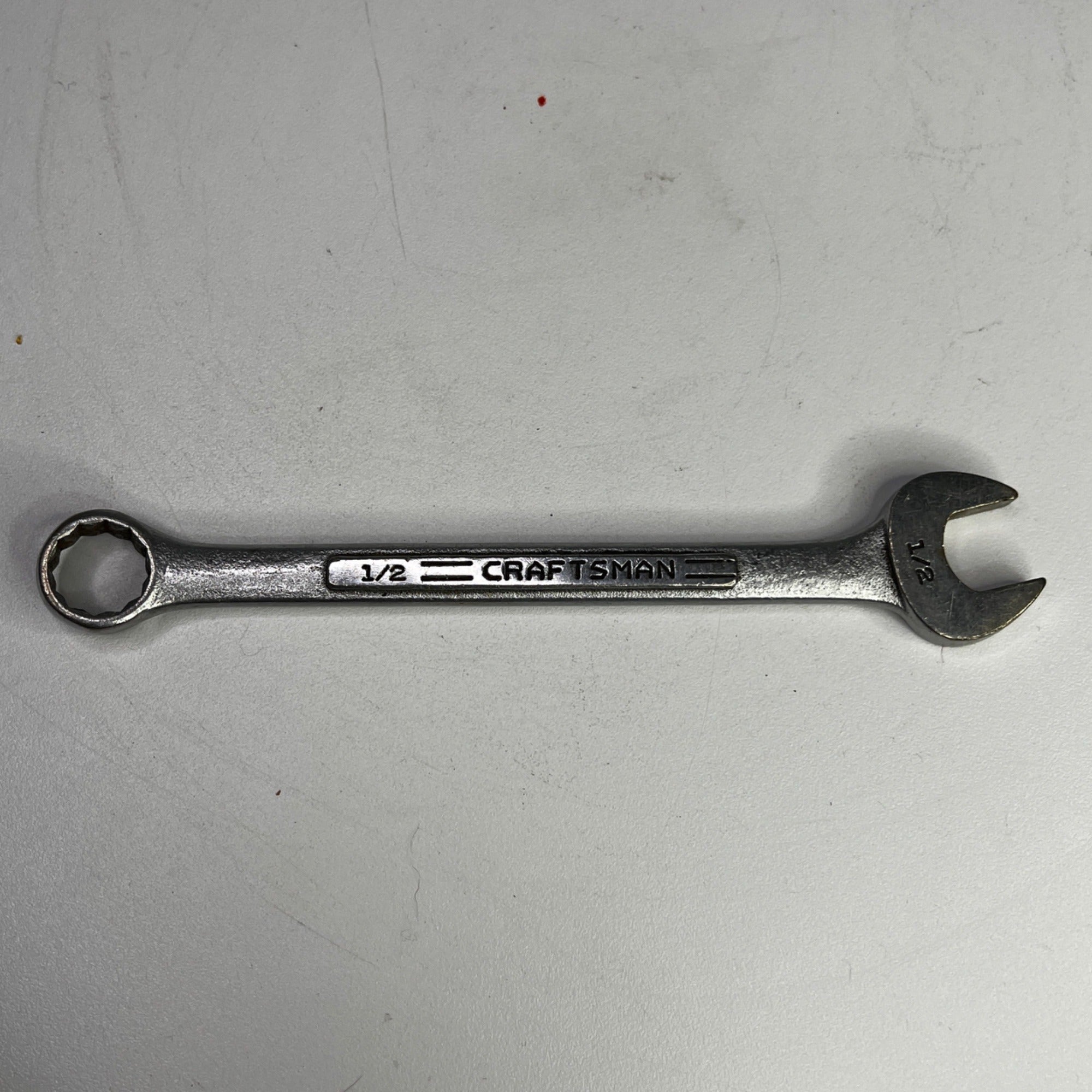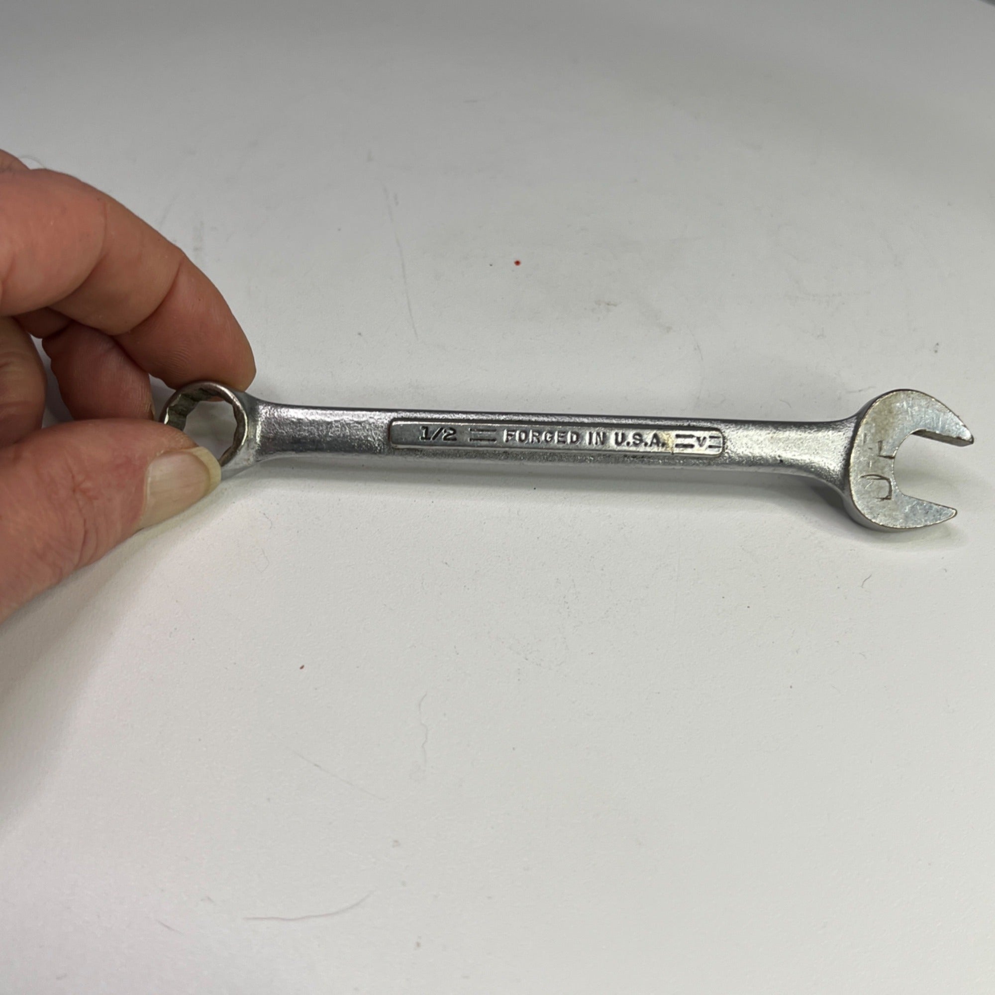 Vintage 1/2" Craftsman =V= Series Combination Wrench, 12 Point, Forged in USA, Good used condition with slight scuffing on wrench and previous owners initials on end of wrench, and nice addition to any =V= series collection