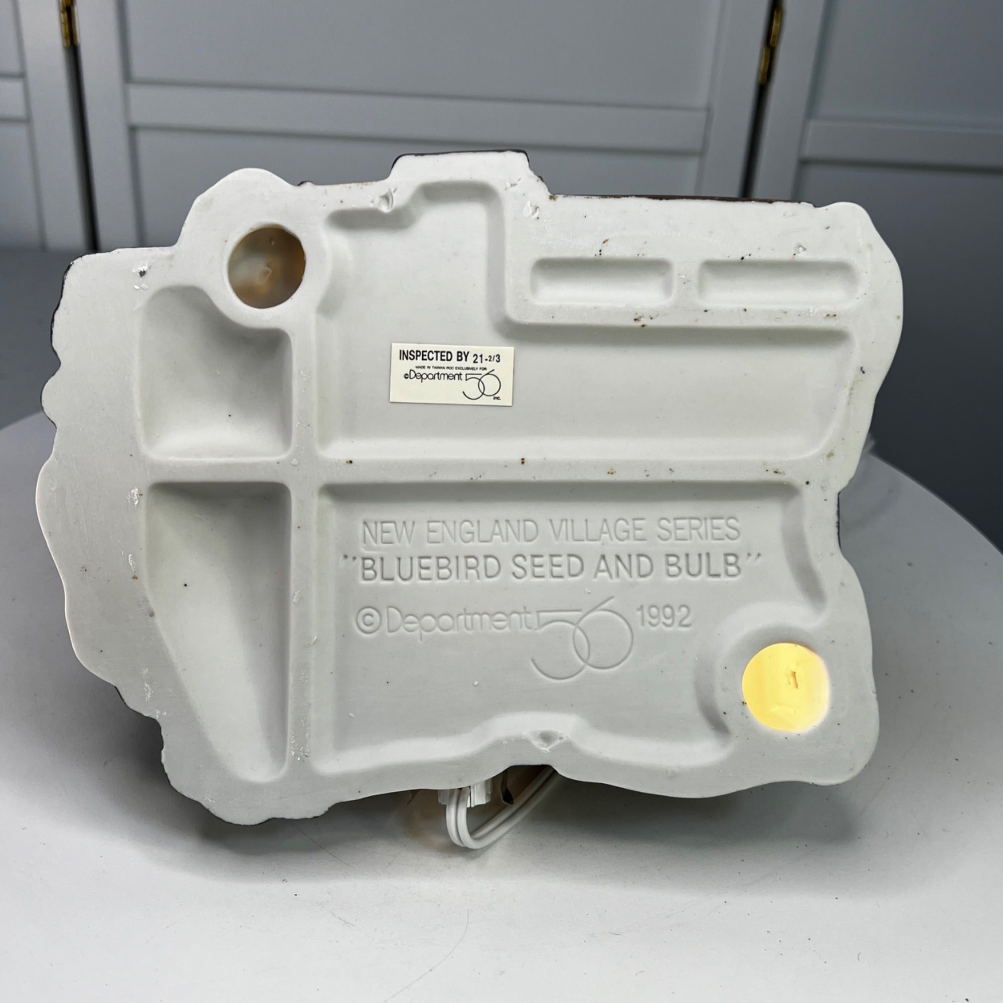 This beautiful Christmas collectible makes a classy addition to any village collection. The Bluebird Seed and Bulb is in good condition for being over 30 years old and has beautiful artwork, color and design, each piece is properly marked on the bottom of the piece. Comes with protective case and sleeve (sleeve has wear) and light cord.