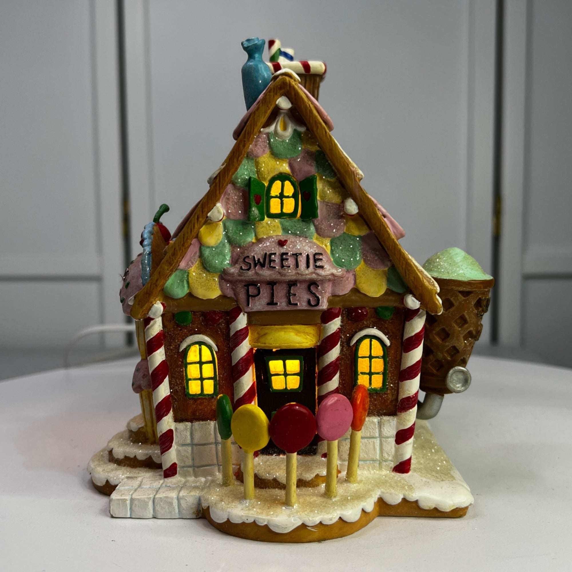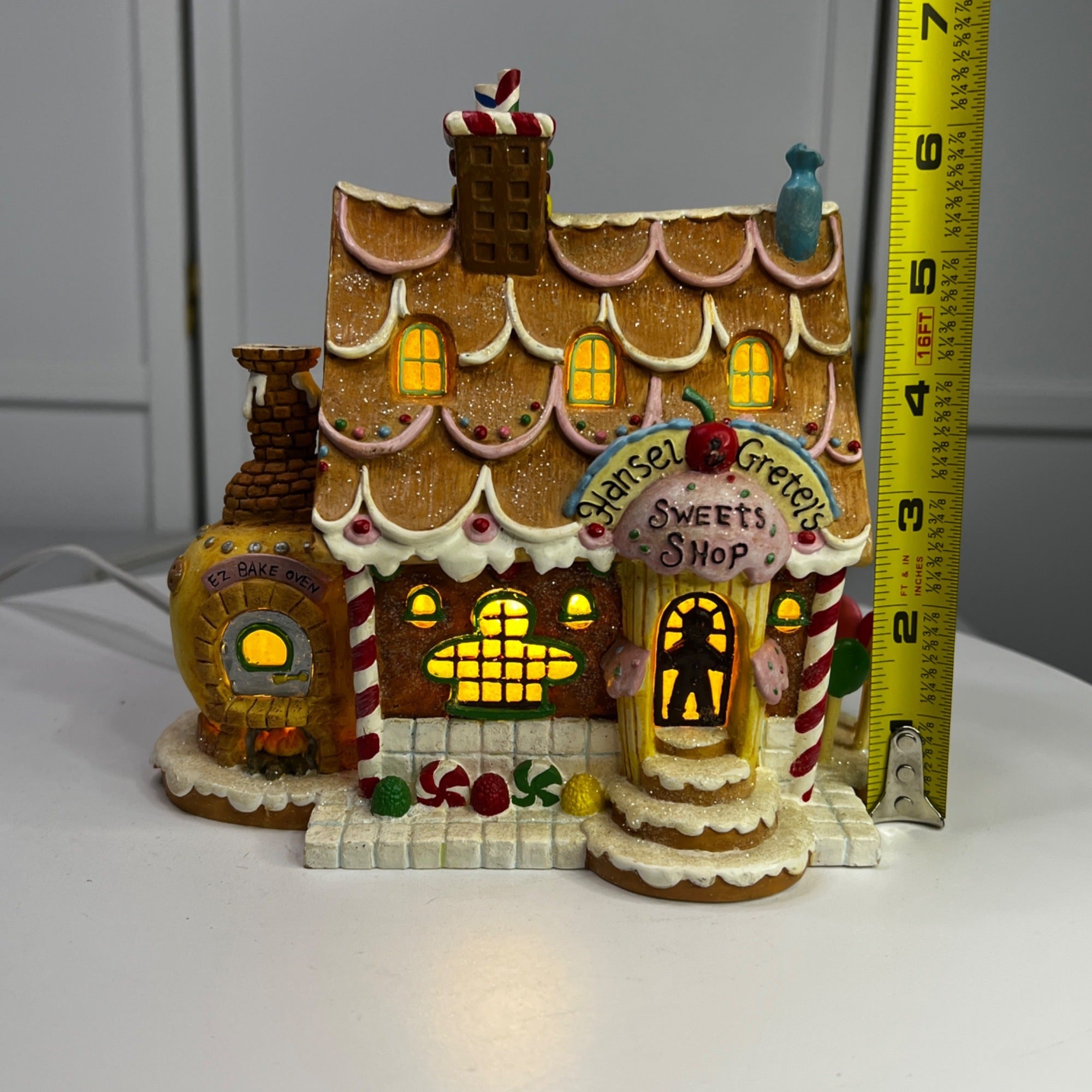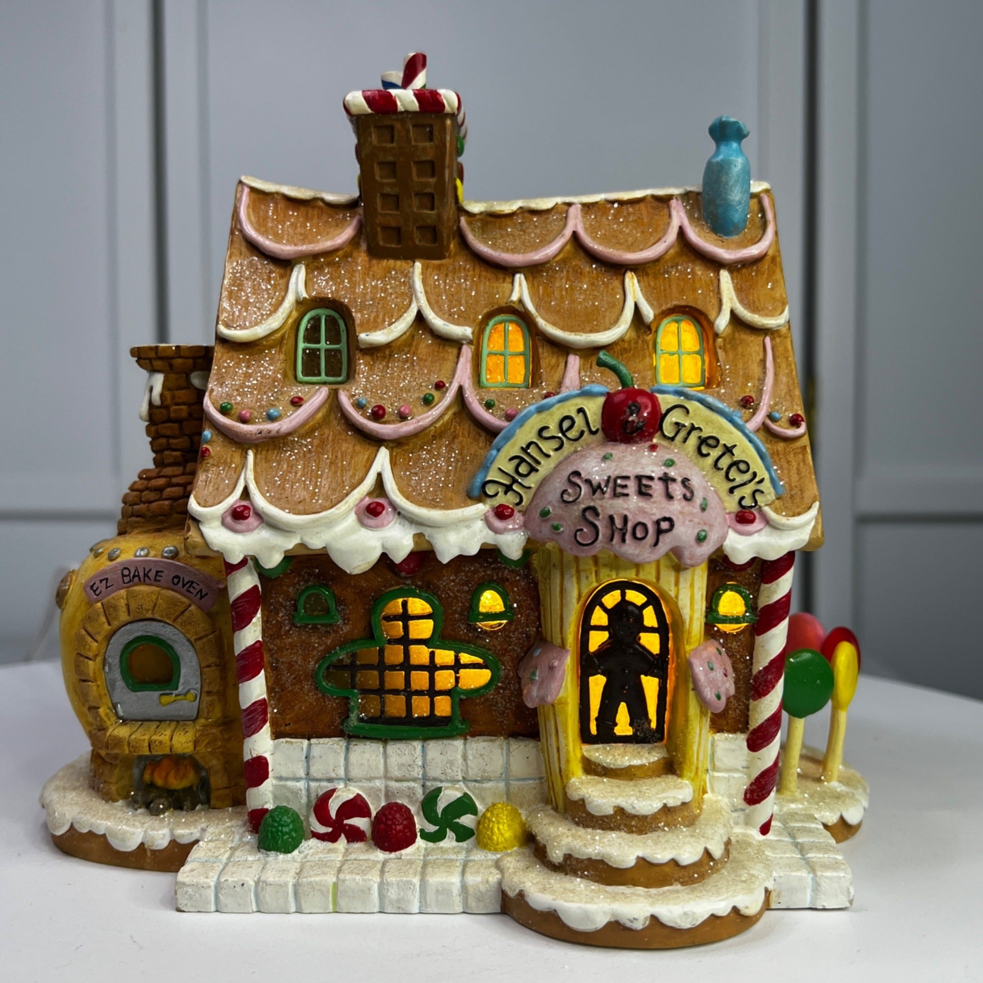 This beautiful Christmas collectible makes a classy addition to any village collection. The Hansel and Gretel's Sweets Shop is in good condition for being over 20 years old and has beautiful artwork, color and design, each piece is properly marked on the bottom of the piece. Comes with original box, sleeve (sleeve has wear) and light cord.
