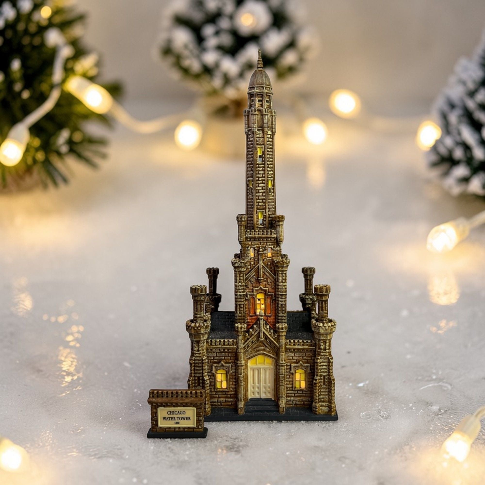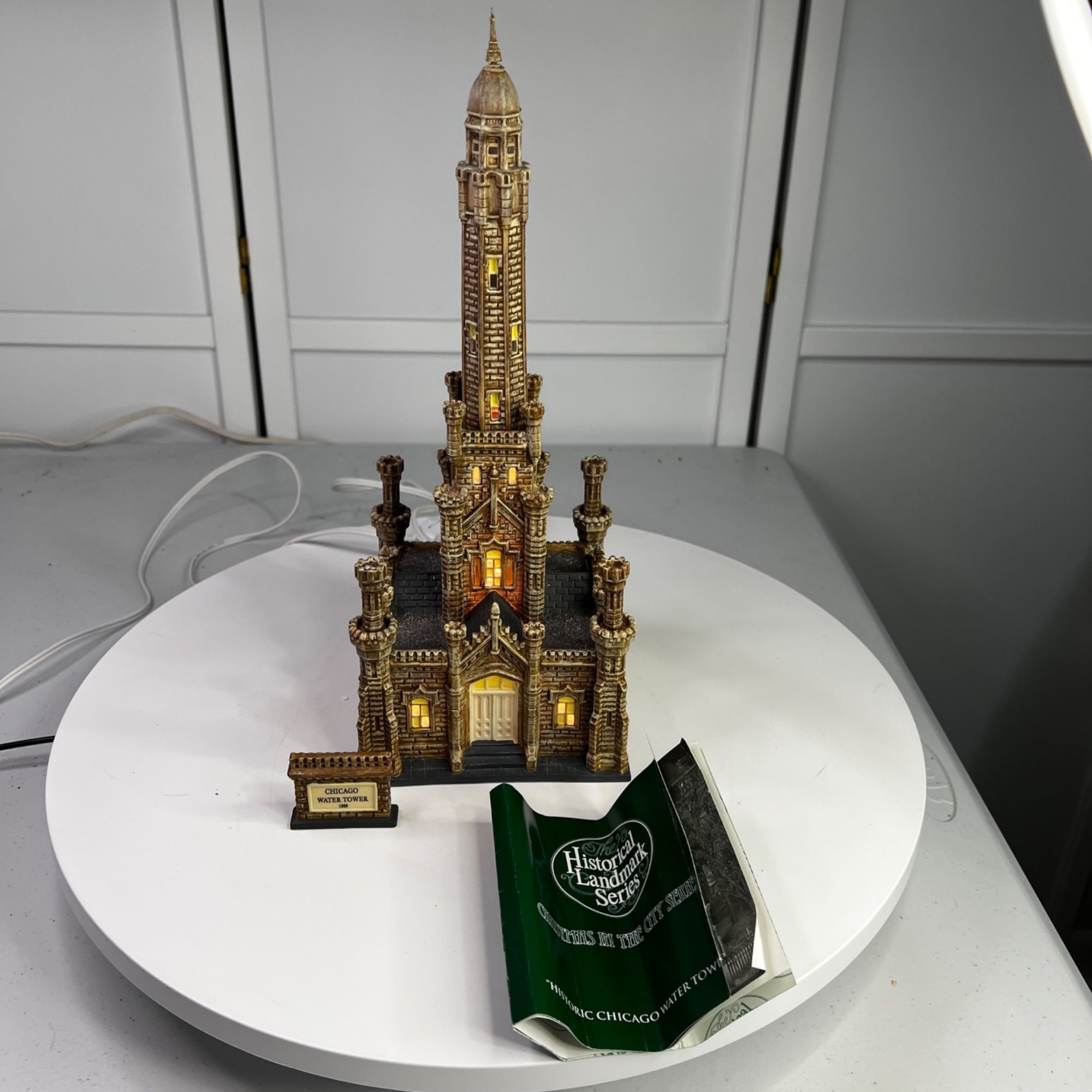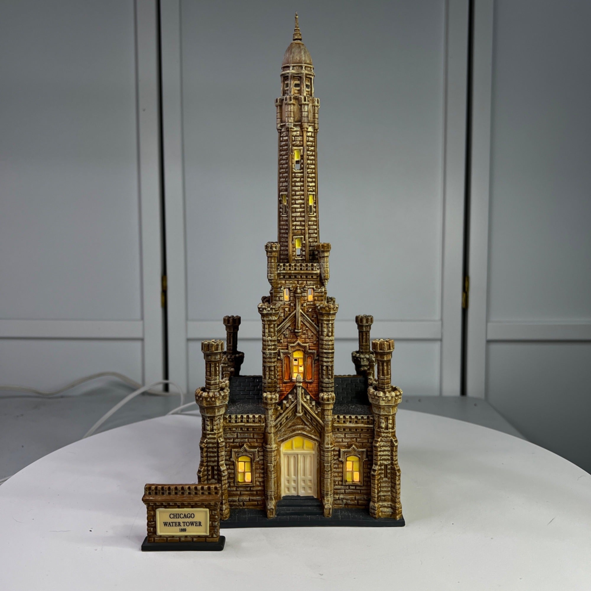 This beautiful Christmas collectible makes a classy addition to any village collection. The Historic Chicago Water Tower is in good condition for being over 20 years old and has beautiful artwork, color and design, each piece is properly marked on the bottom of the piece. Comes with original box, sleeve (sleeve has wear) and light cord.