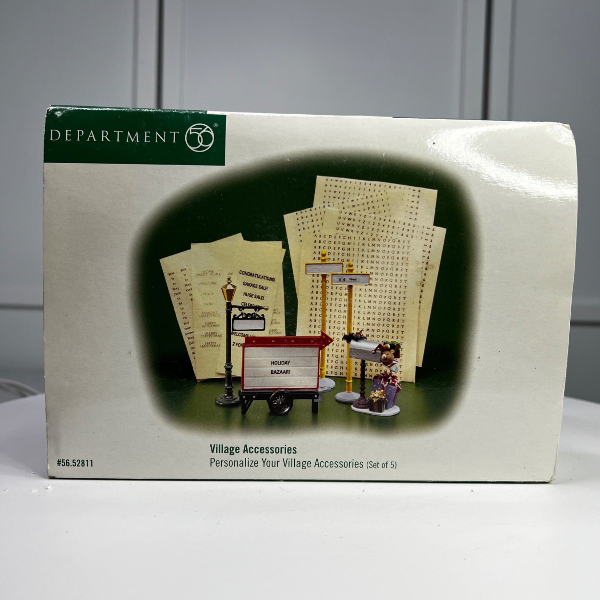 Village accessories enhance the unique charm of the lighted pieces in any display. Designed and sized to coordinate with the Department 56 Villages, these accessories bring a lively feeling of activity to any display. The Personalize Your Village Accessories is still in decent condition for being over 25 years old and has beautiful artwork, colors and design, each piece is properly marked on the bottom of the piece, includes original box and sleeve (sleeve has wear).