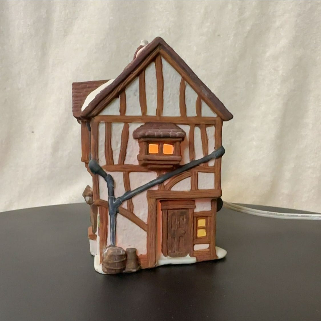 This unique porcelain building from 1987 captures the classic charm of Charles Dickens' "Old Curiosity Shop" from the Portsmouth Street in London. Hand painted, it is a must-have for fans of the classic story. The Old Curiosity Shop looks beautiful when lit. Size: 8.25 x 4 x 5.25"