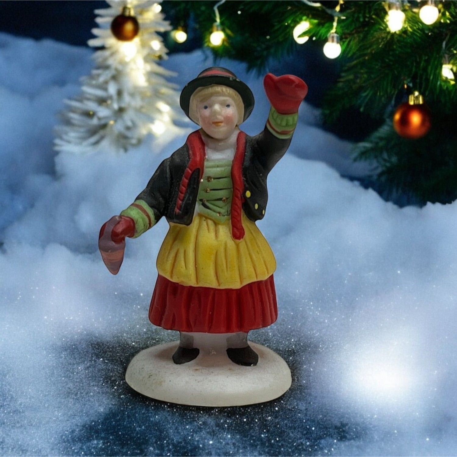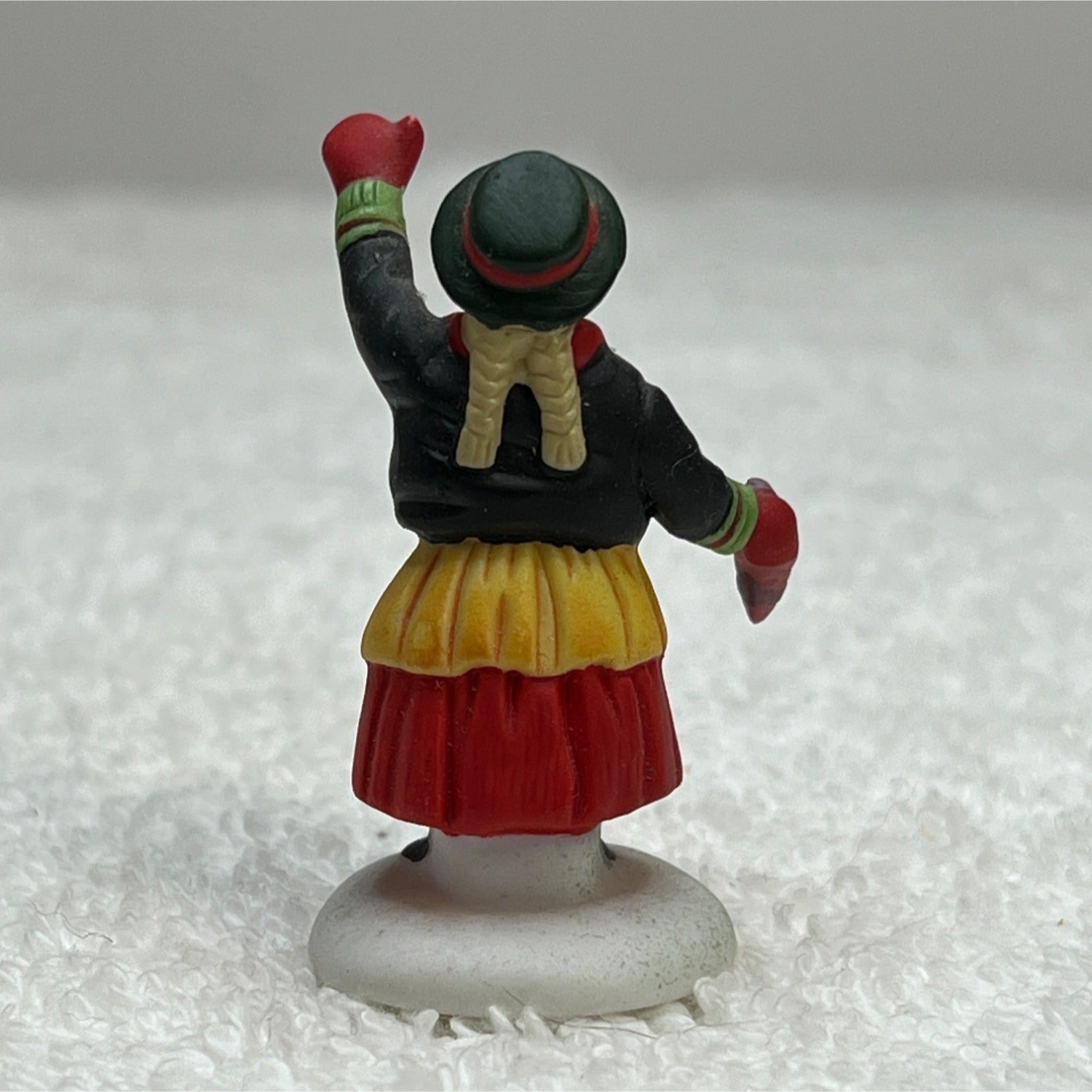 Department 56 The Toy Peddler - Alpine Village holiday decor loose figurine from 1988. Very beautiful hand-painted porcelain figurine. Little girl holds top. Loose figurine only - This is not the complete set and includes only 1 figurine from the set. No box is included, only the figurine.